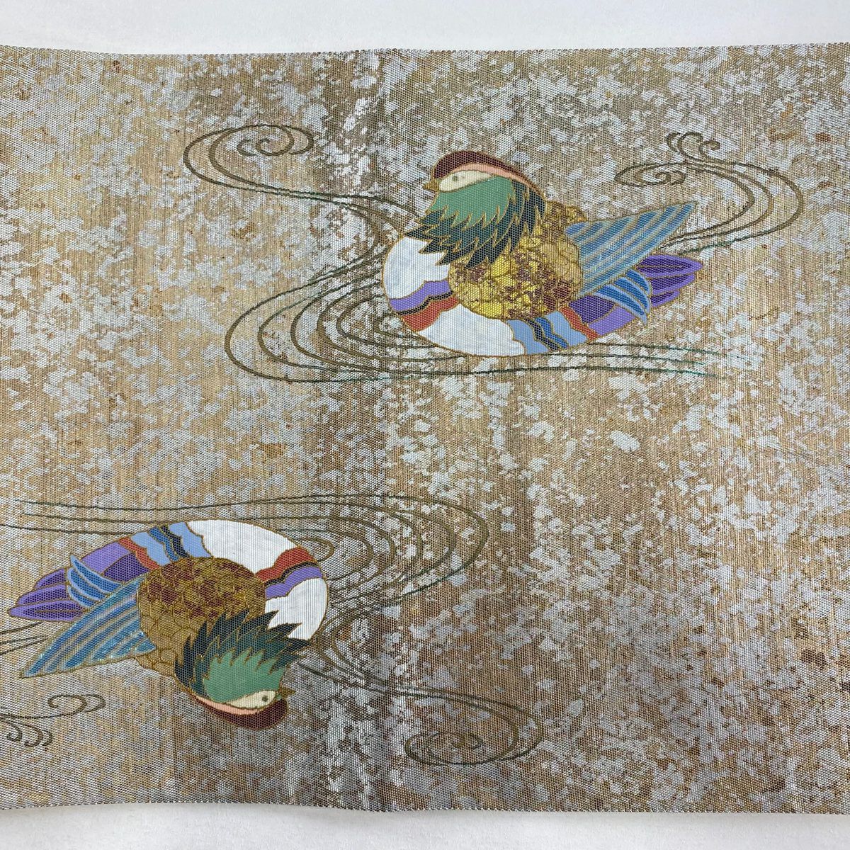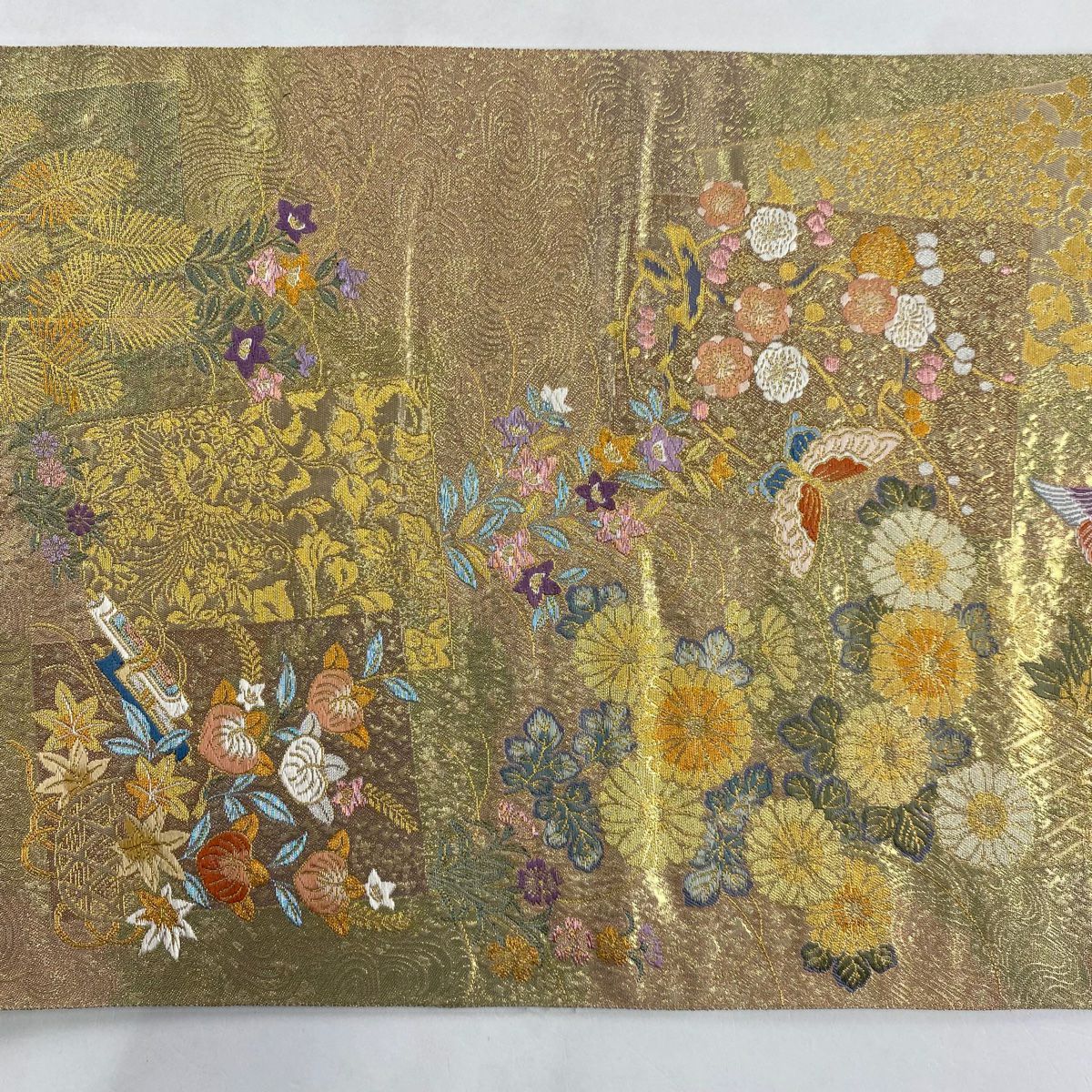【在庫一掃】 【美品】 袋帯 秀品 色紙 花鳥 金糸 箔 金色 六通 正絹