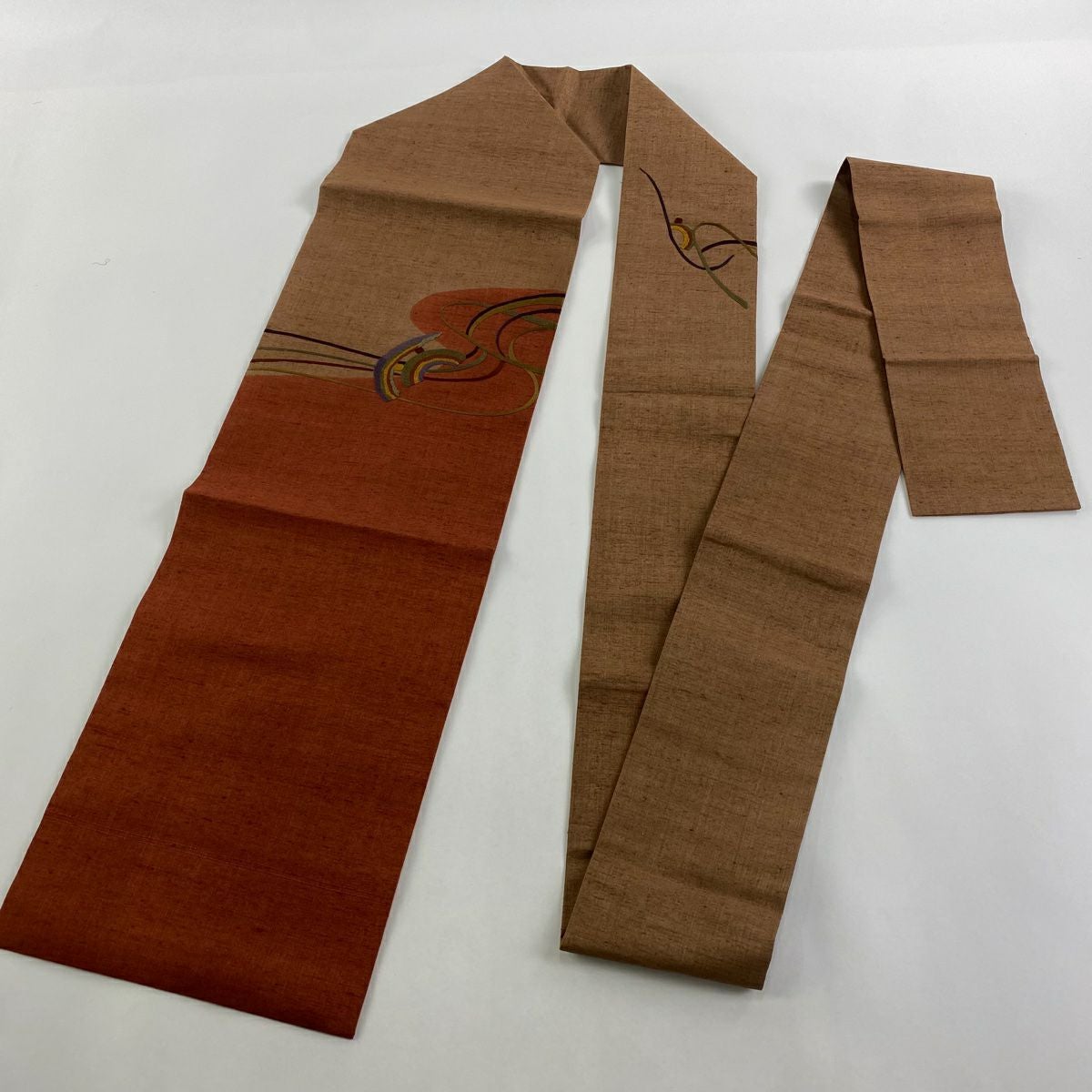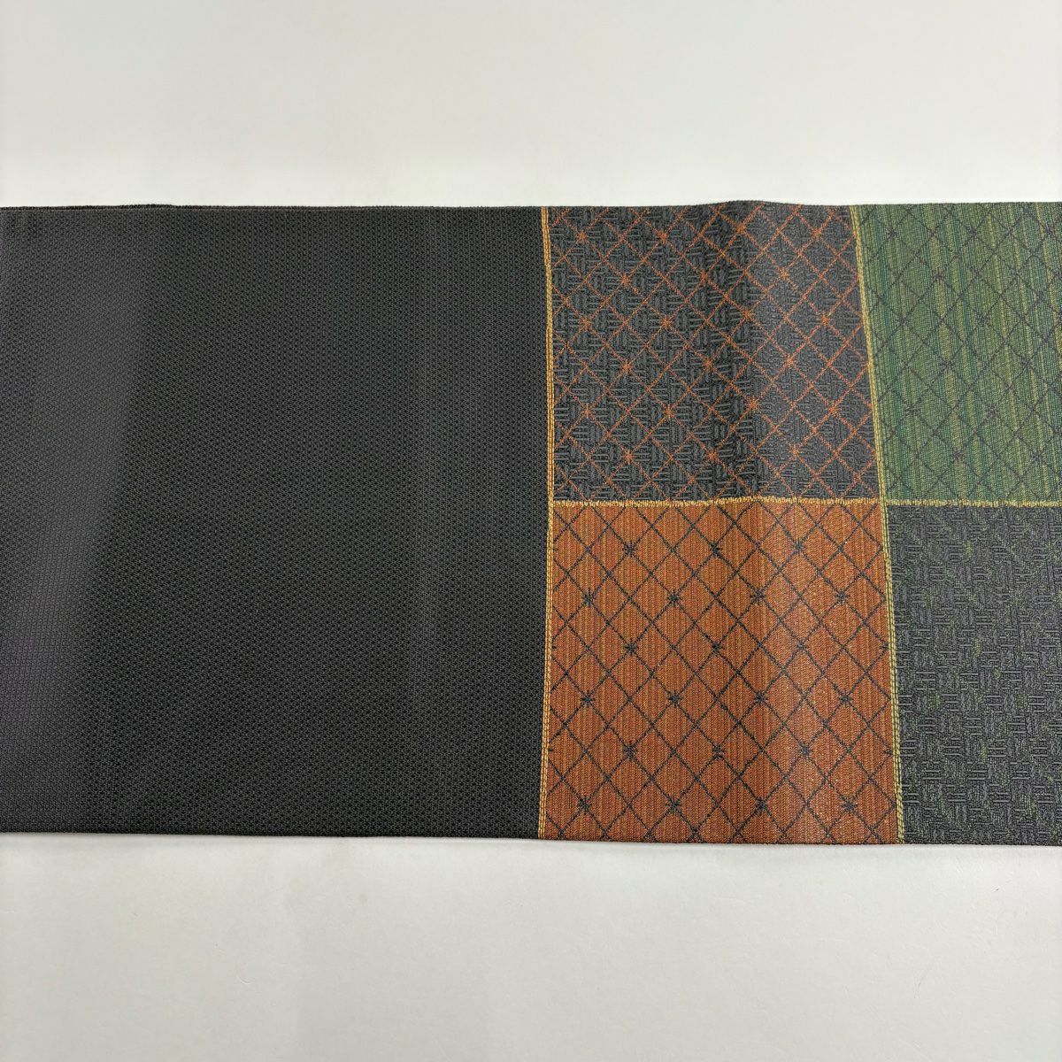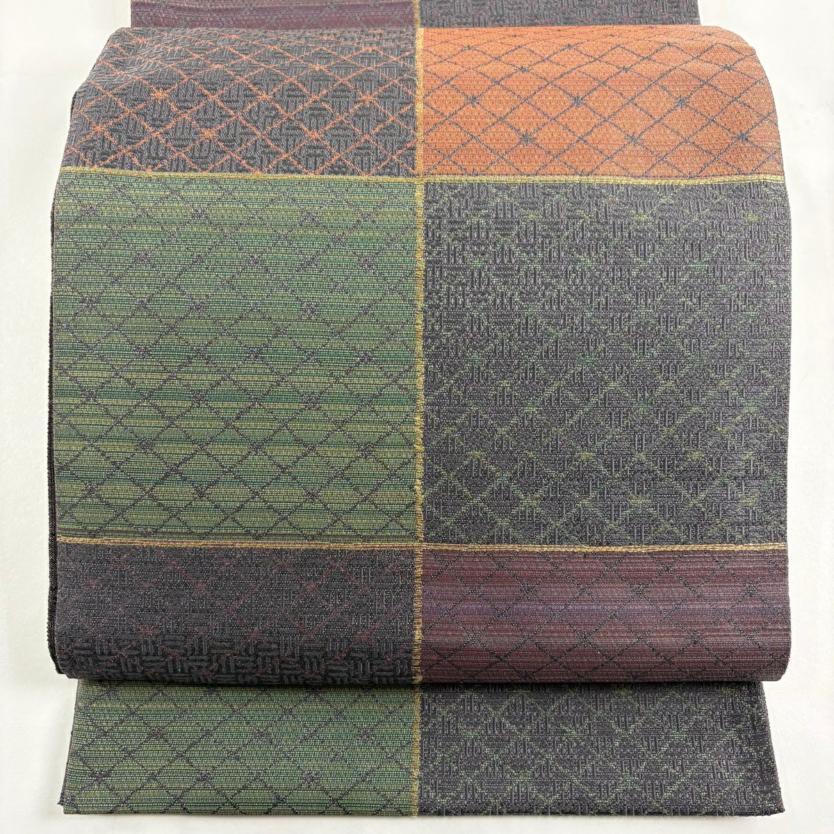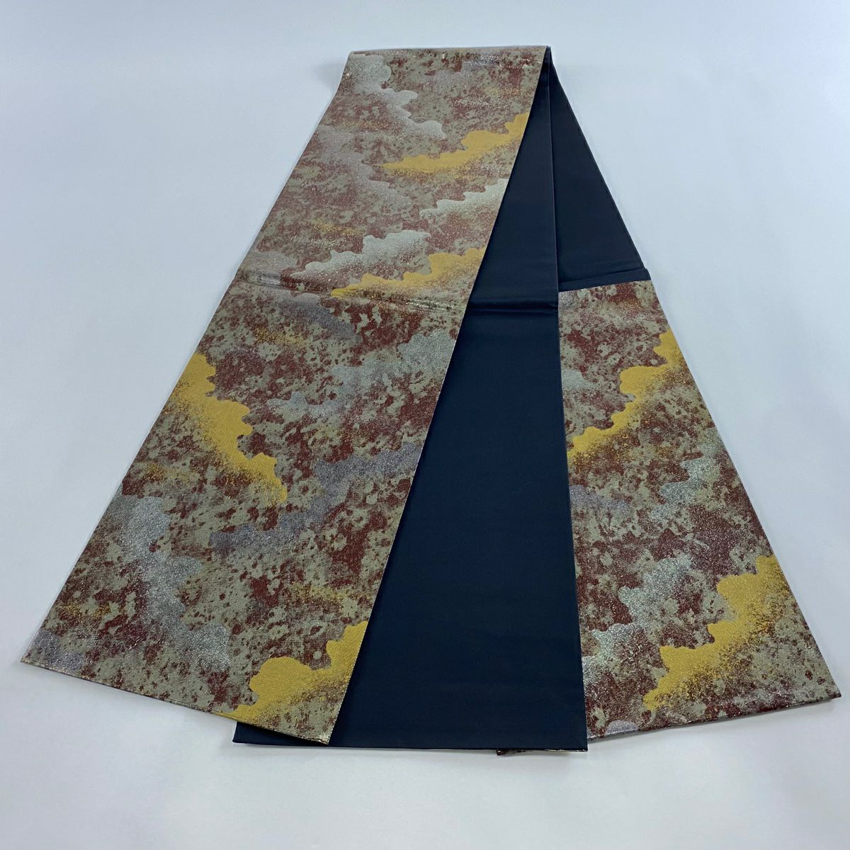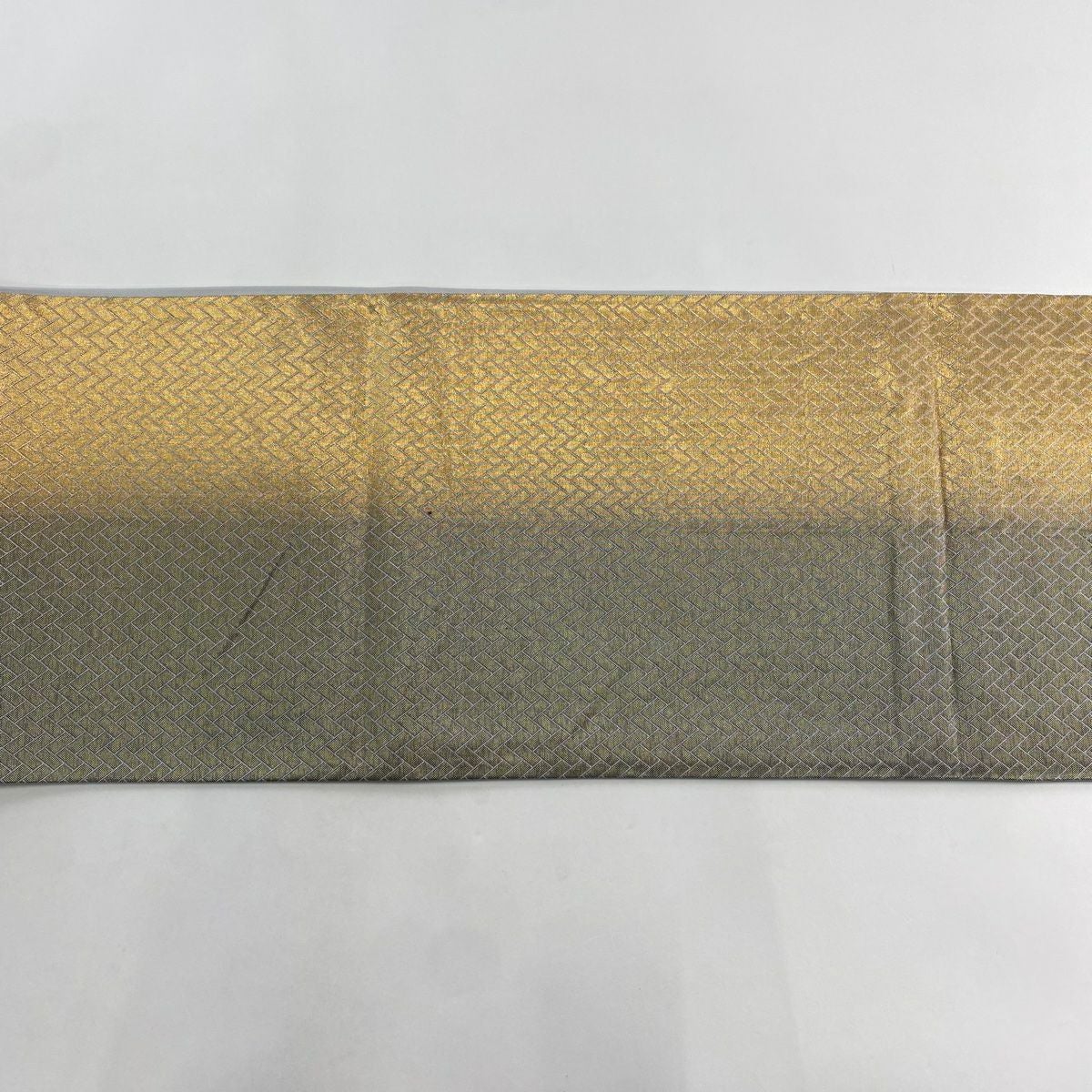 【在庫一掃】 【美品】 袋帯 秀品 霞 幾何学模様 箔 茶色 六通 正絹