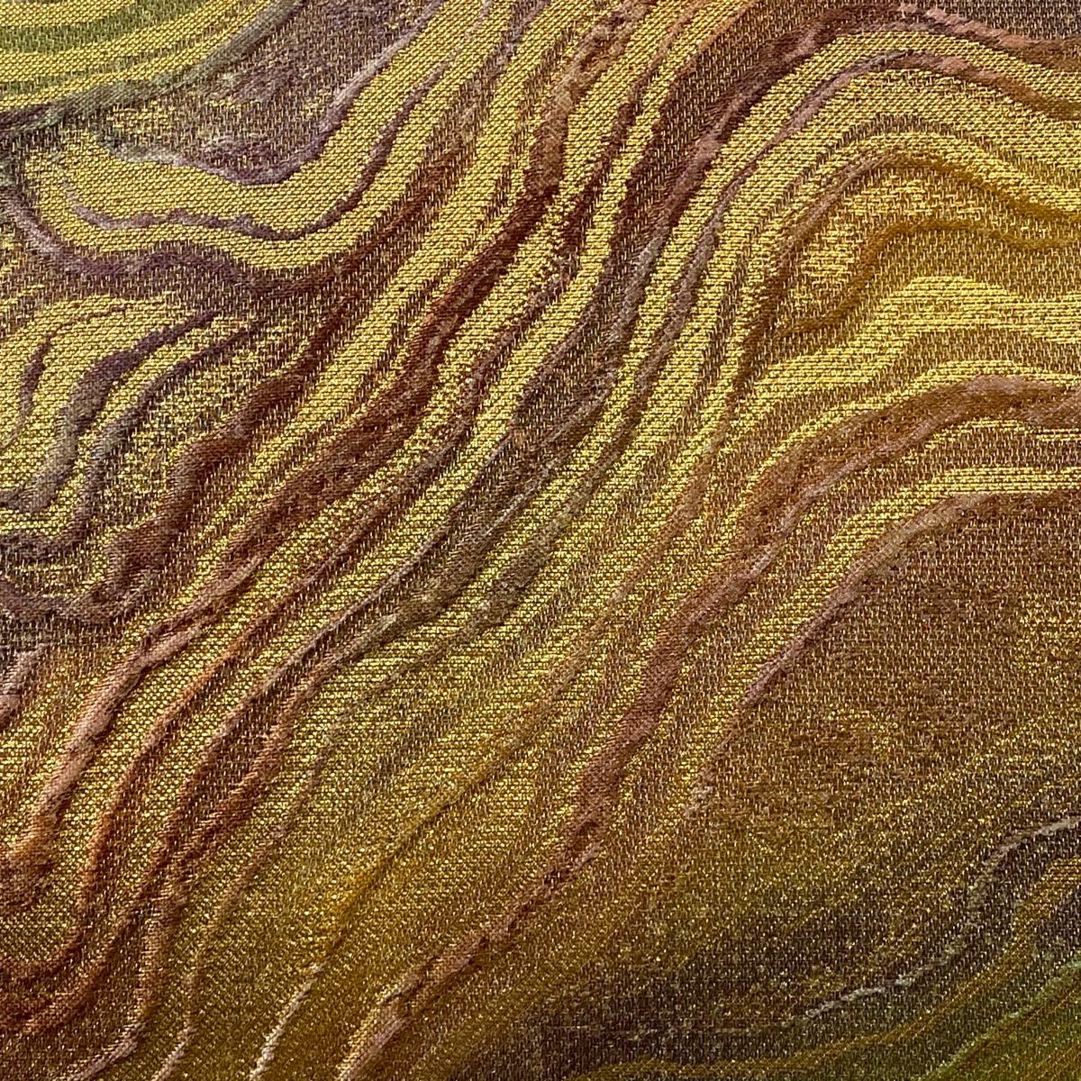 【在庫一掃】 袋帯 秀品 辻が花柄 金糸 箔 薄オレンジ 六通 正絹