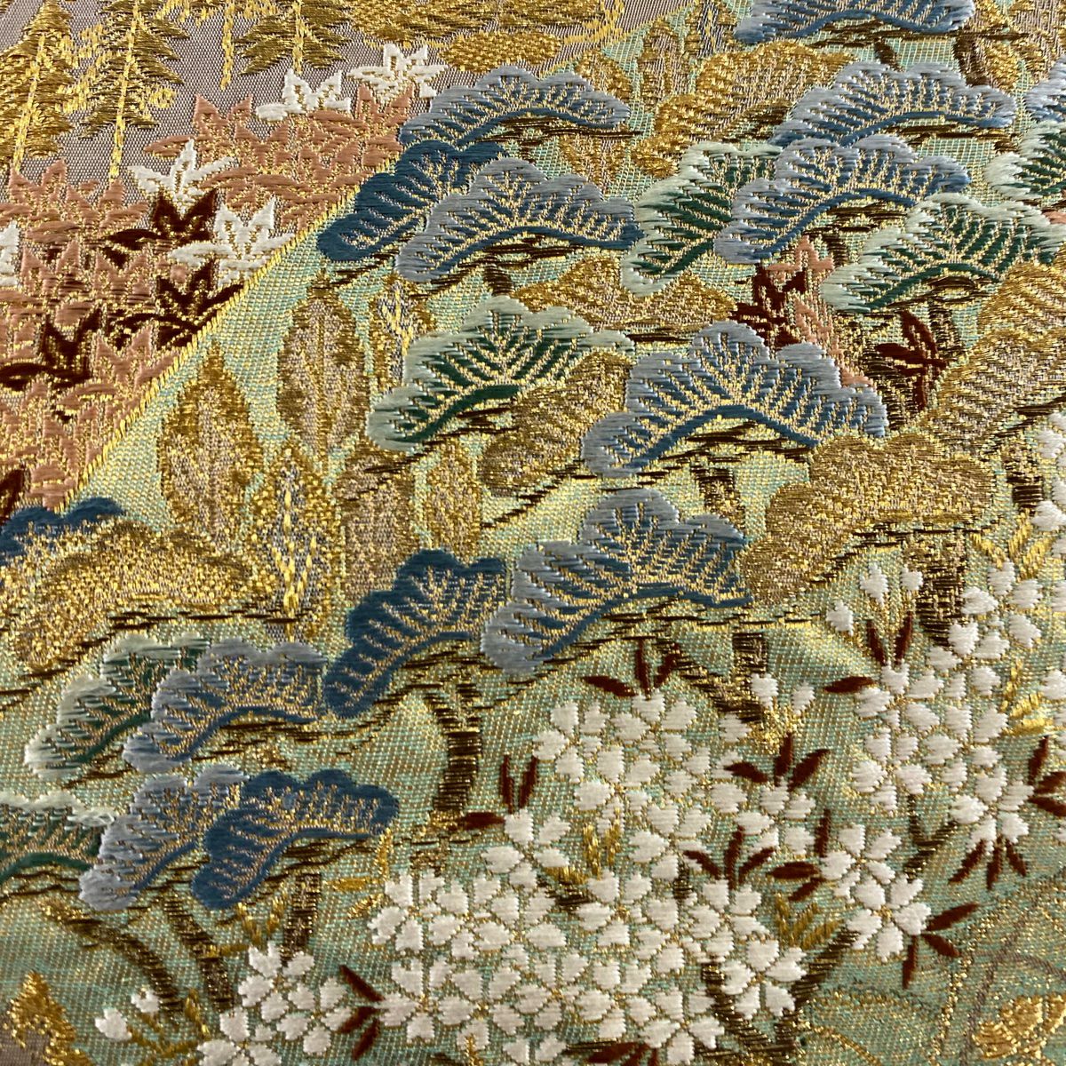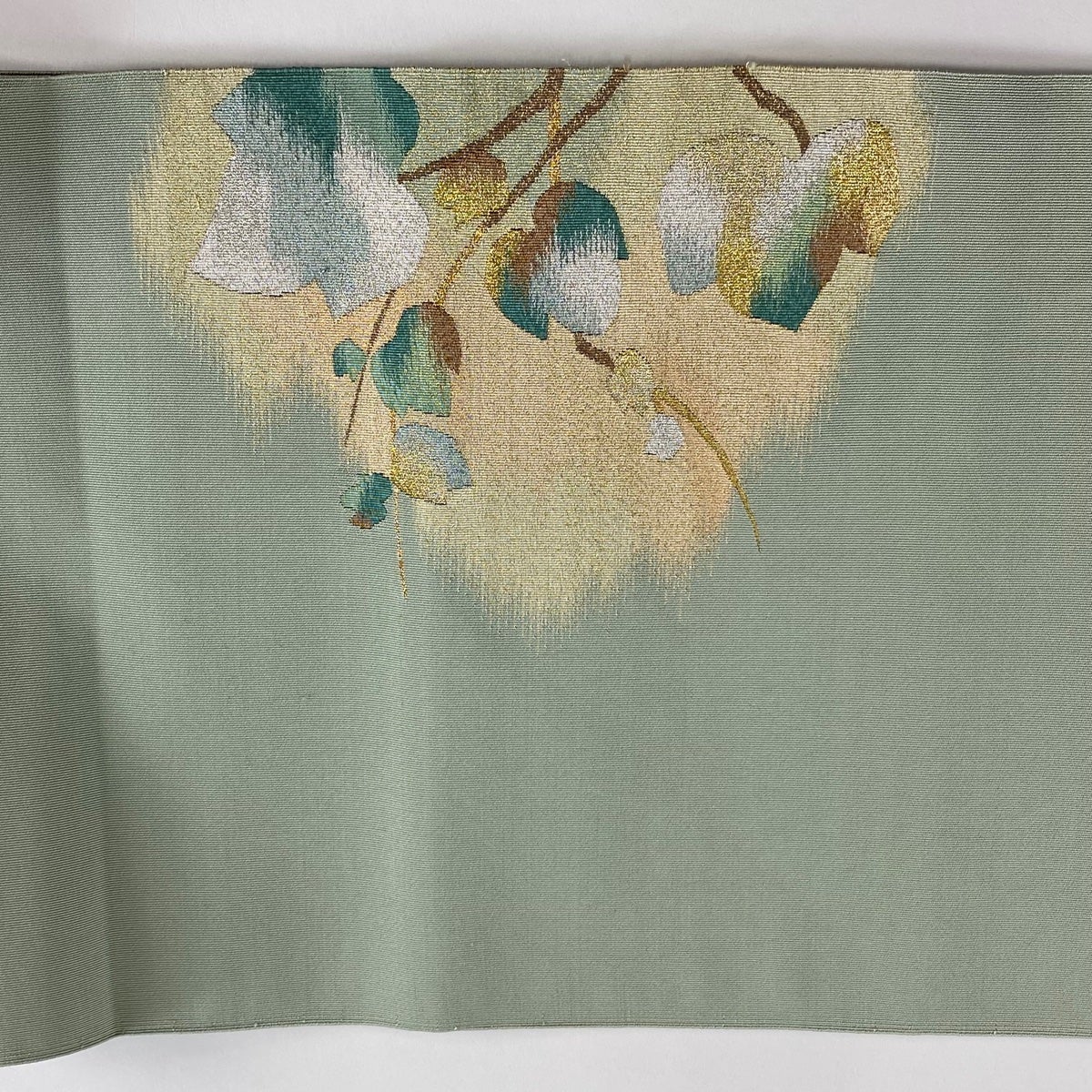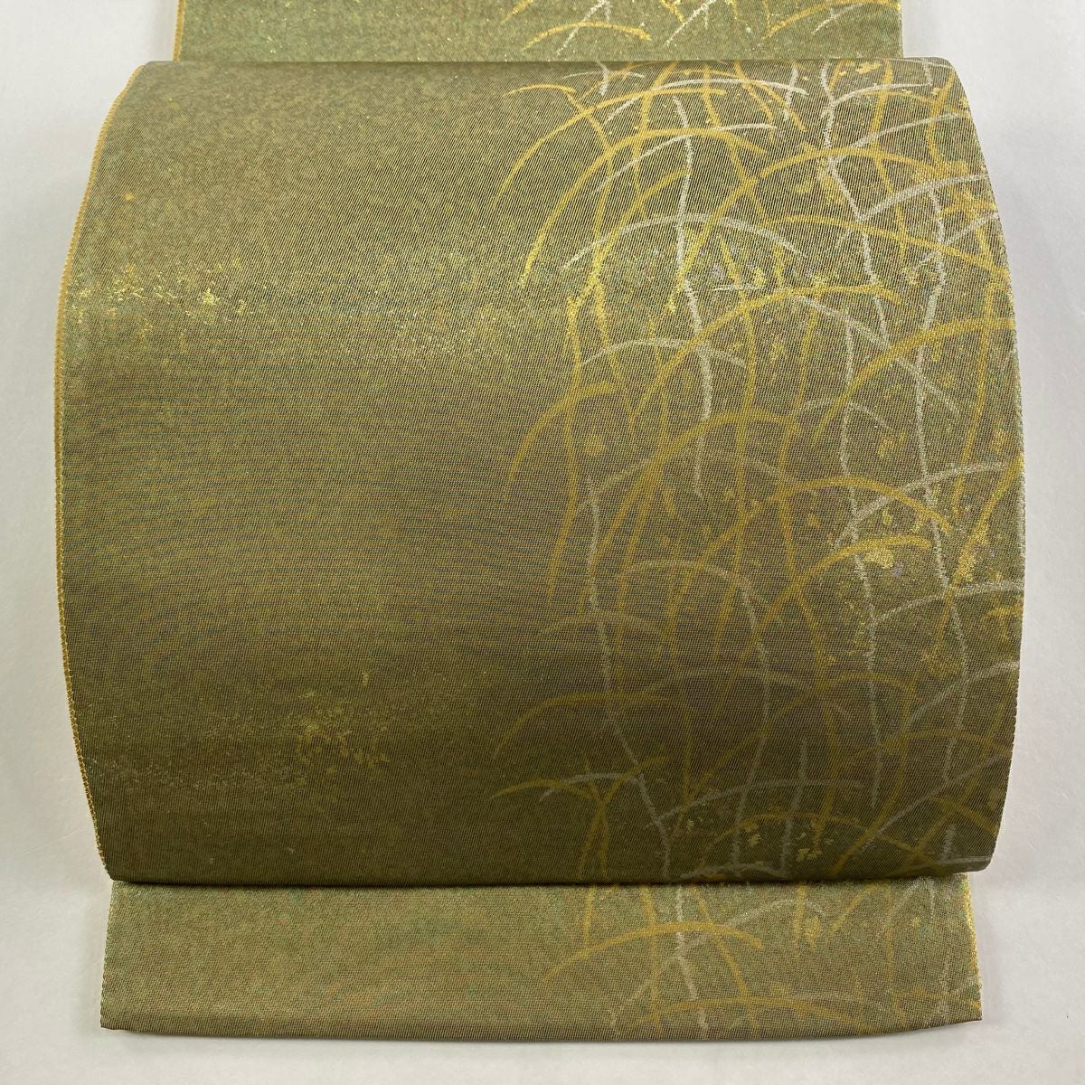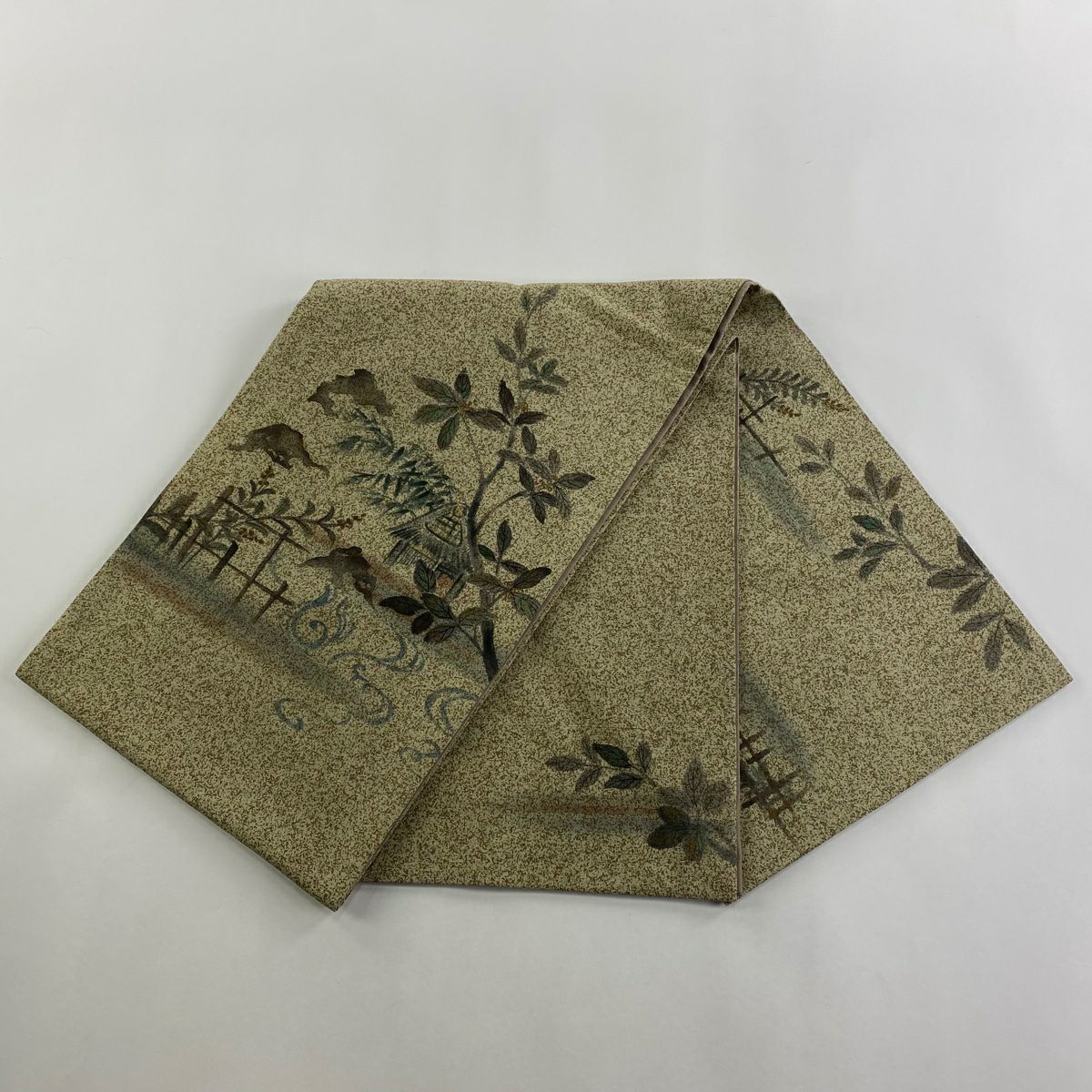 【在庫一掃】 【美品】 袋帯 秀品 秋草 松 金糸 箔 灰茶 六通 正絹
