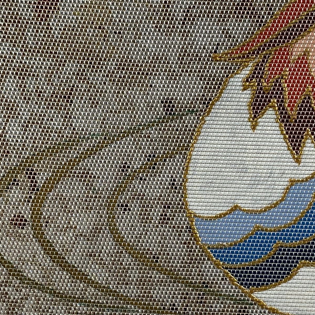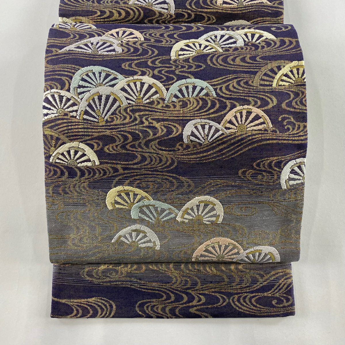 【在庫一掃】 袋帯 秀品 蛇籠 流水 金銀糸 ラメ糸 灰紫 六通 正絹