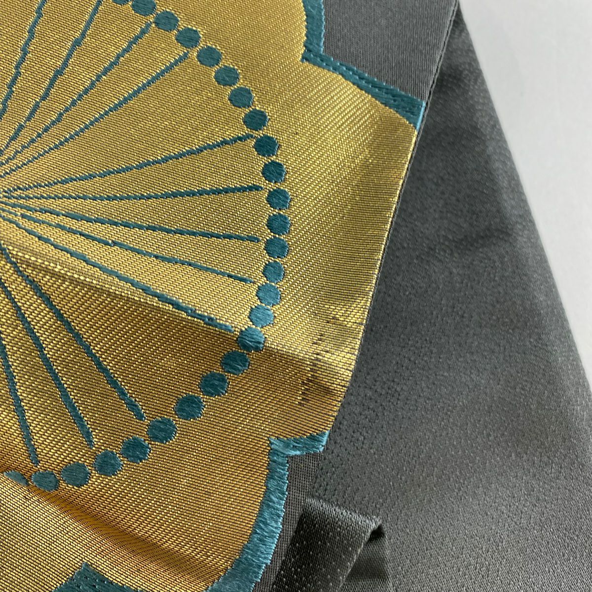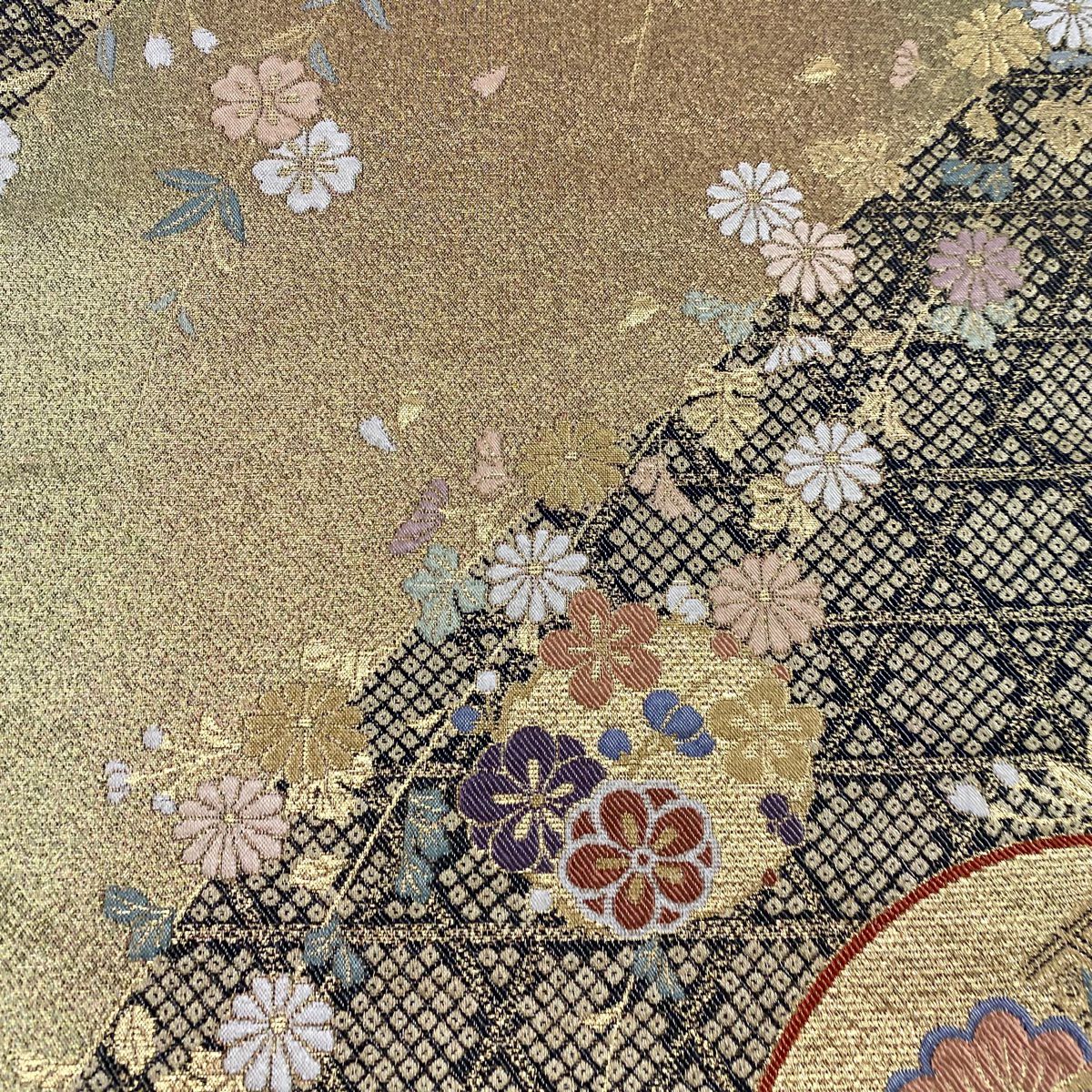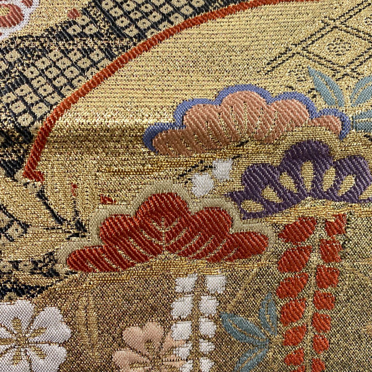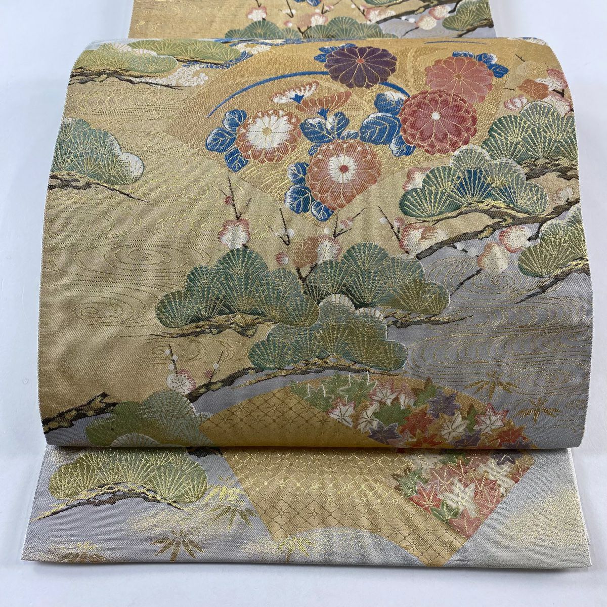 【在庫一掃】 【美品】 袋帯 秀品 扇面 笠松 金糸 箔 金色 六通 正絹