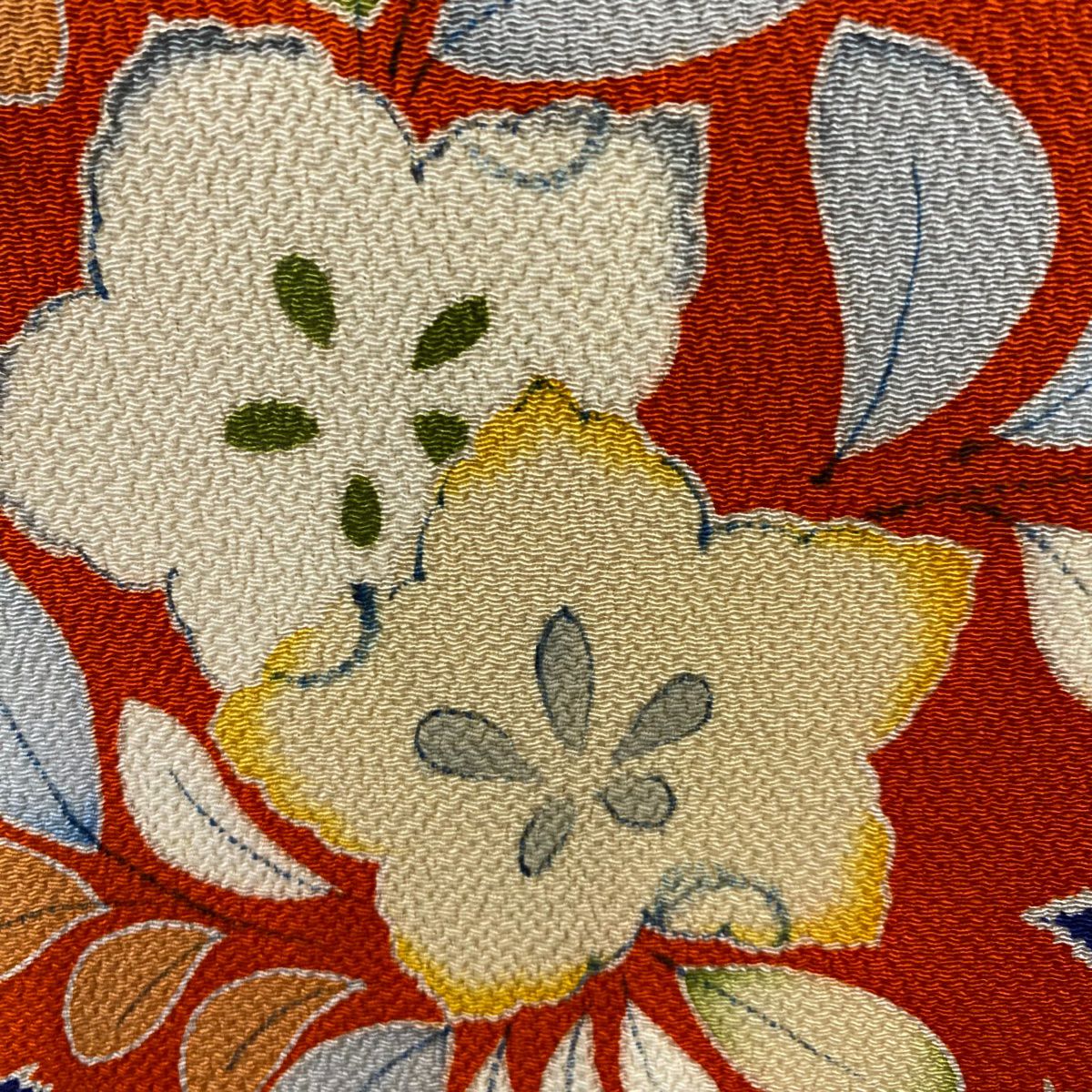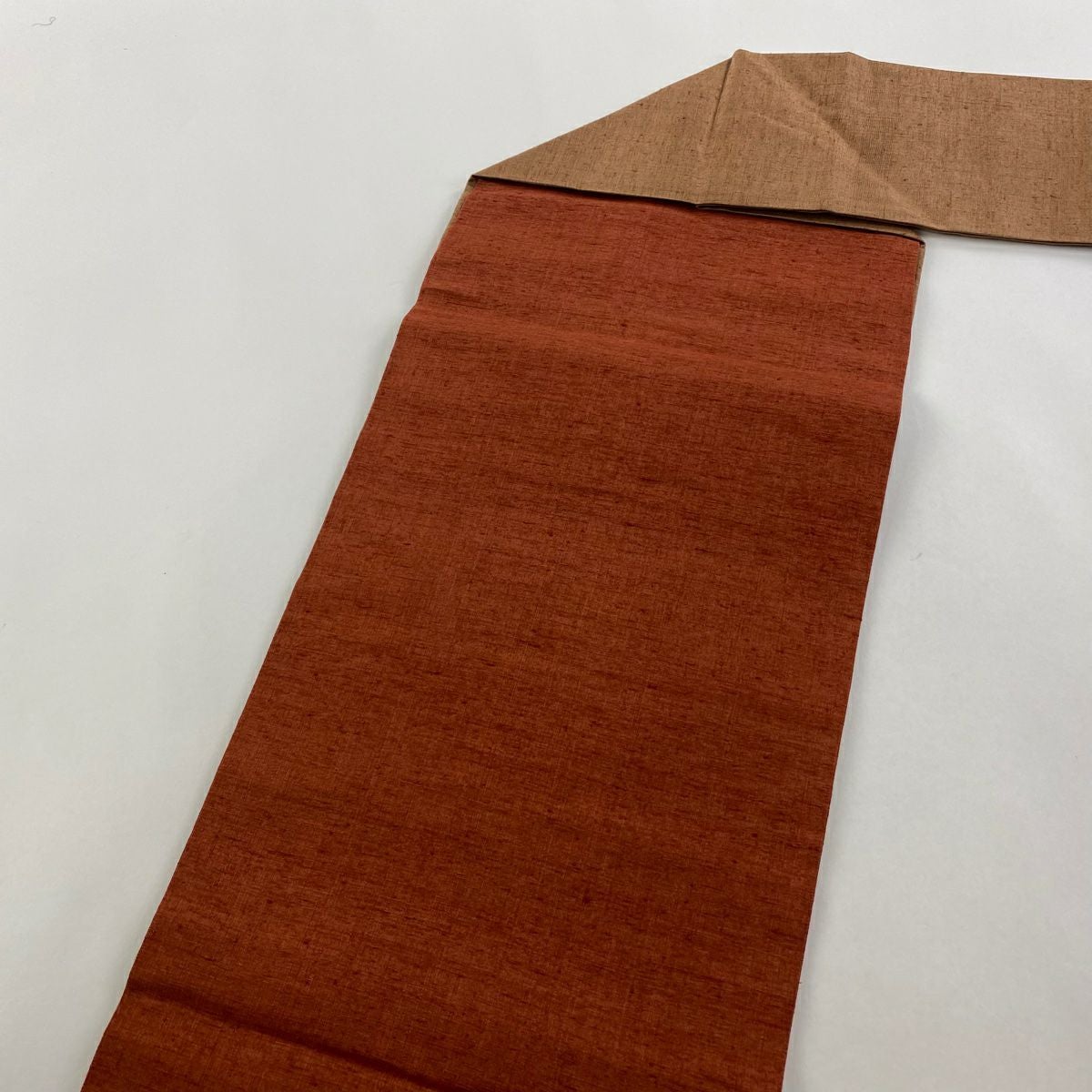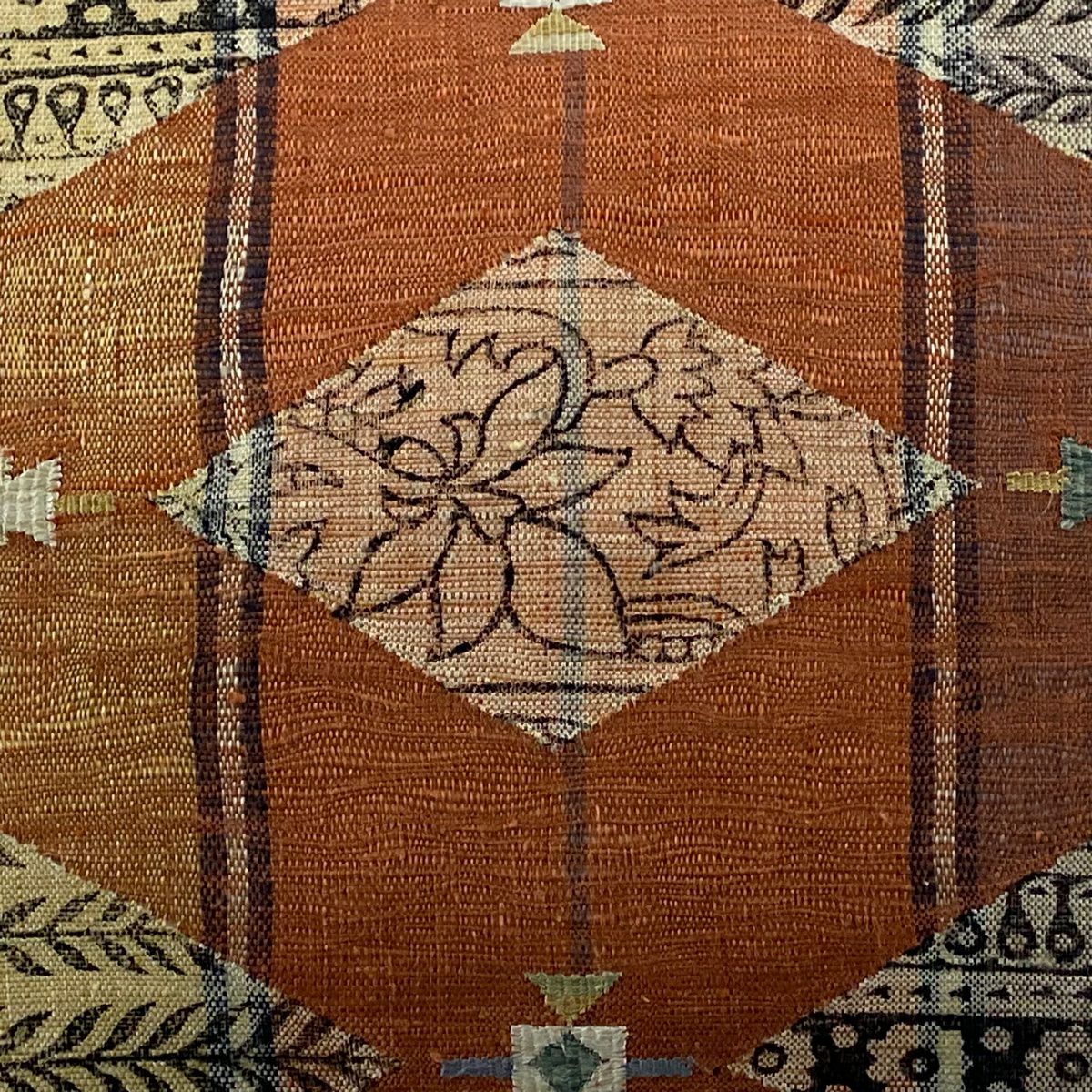 【在庫一掃】 【美品】 袋帯 秀品 紬地 菱 草花 茜色 お太鼓柄 正絹