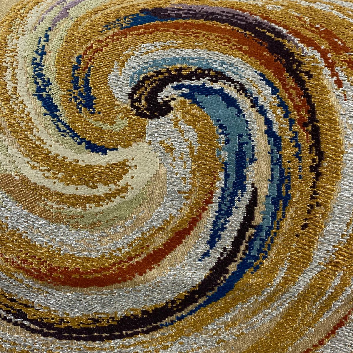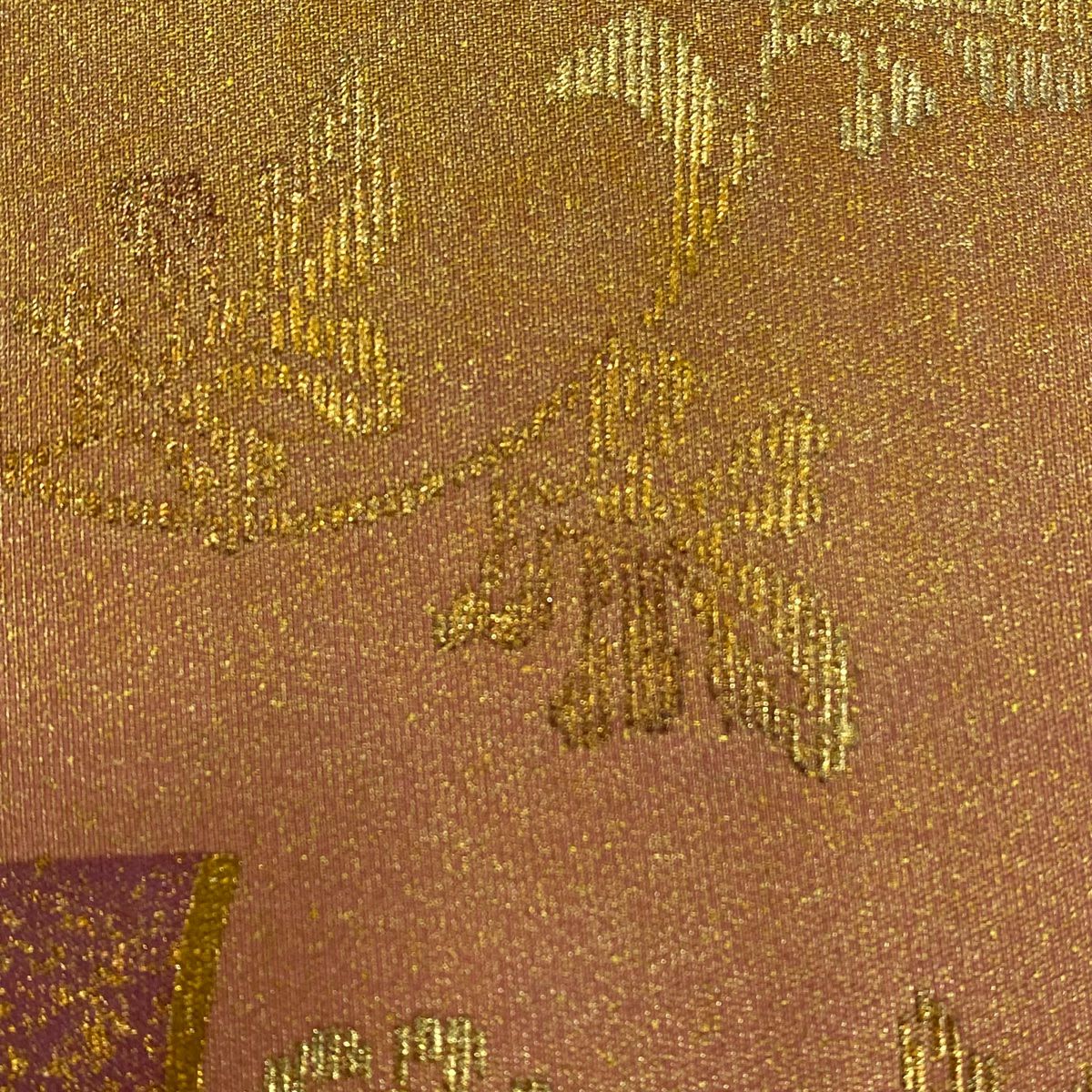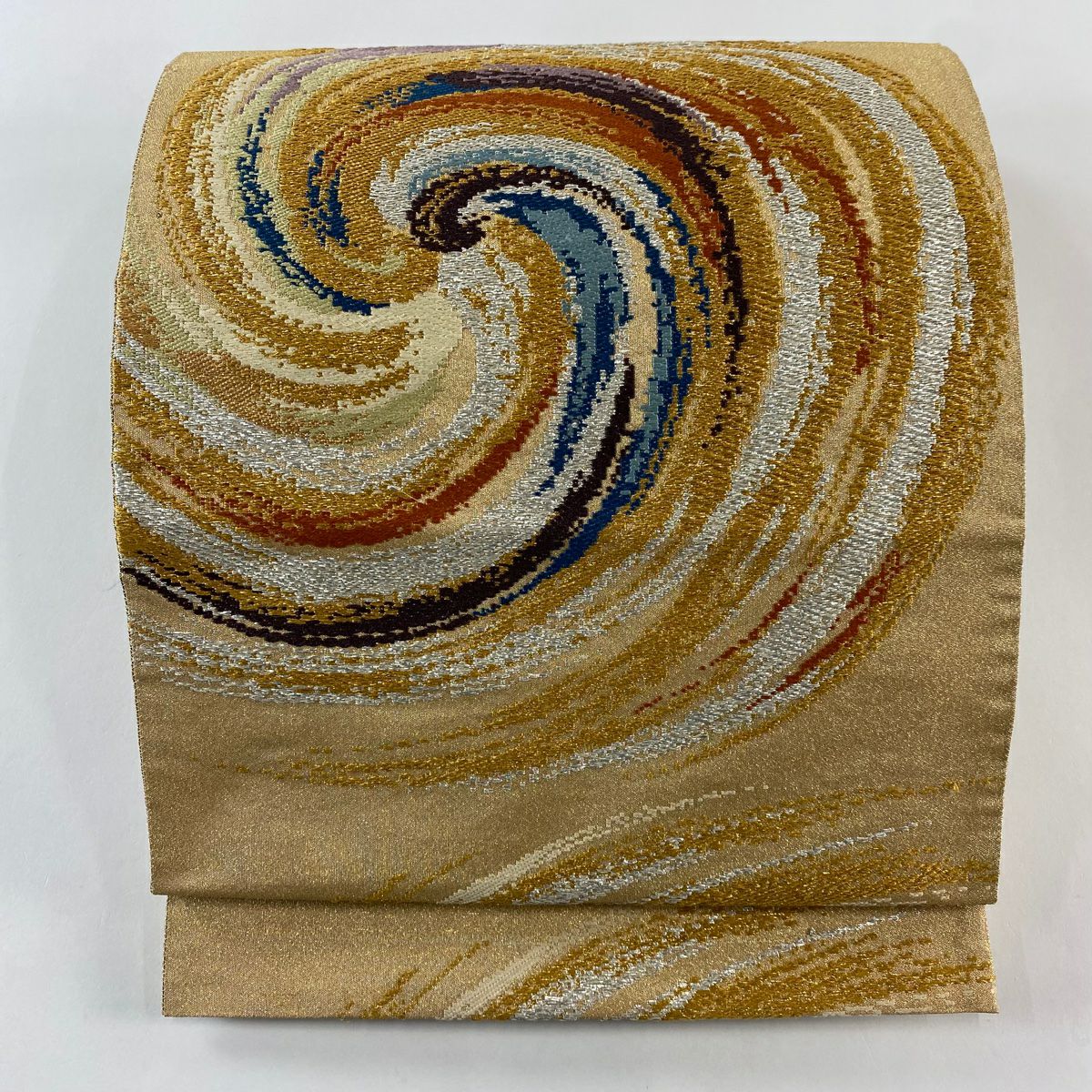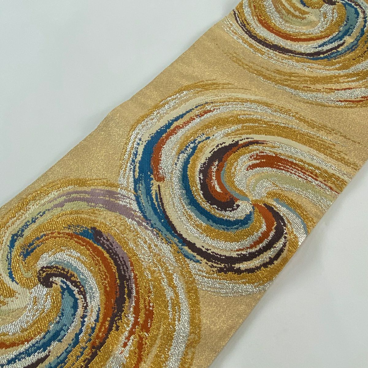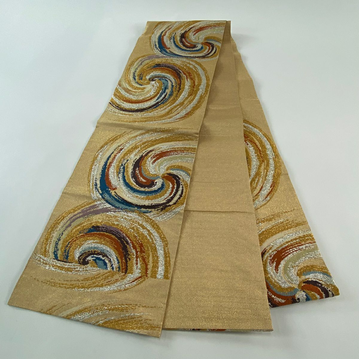 【在庫一掃】 袋帯 秀品 渦巻き 金銀糸 箔 薄オレンジ 六通 正絹