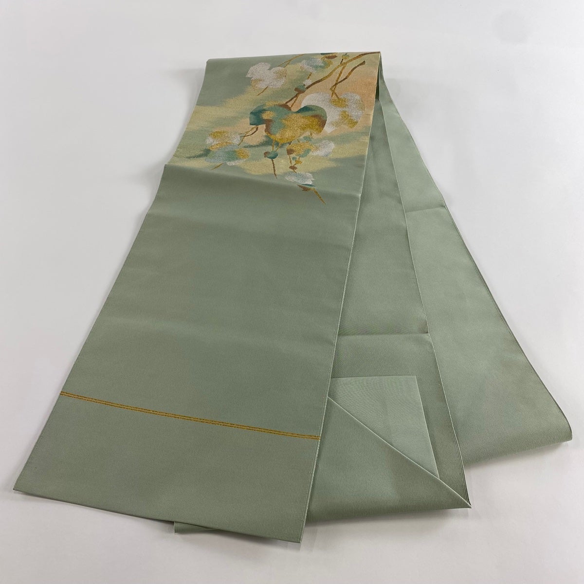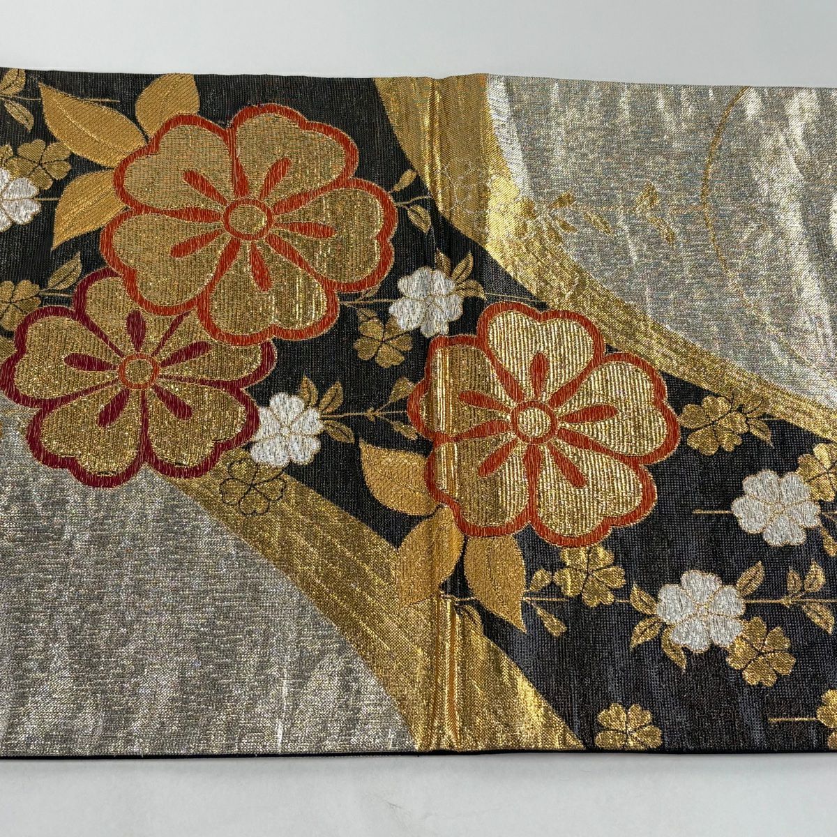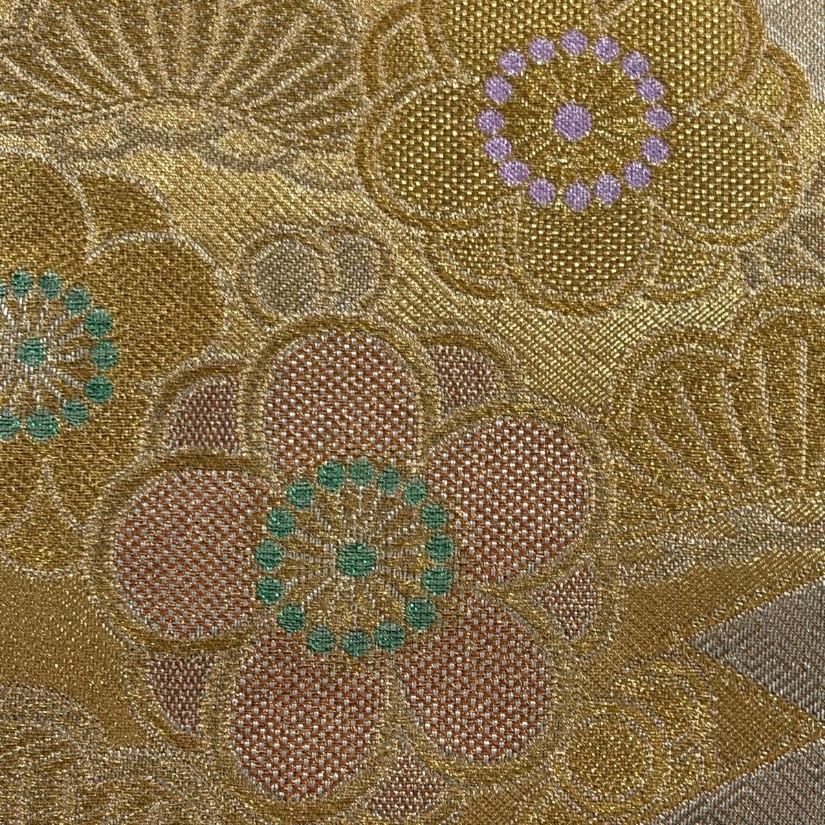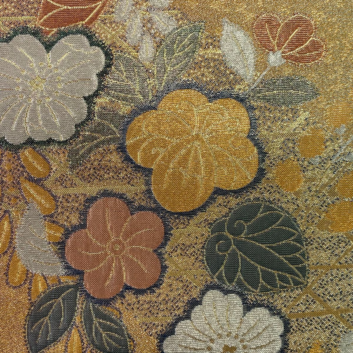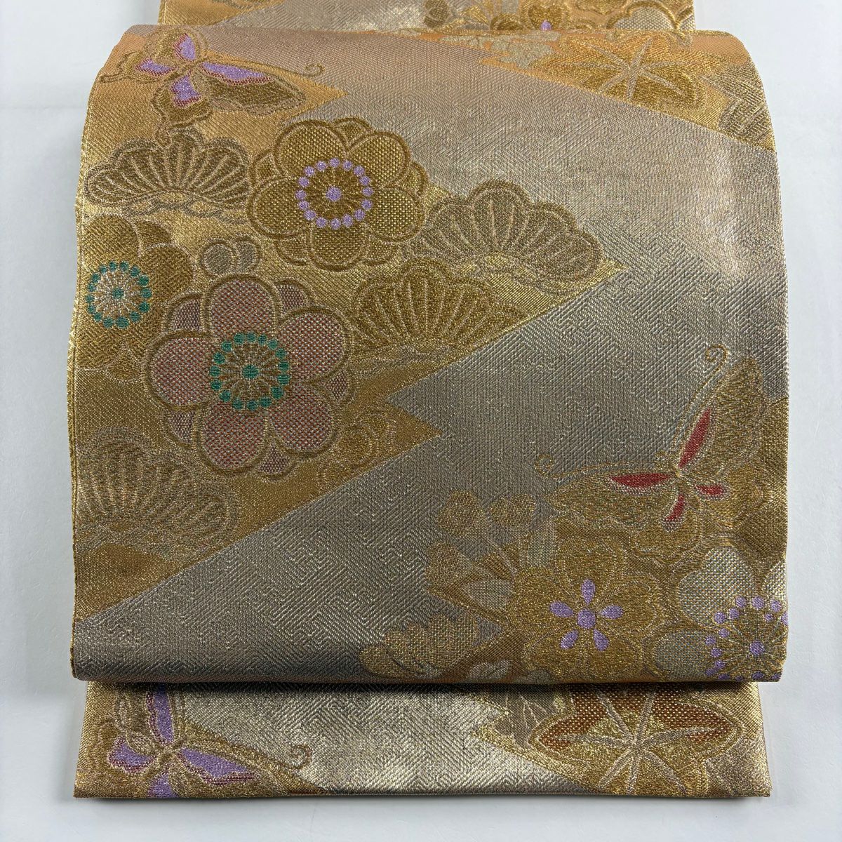 【在庫一掃】 【美品】 袋帯 秀品 草花 枝梅 金糸 箔 金色 六通 正絹