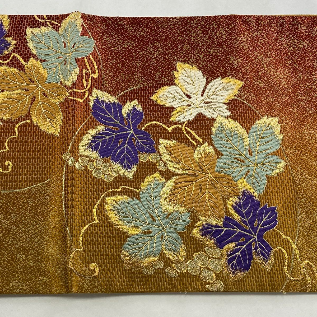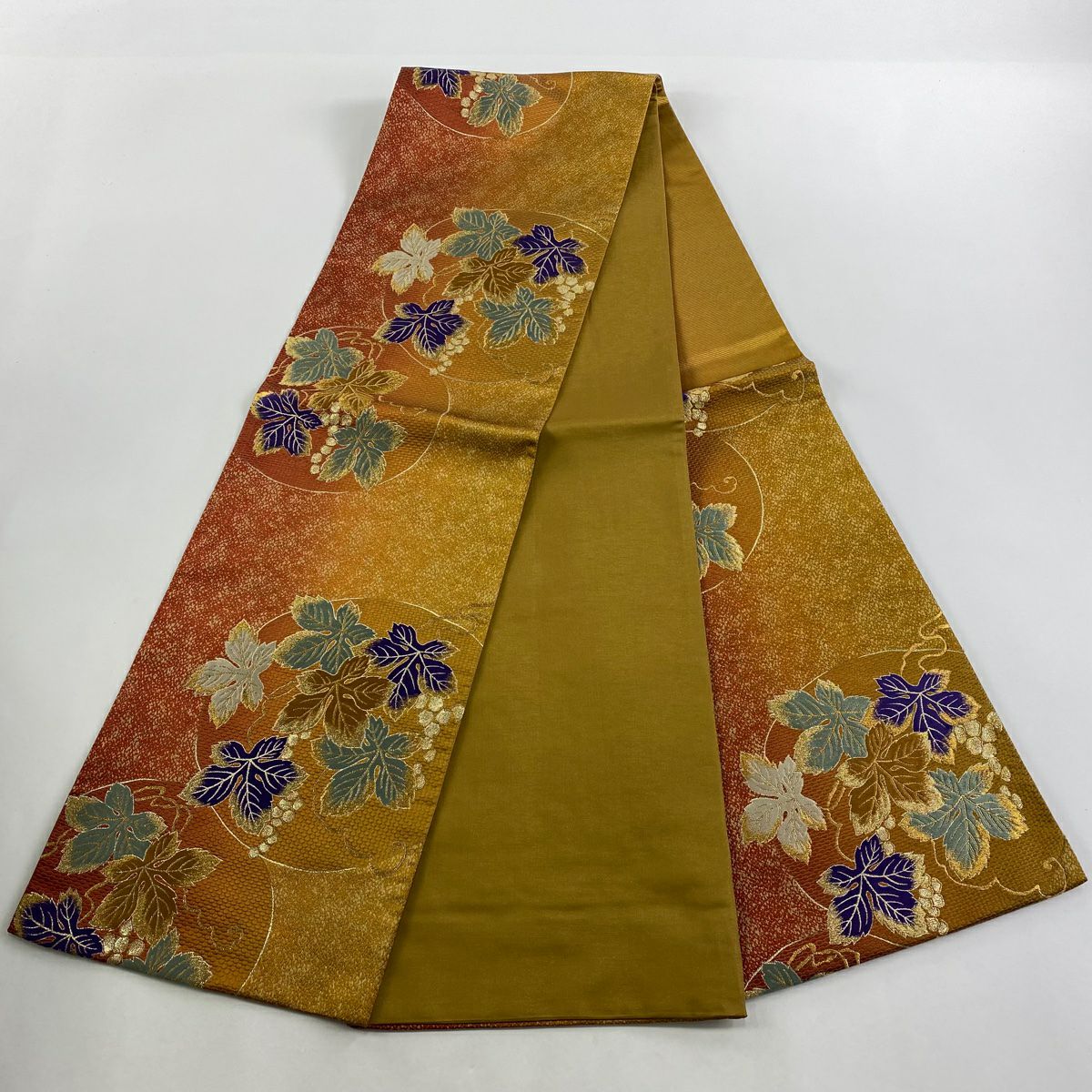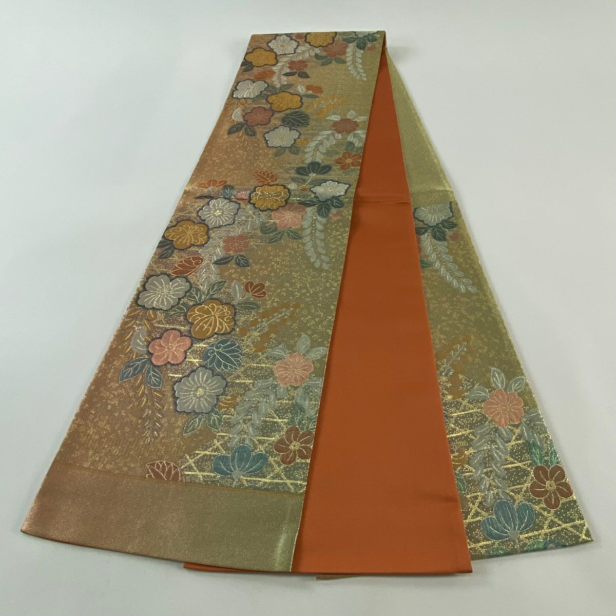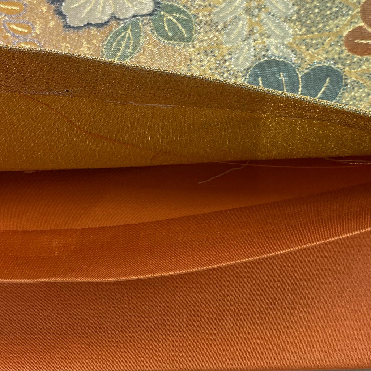 【在庫一掃】 【美品】 袋帯 秀品 霞 金糸 箔 オレンジ 全通 正絹