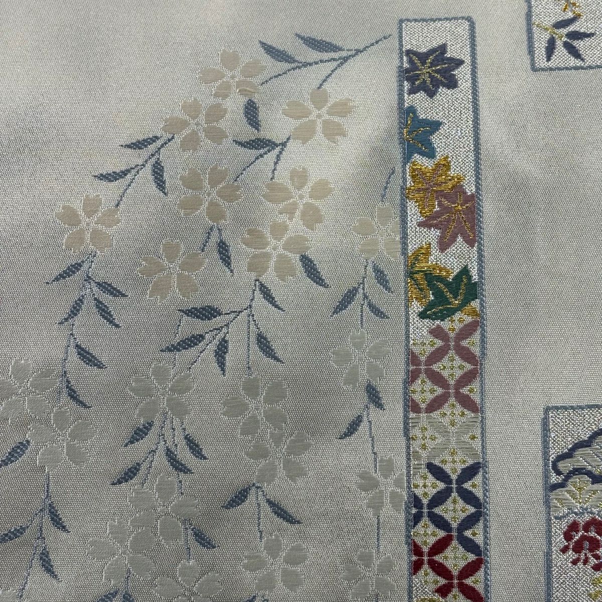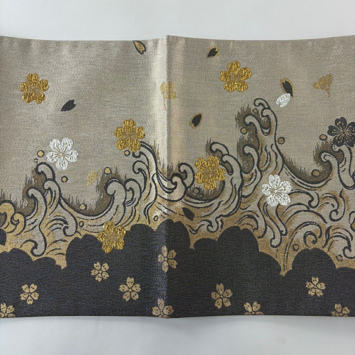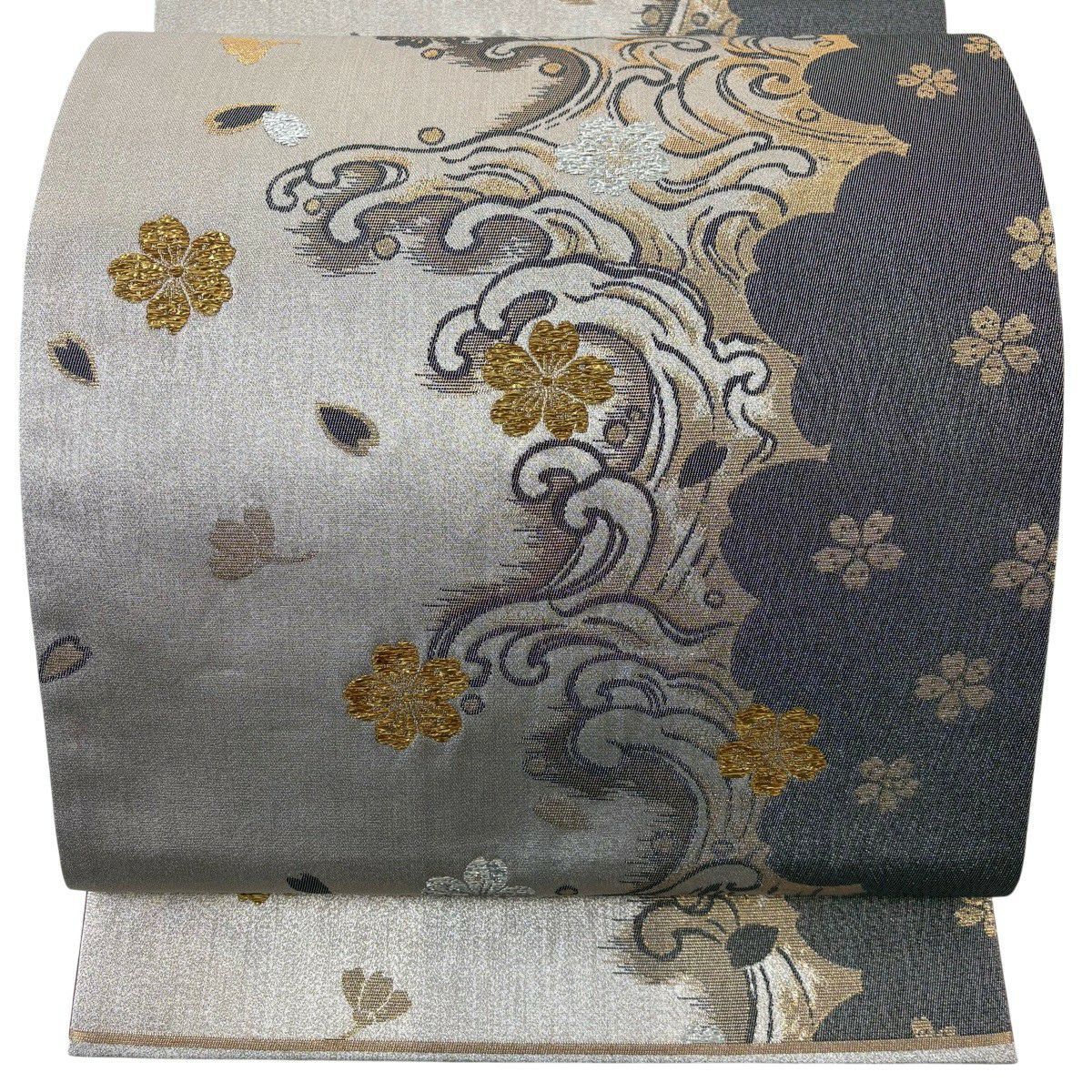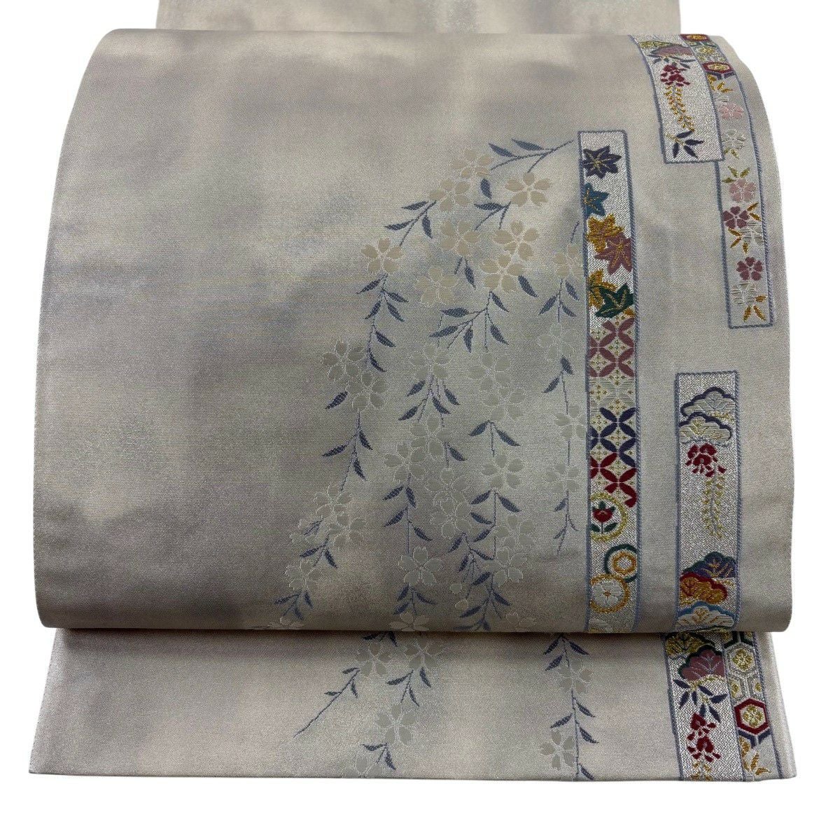 【美品】 袋帯 秀品 桜 七宝 金銀糸 箔 灰白 六通 正絹