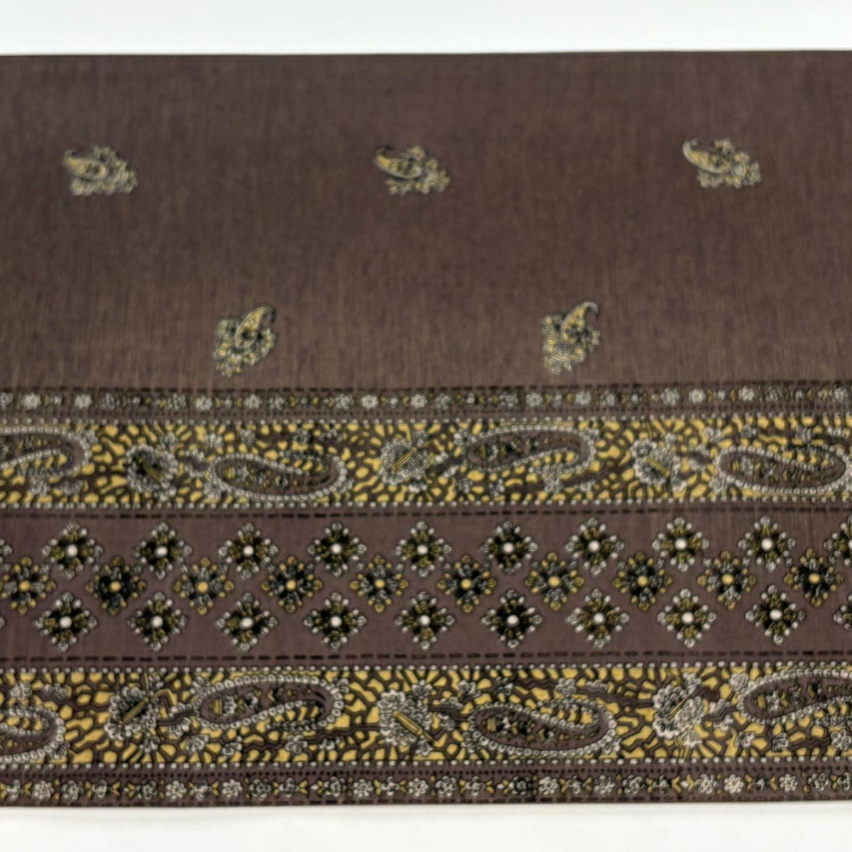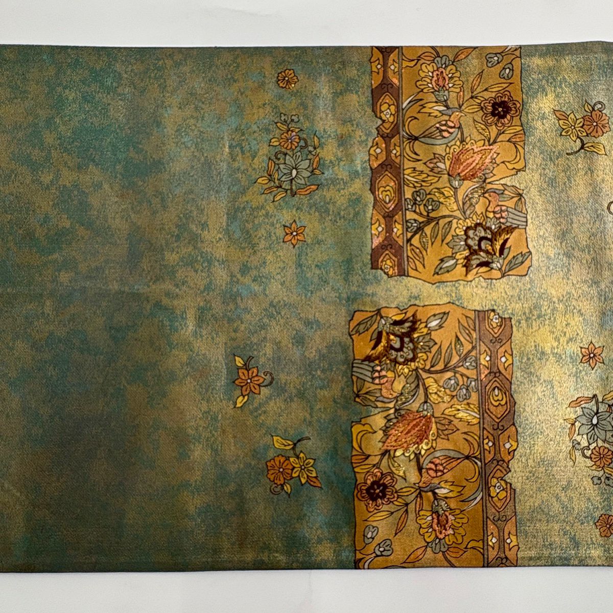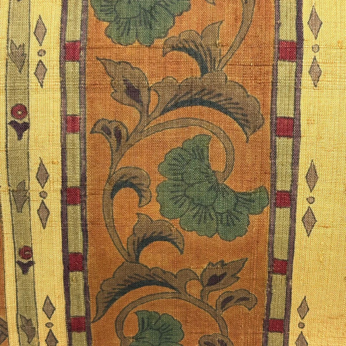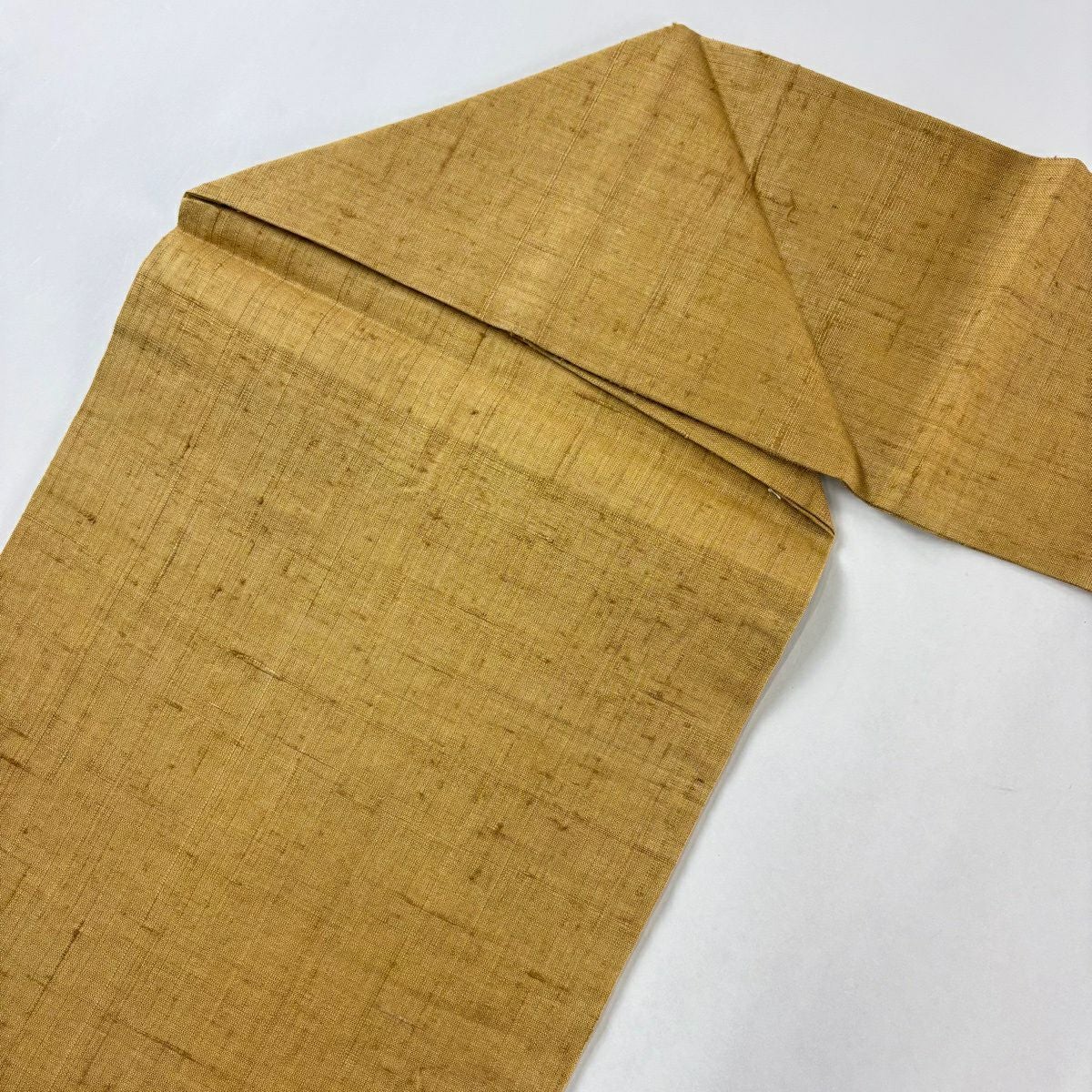 【美品】 名古屋帯 秀品 紬地 花唐草 幾何学 黄土色 正絹