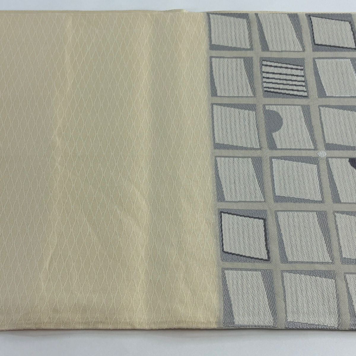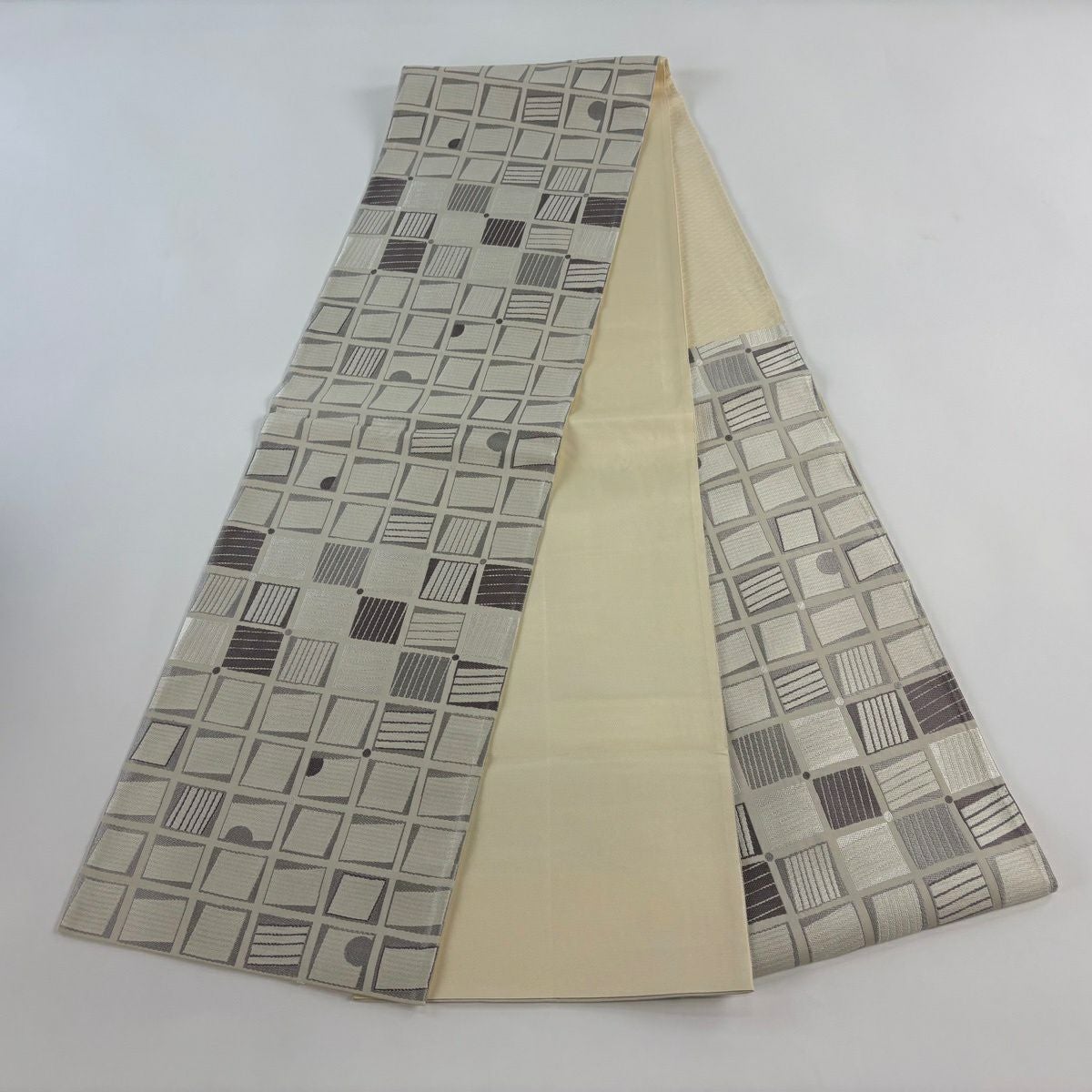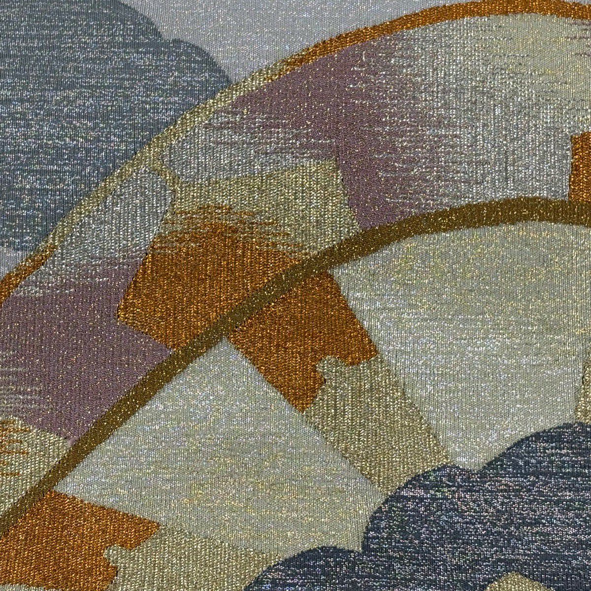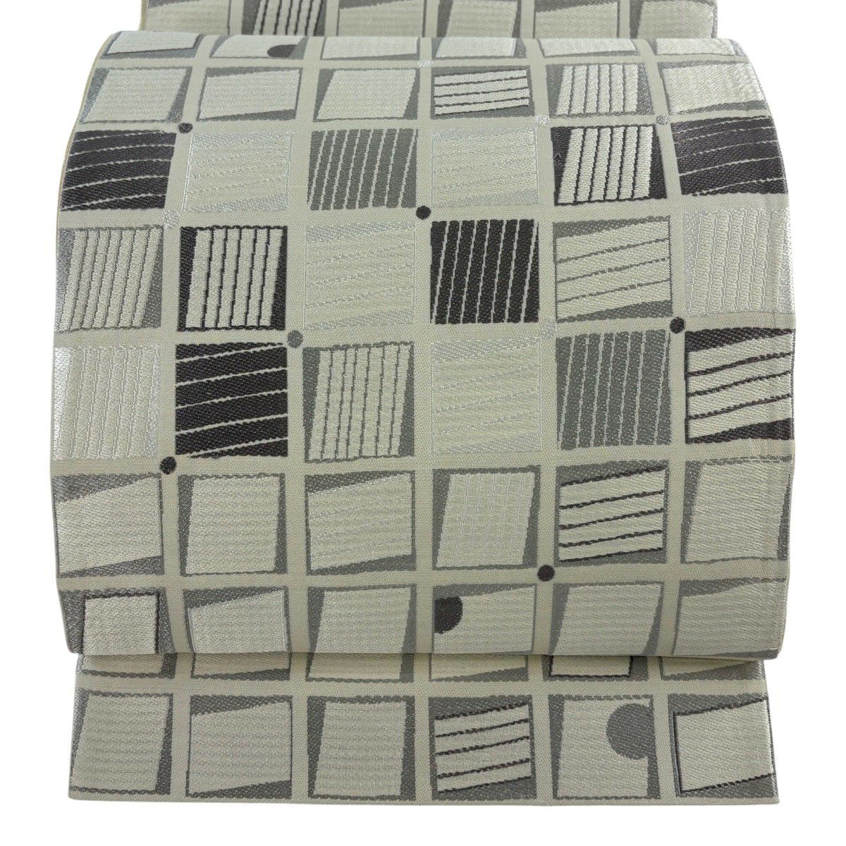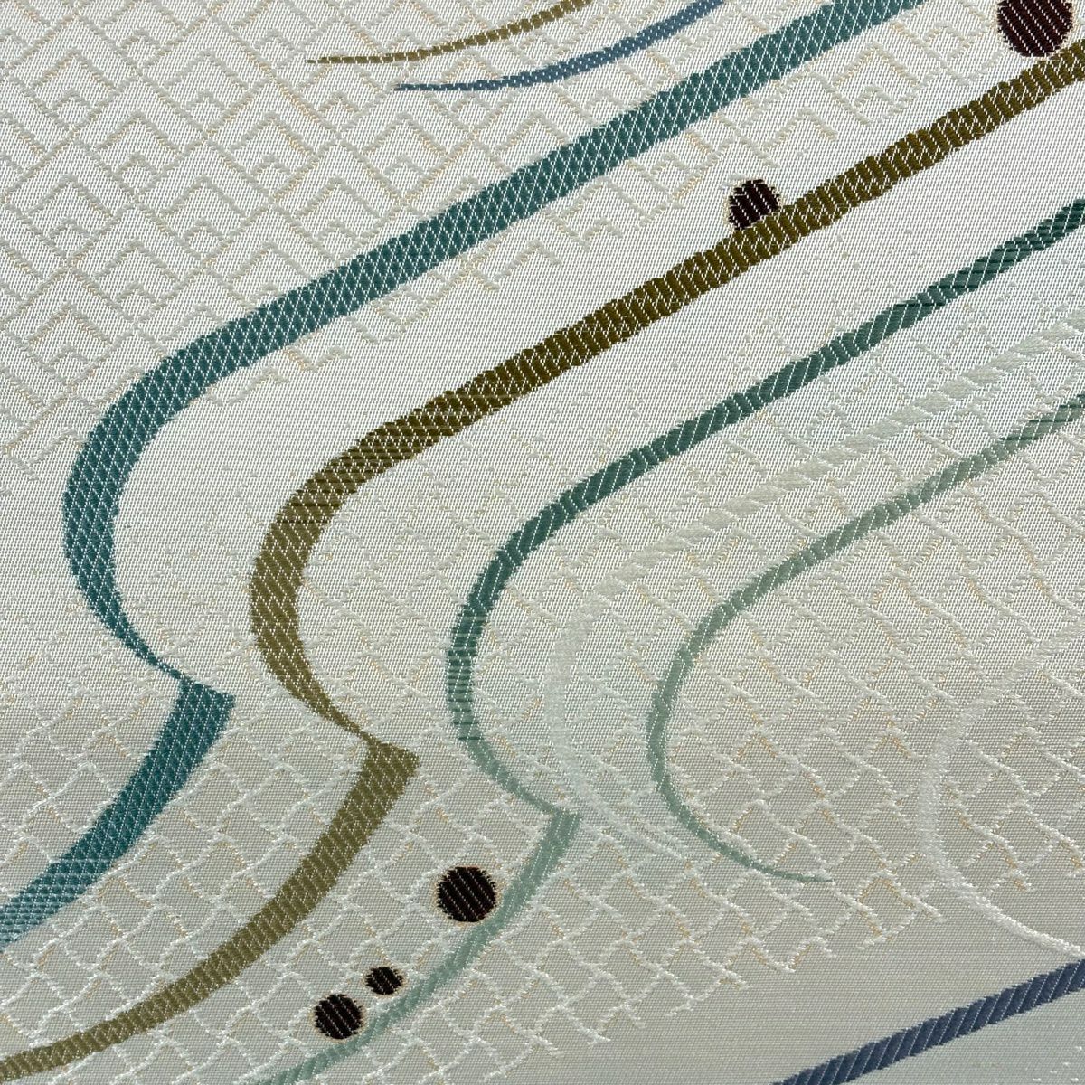 【美品】 袋帯 秀品 落款あり 幾何学 クリーム 六通 正絹