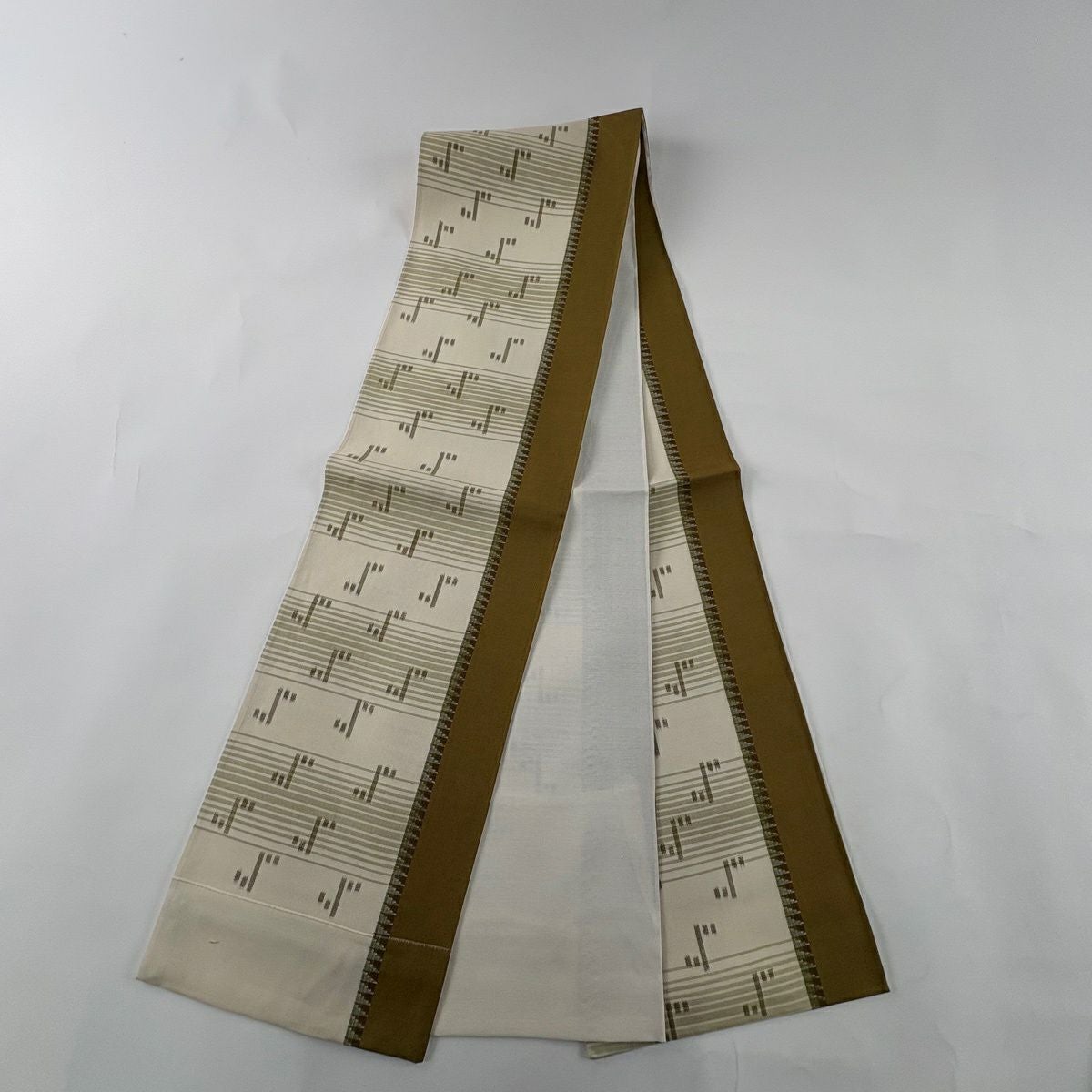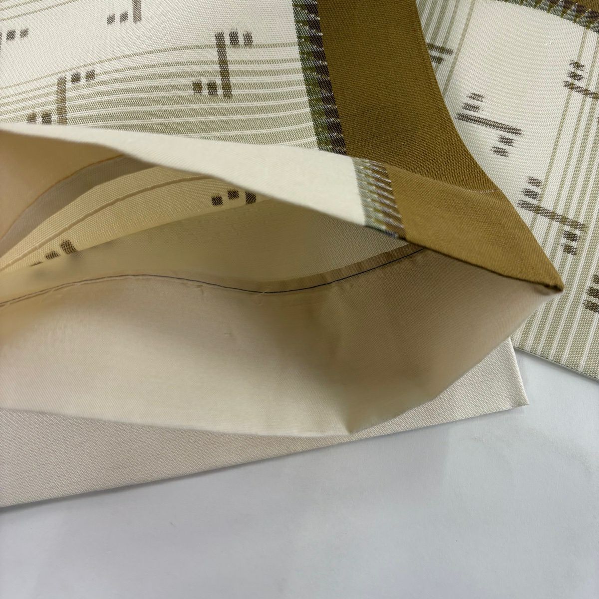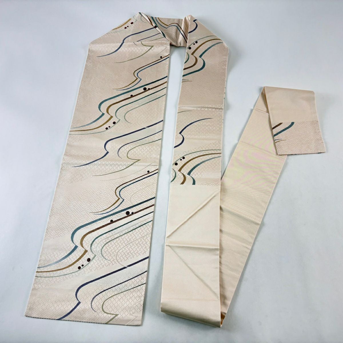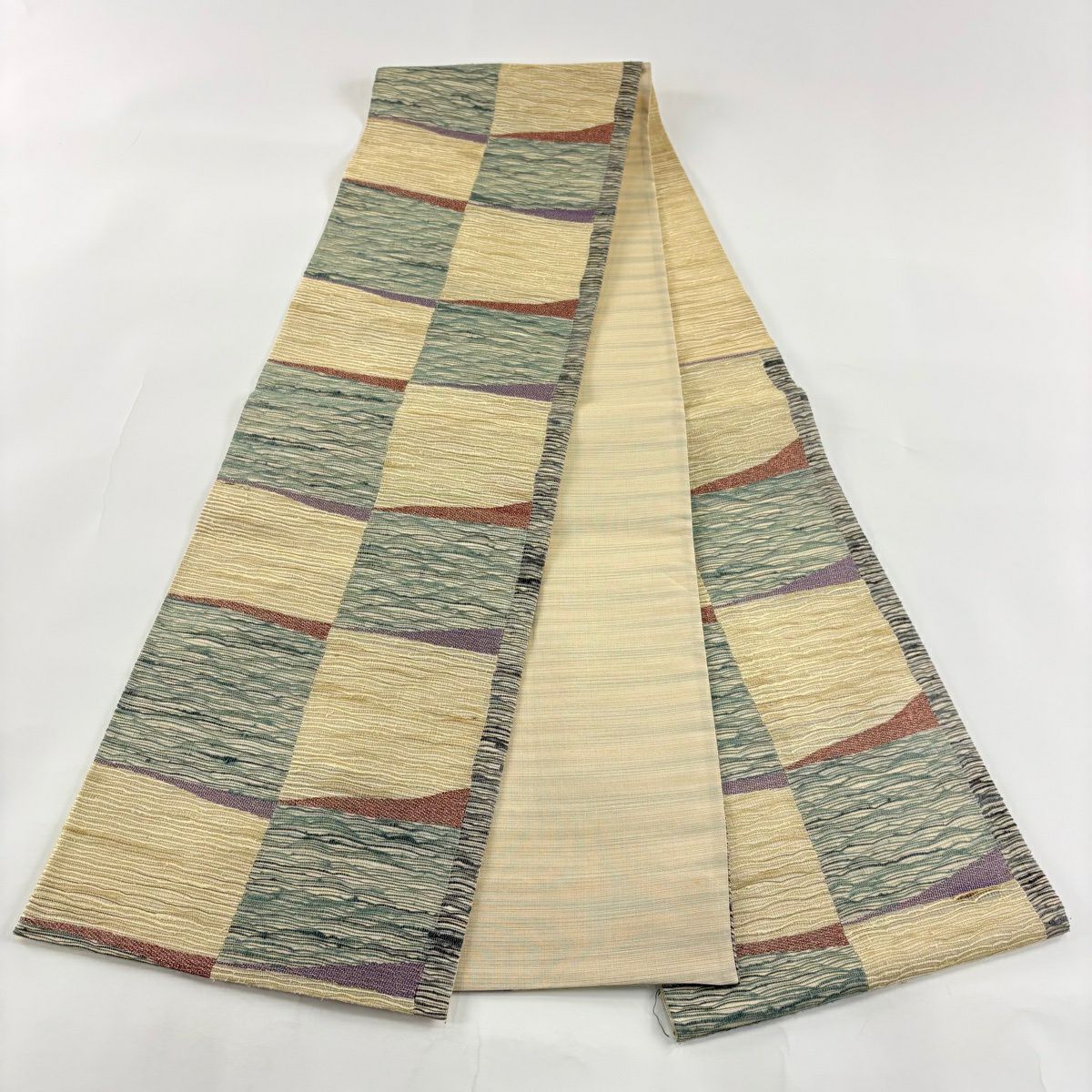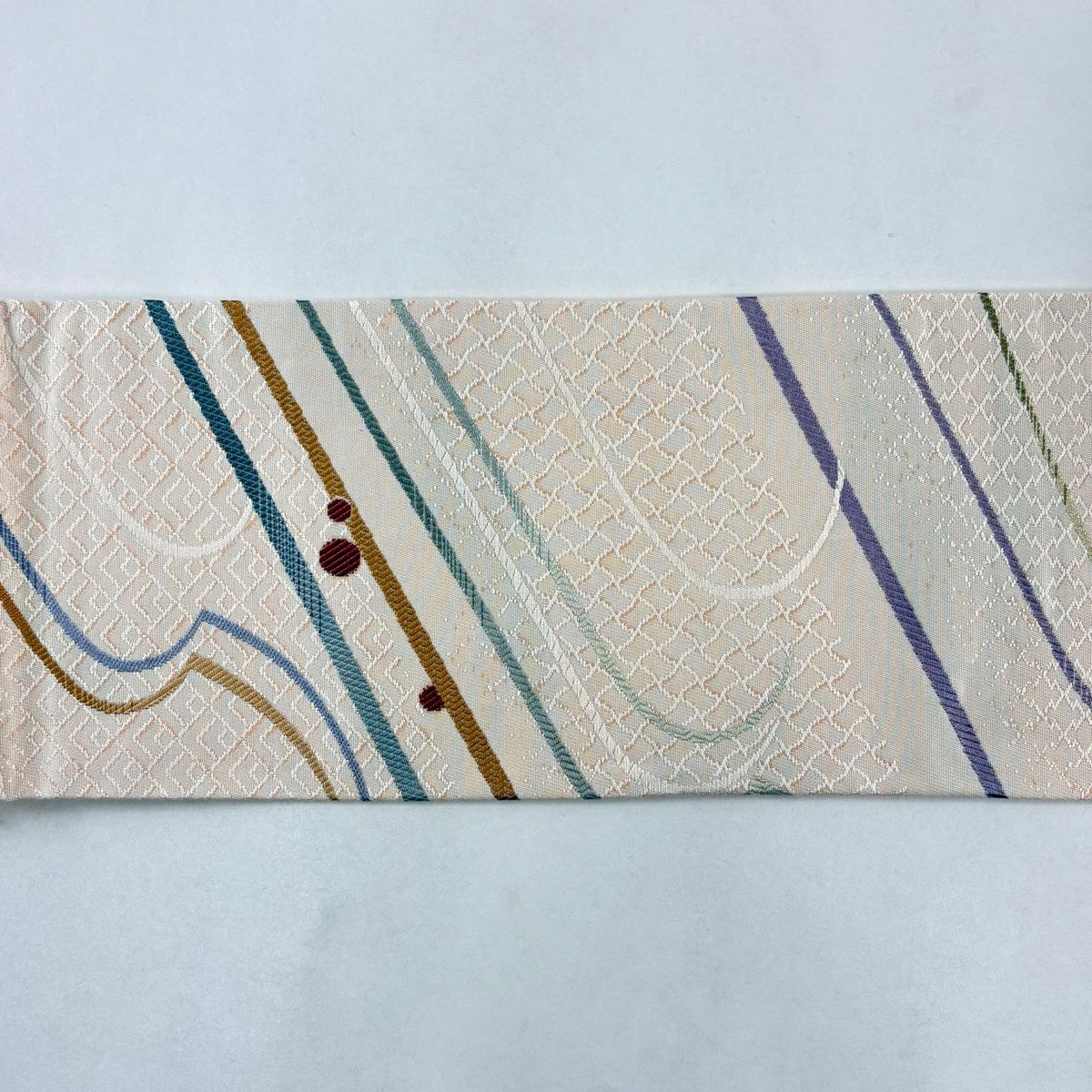 【美品】 袋帯 秀品 落款あり 幾何学 クリーム 六通 正絹