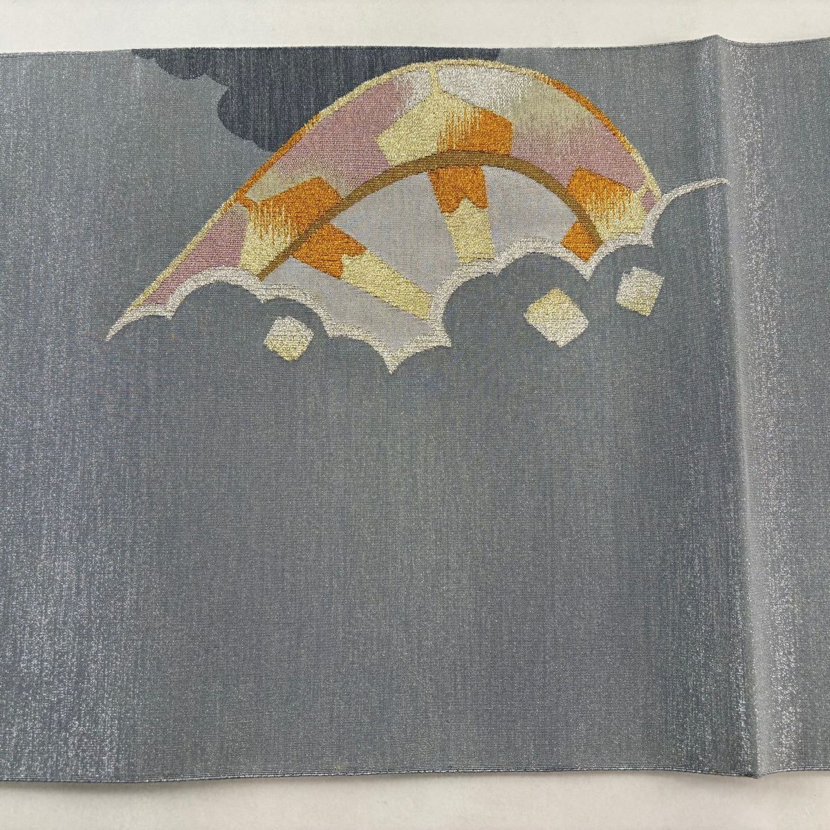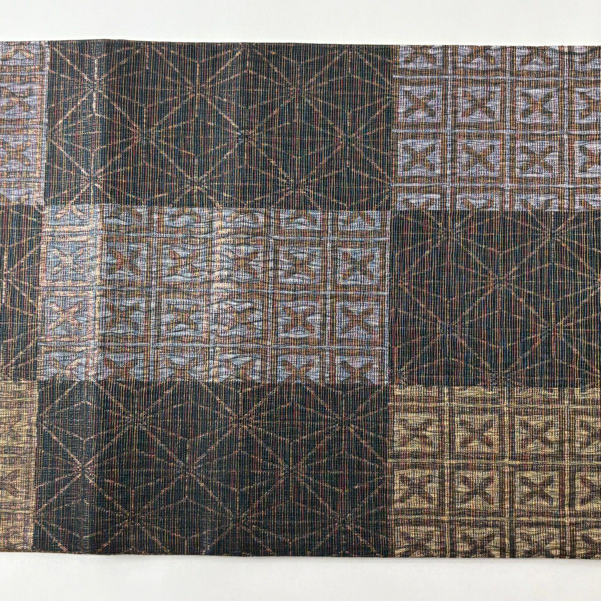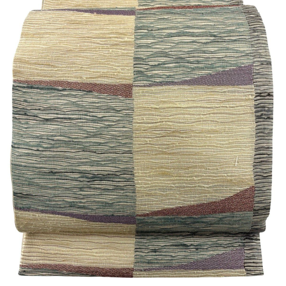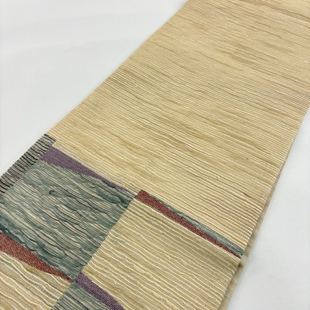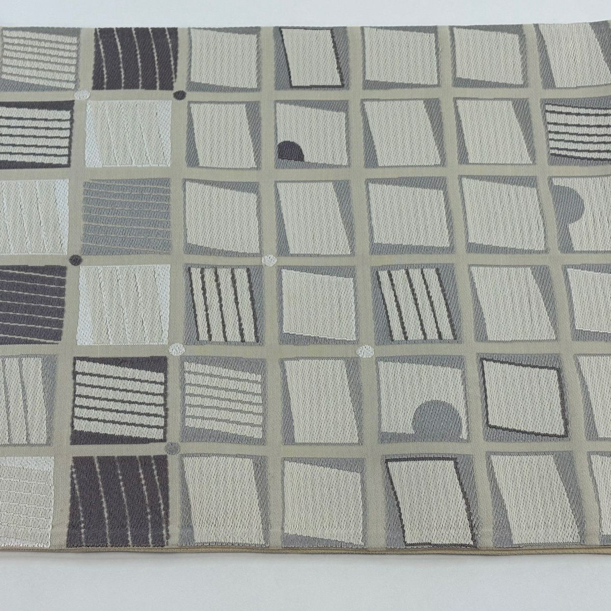 【美品】 袋帯 秀品 落款あり 幾何学 クリーム 六通 正絹