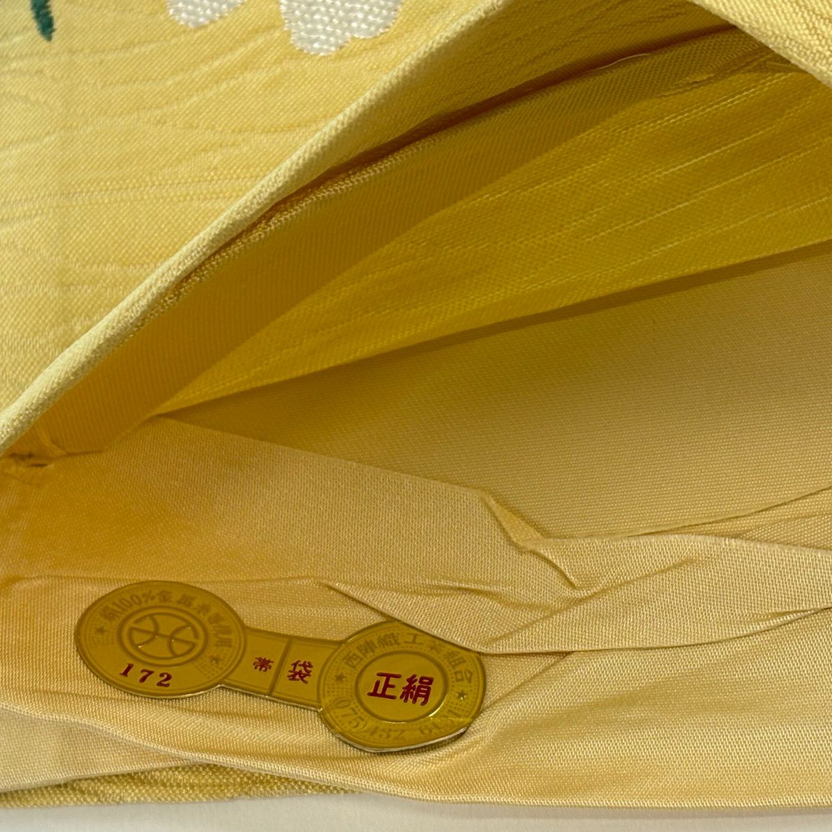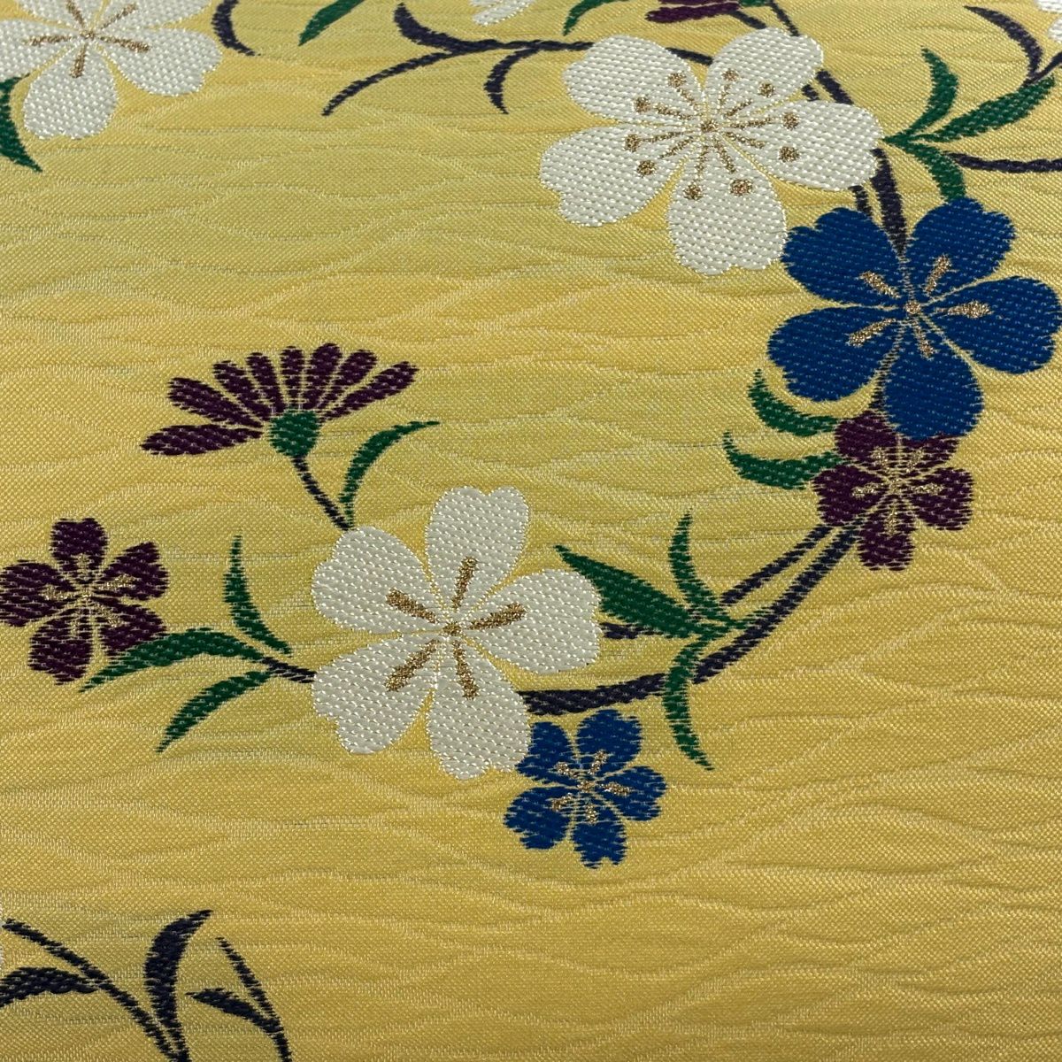 【美品】 袋帯 秀品 証紙あり 枝花 箔 山吹色 六通 正絹