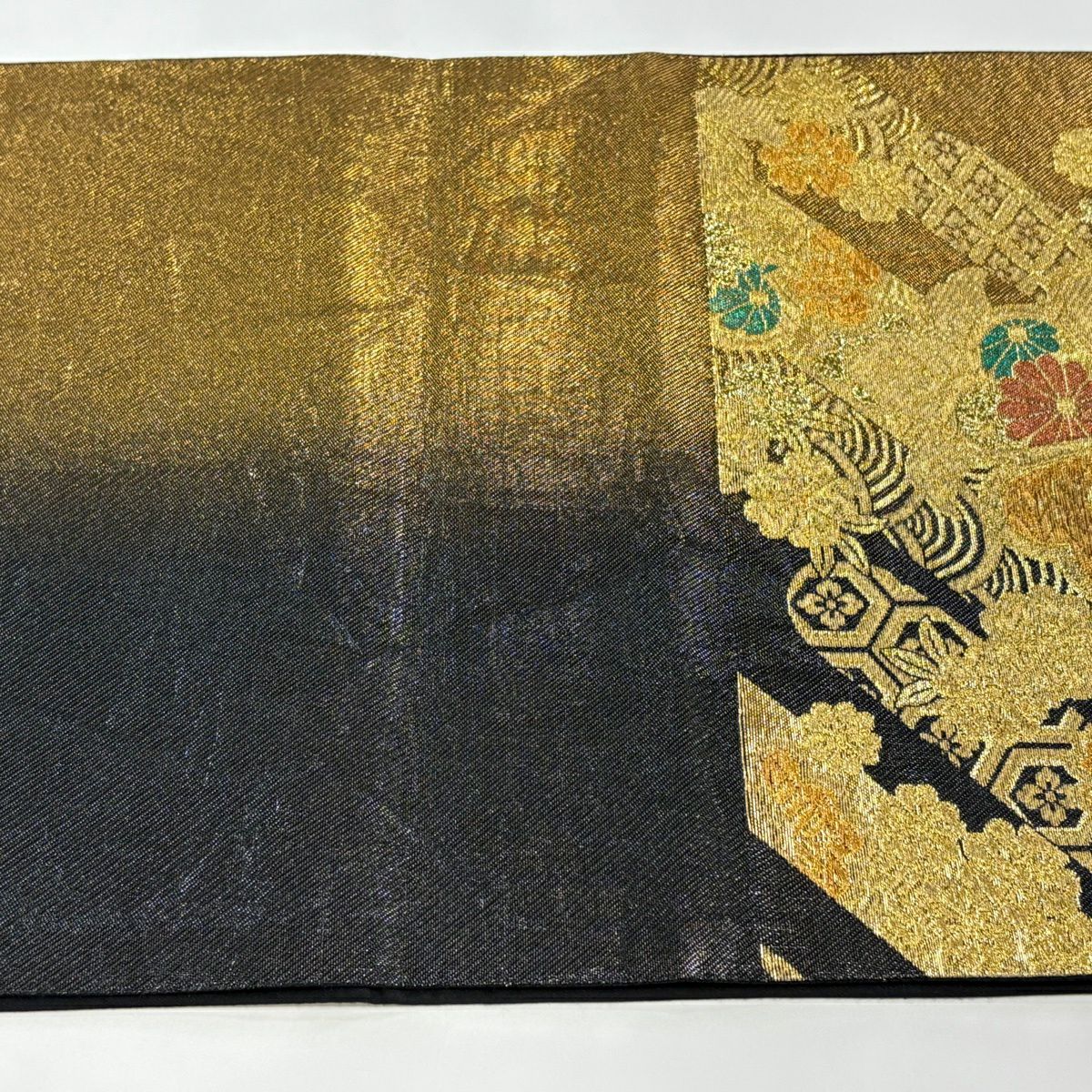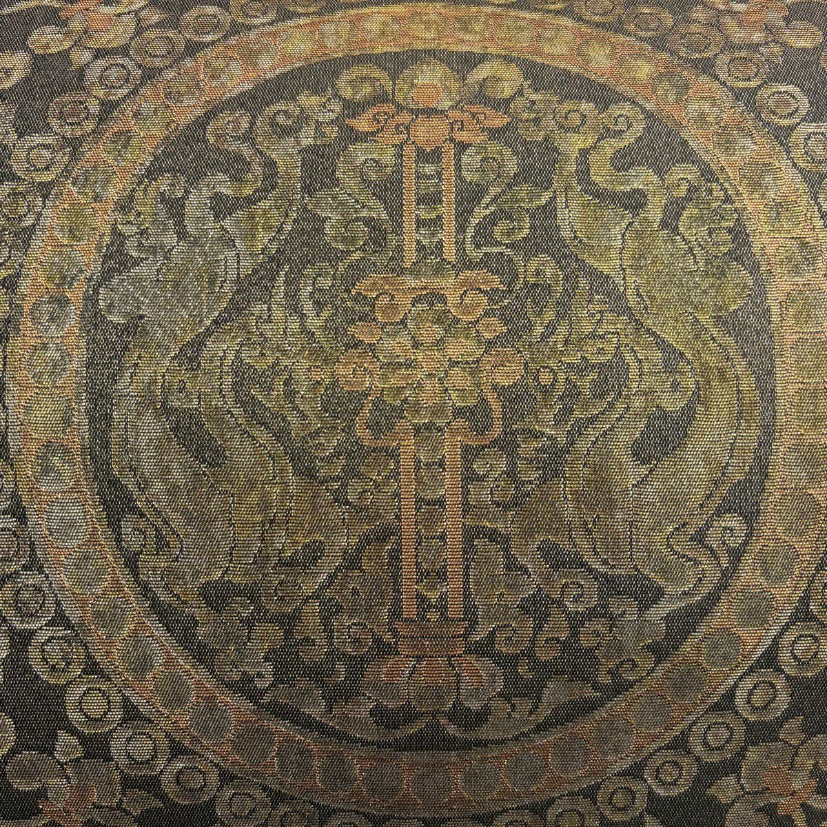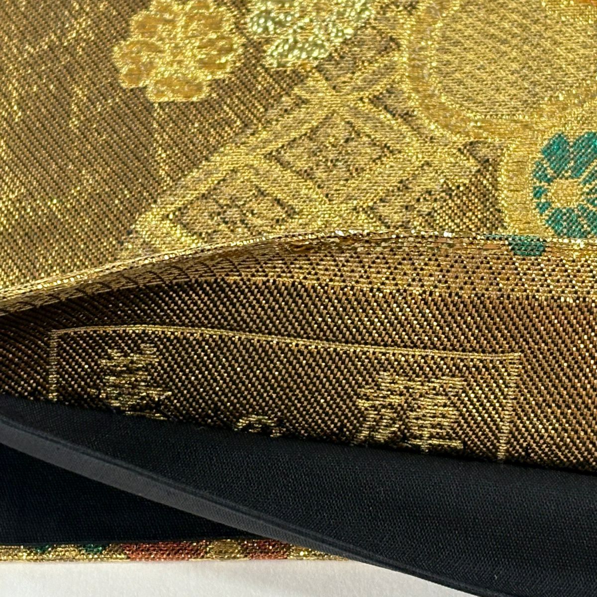 【美品】 袋帯 秀品 華文 花唐草 金糸 箔 金色 六通 正絹
