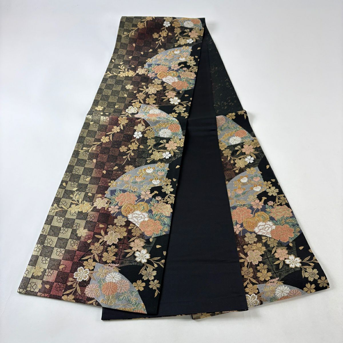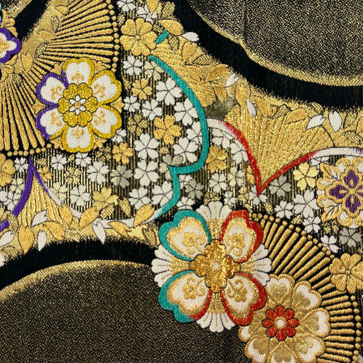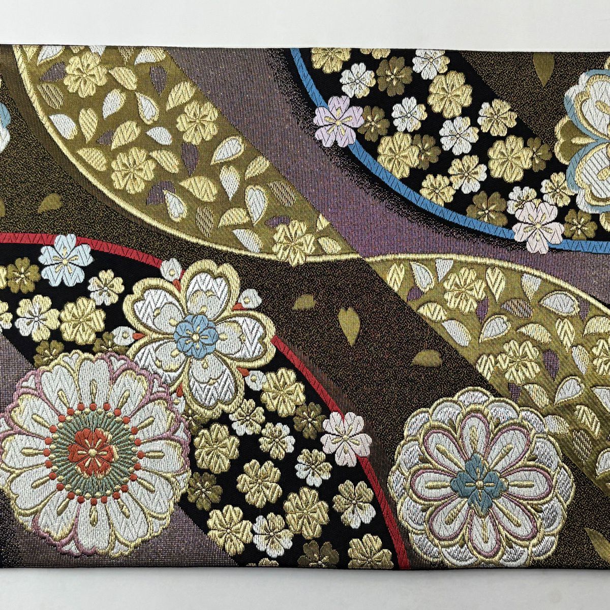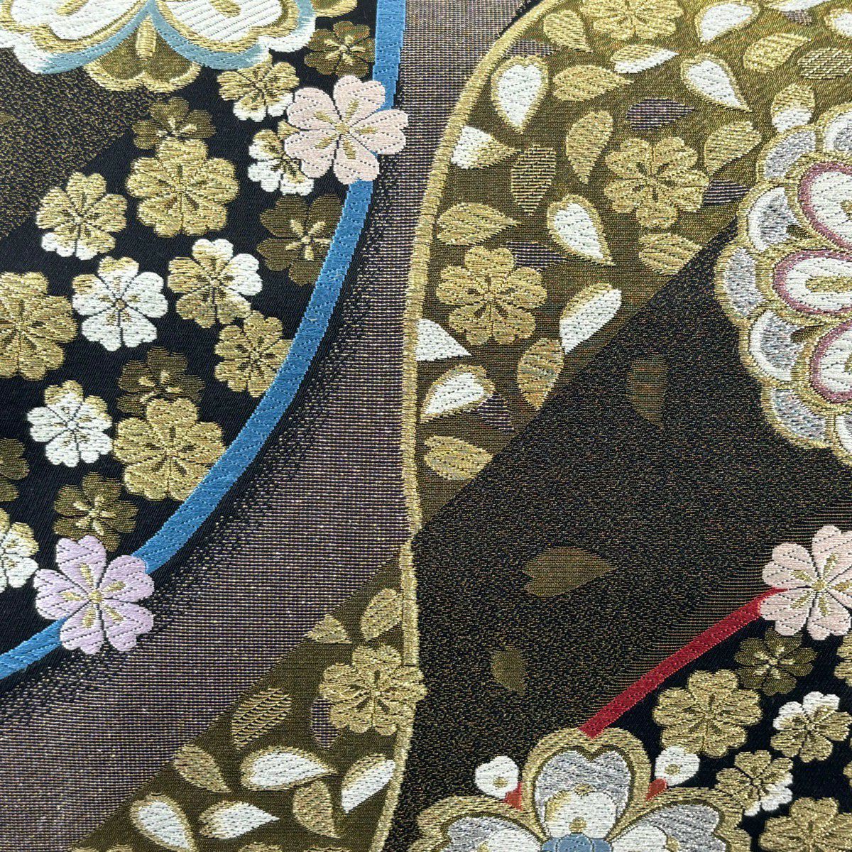 【美品】 袋帯 秀品 華文 桜 刺繍 金銀糸 黒 六通 正絹