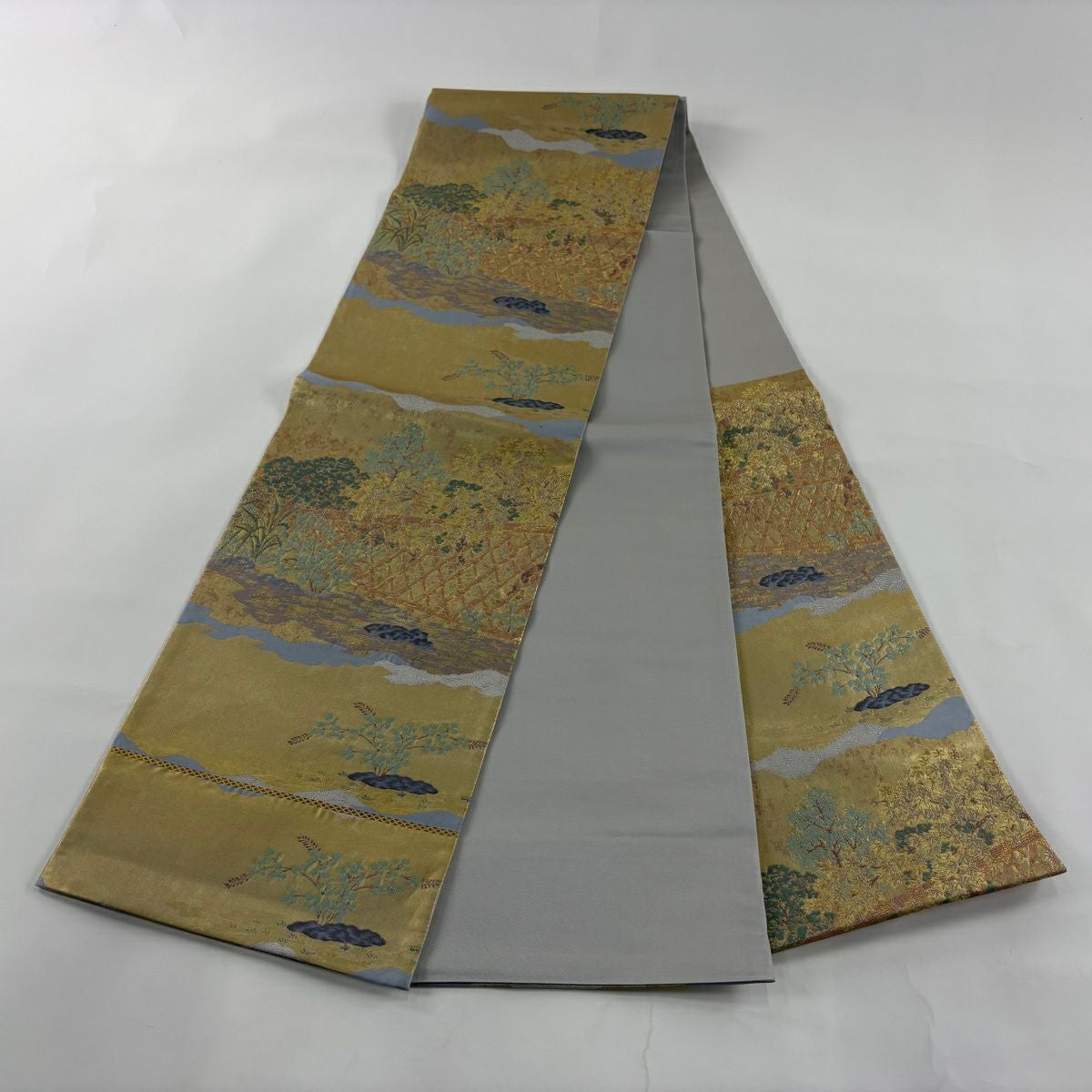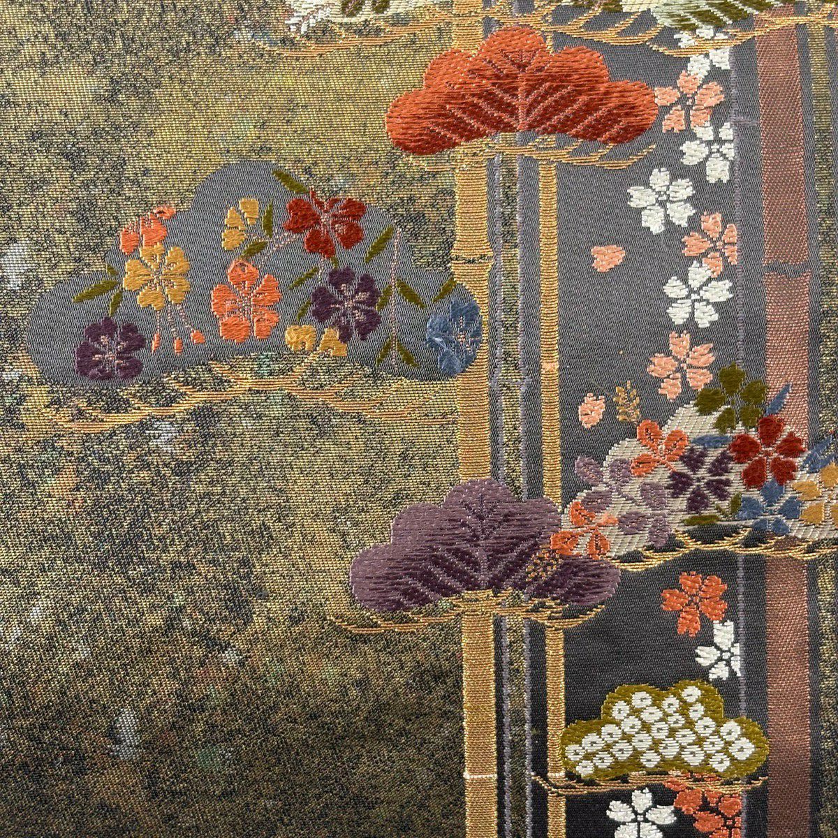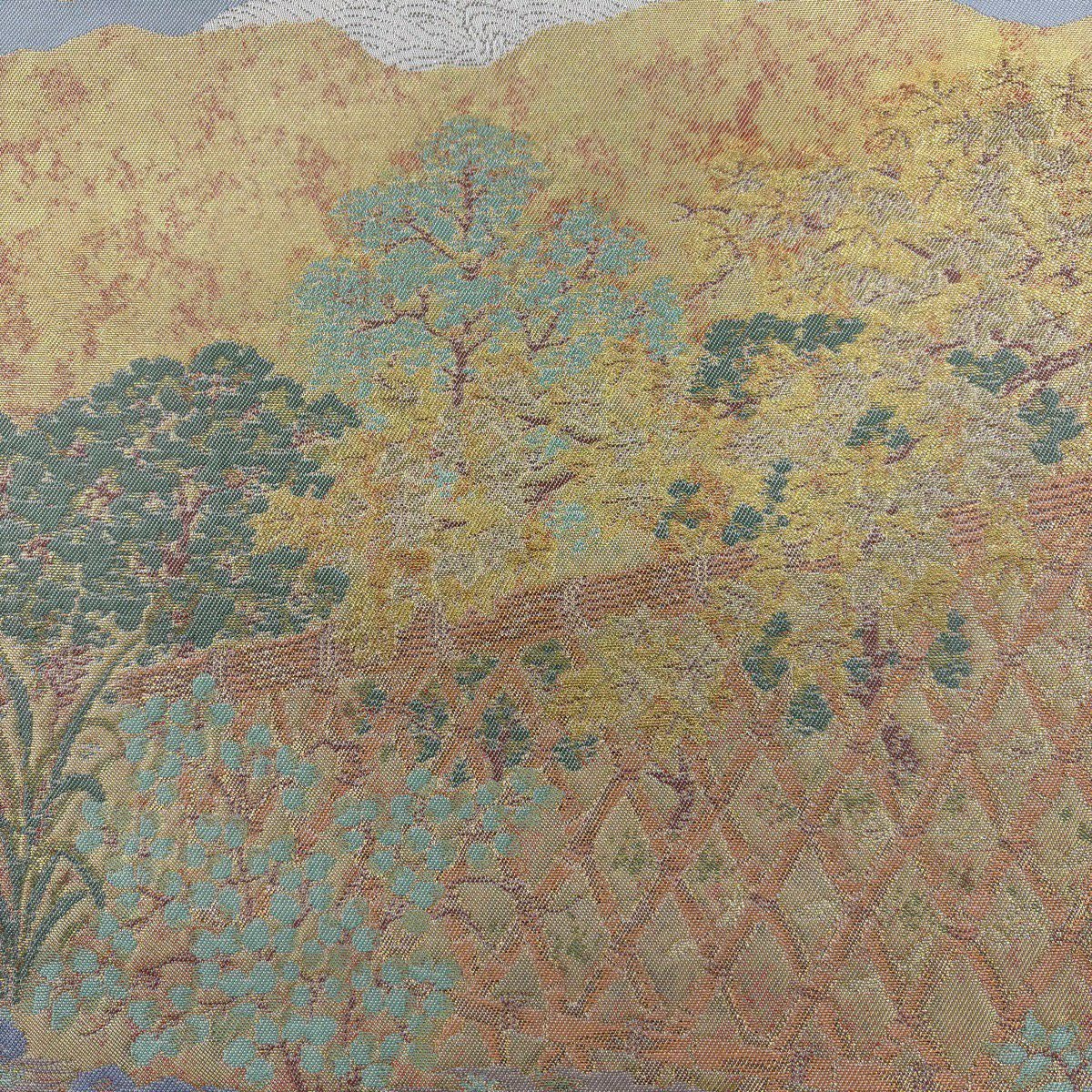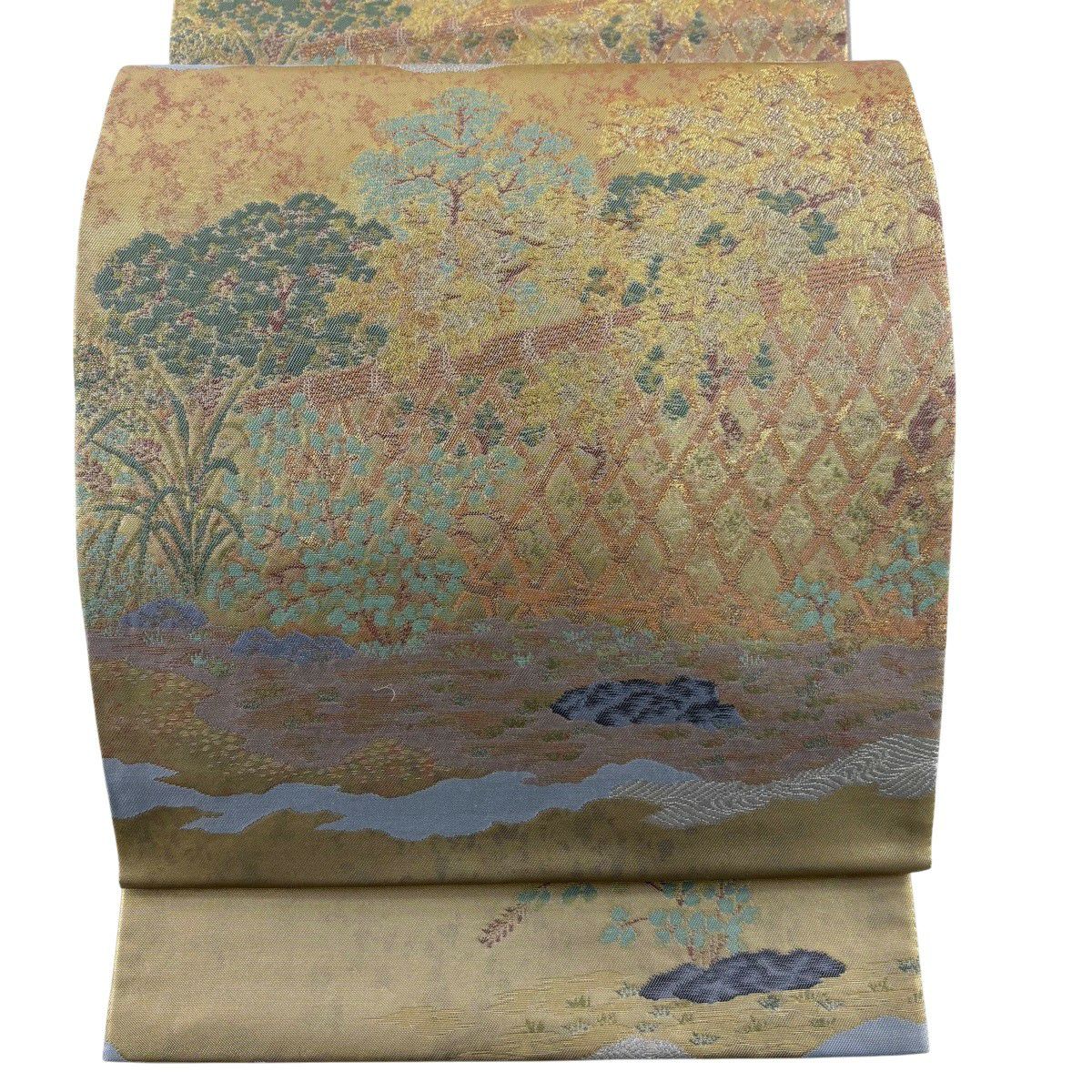 【美品】 袋帯 秀品 光悦垣 樹木 金糸 箔 金色 六通 正絹