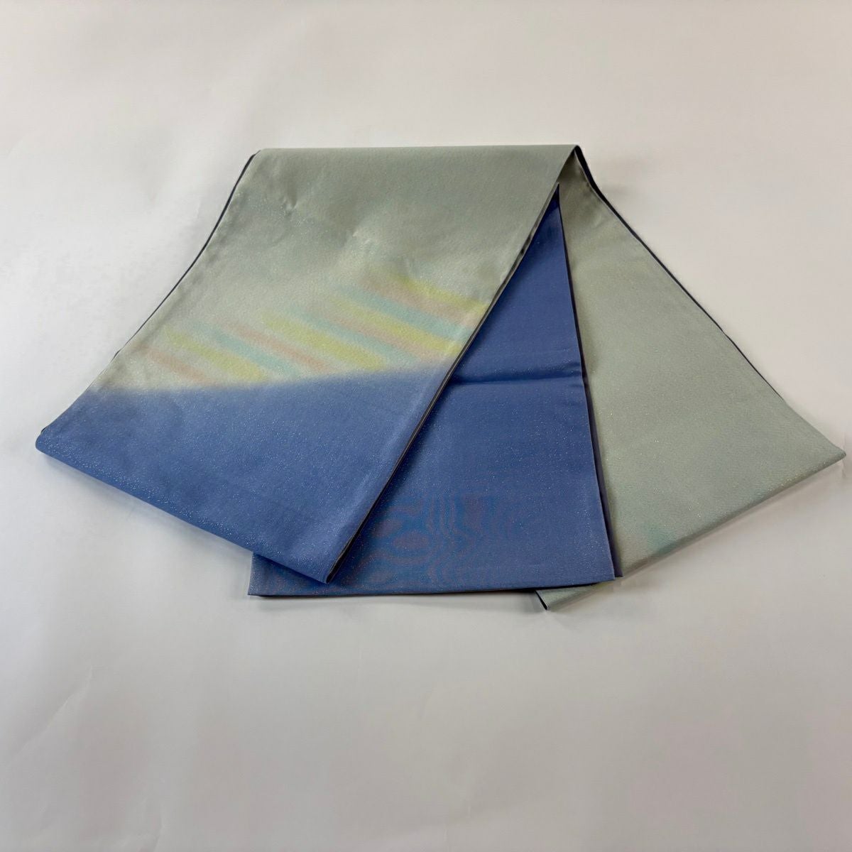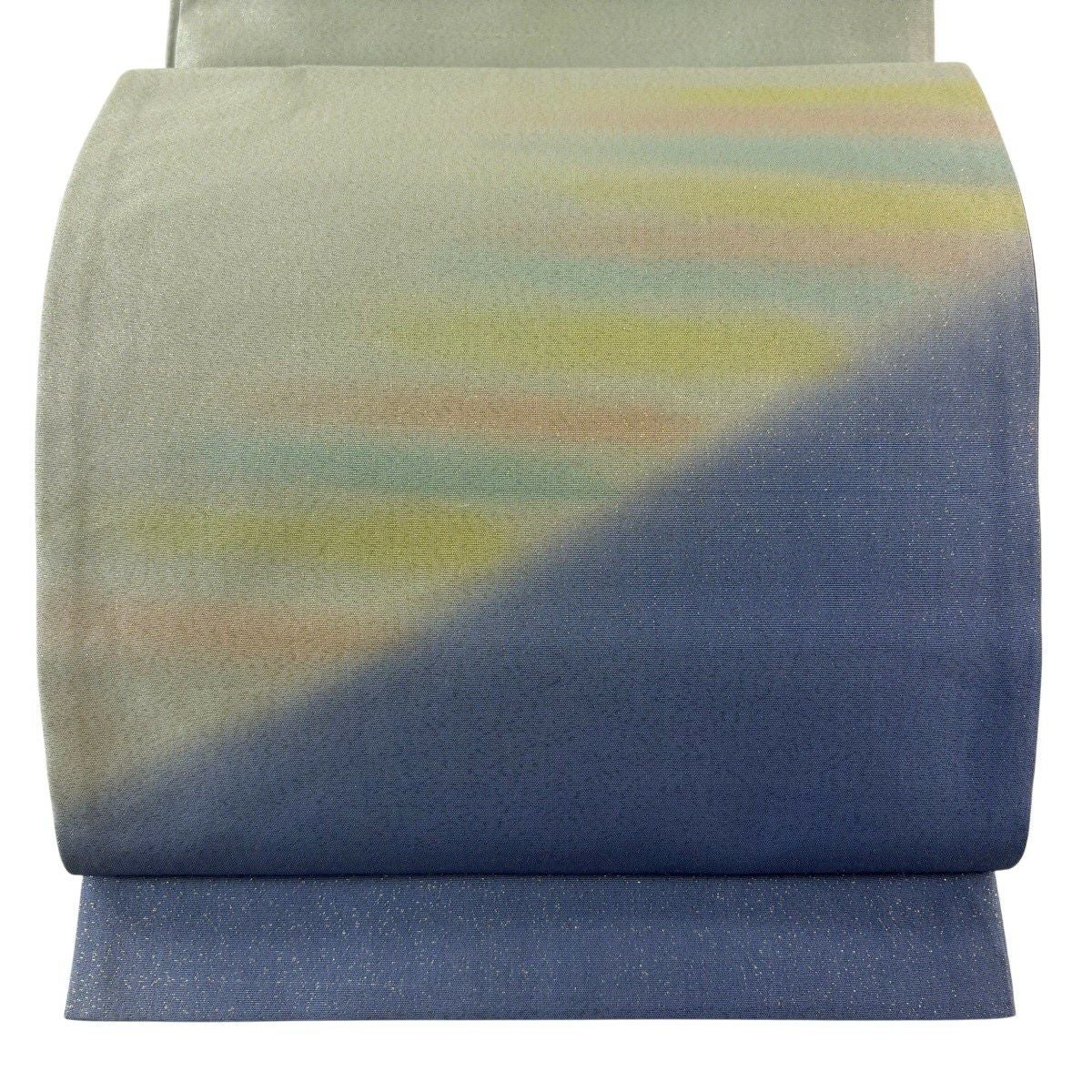 【美品】 袋帯 秀品 霞 ぼかし 箔 青灰色 お太鼓柄 正絹