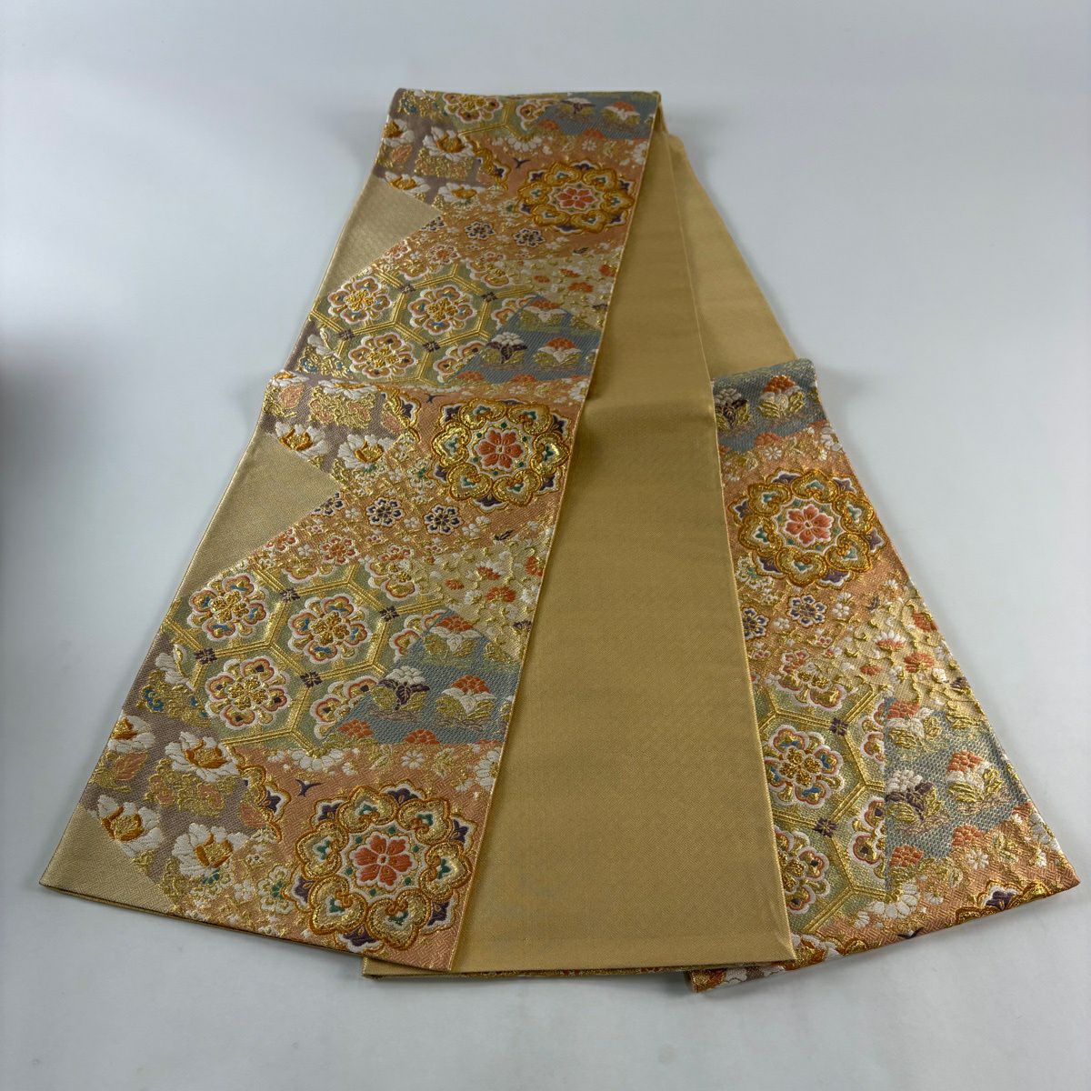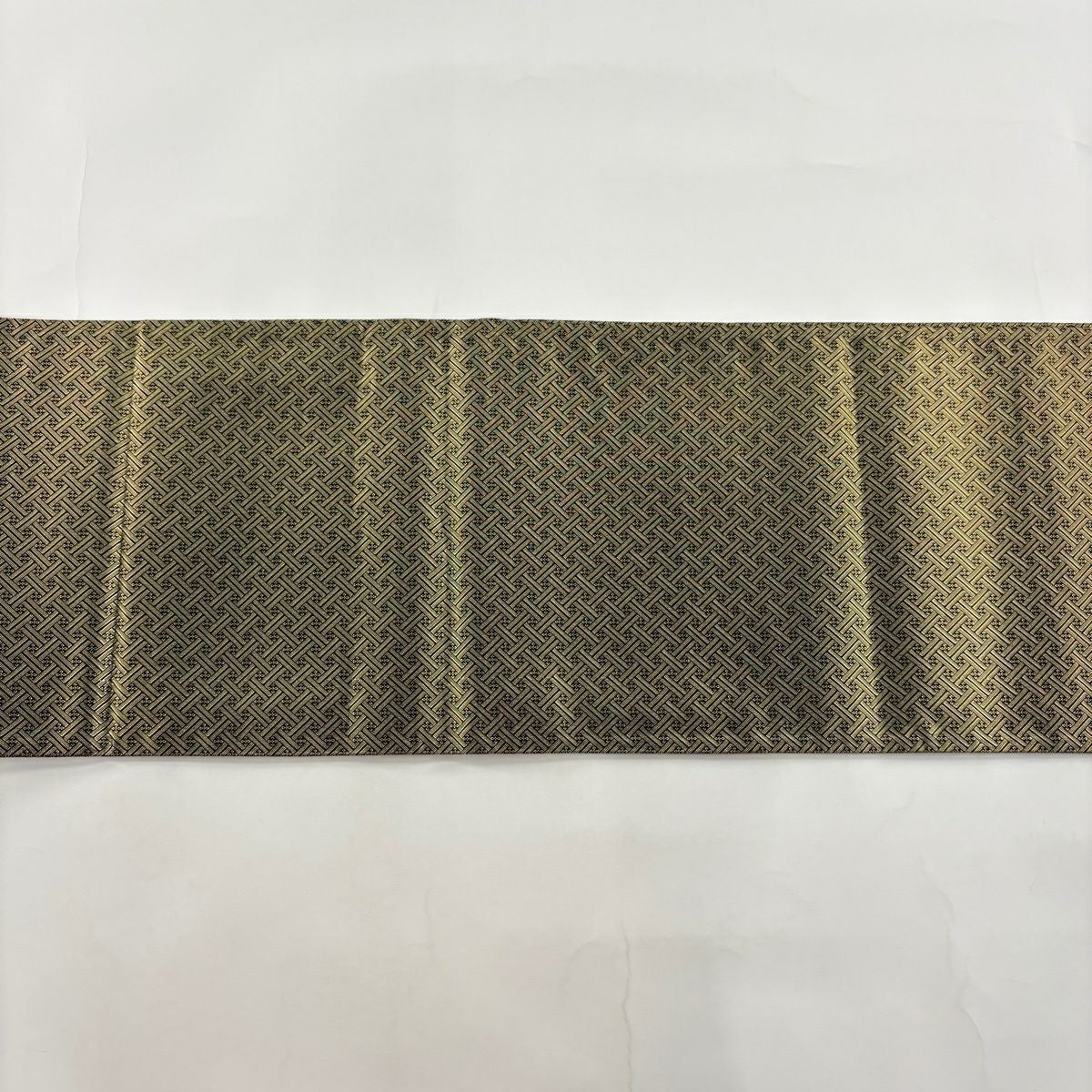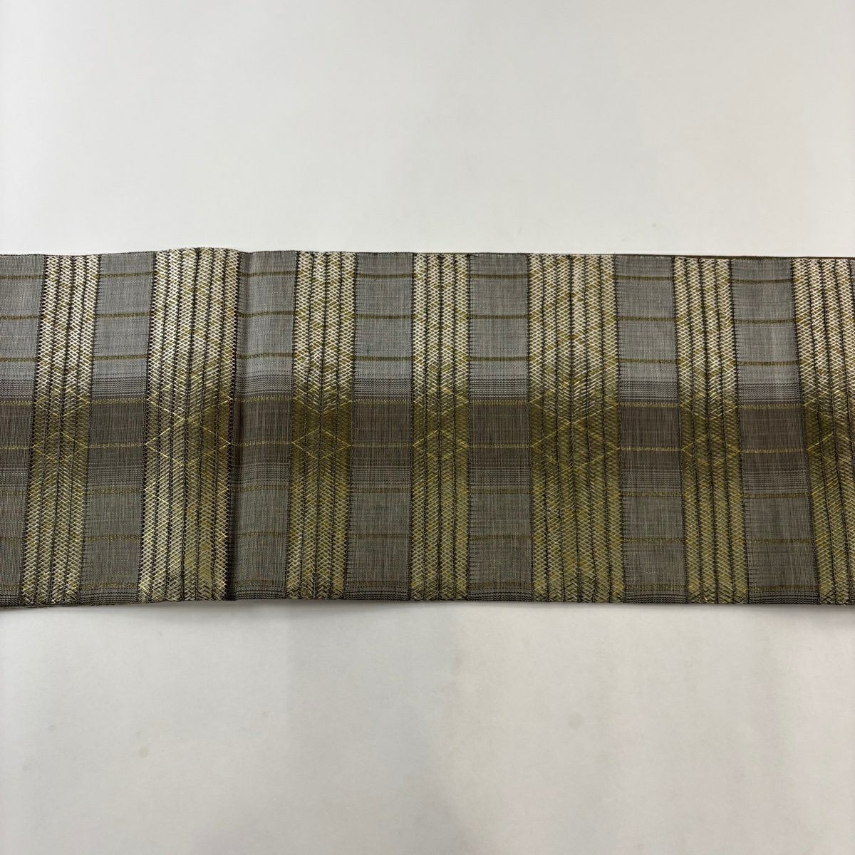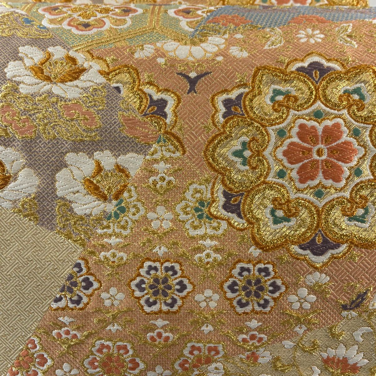 袋帯 秀品 変わり市松 金銀糸 箔 ベージュ 六通 正絹