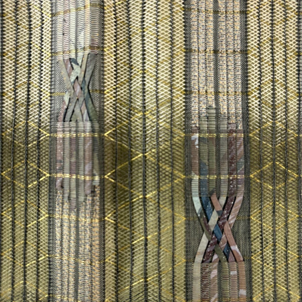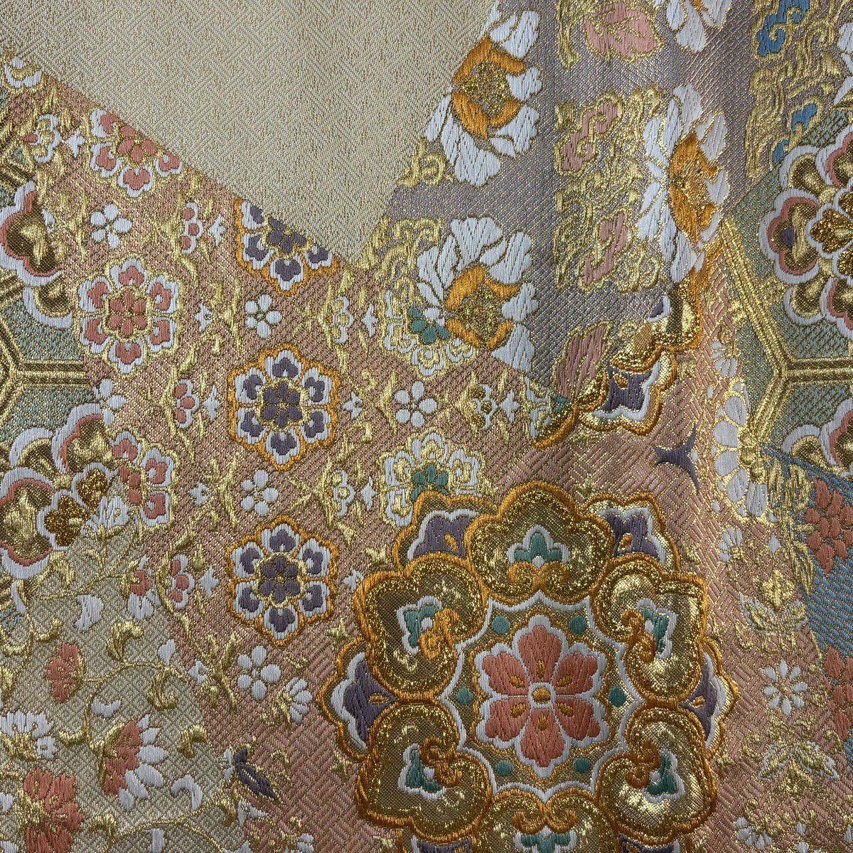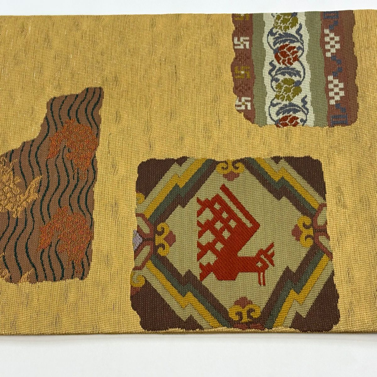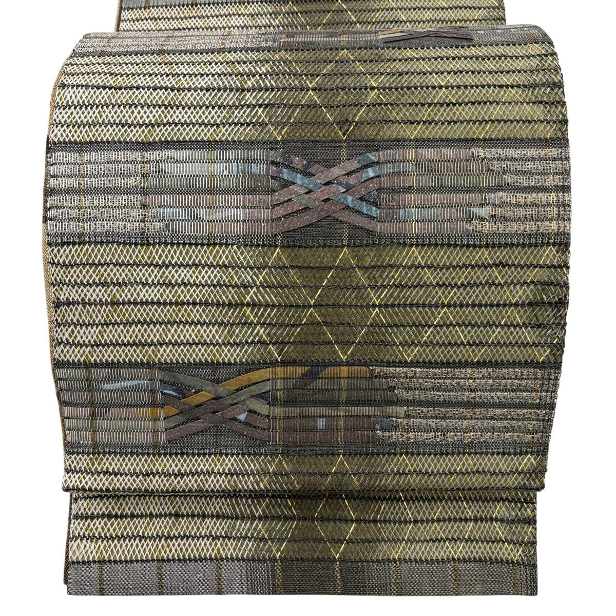 袋帯 秀品 変わり市松 金銀糸 箔 ベージュ 六通 正絹