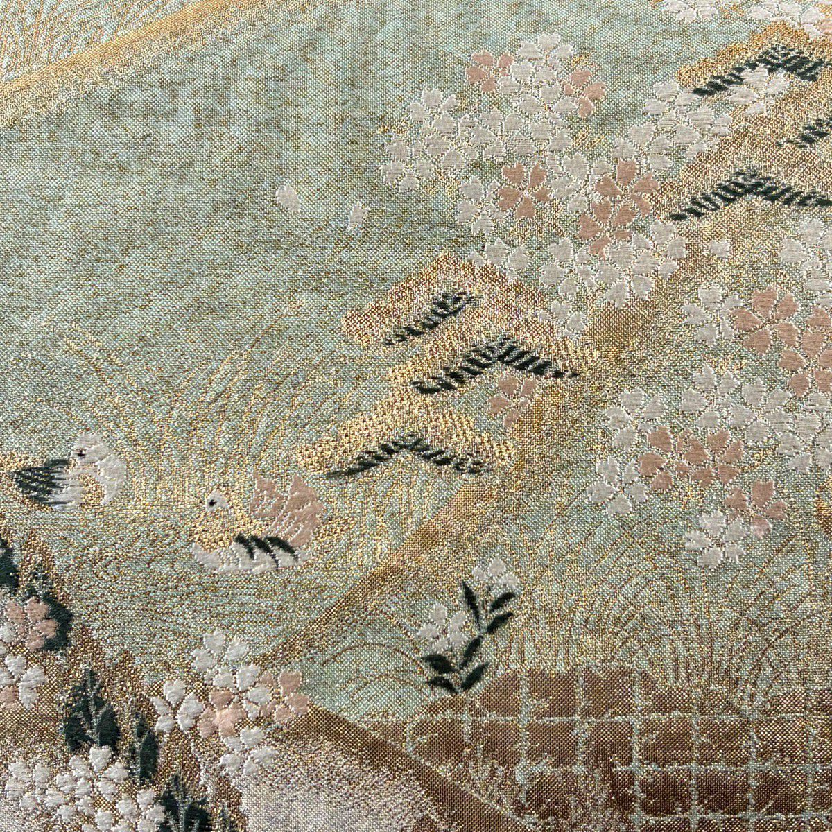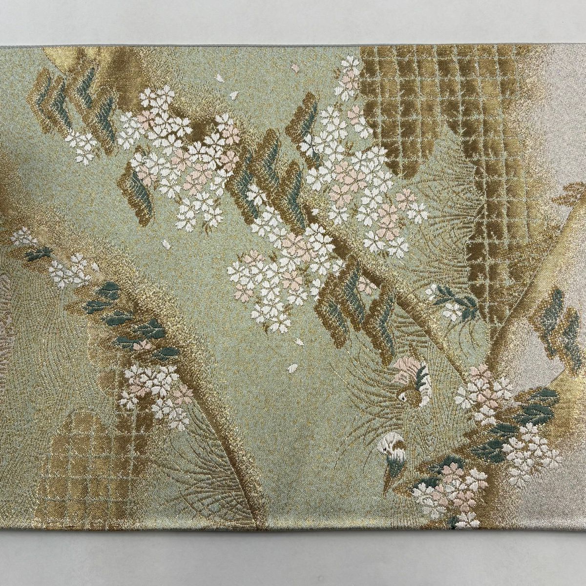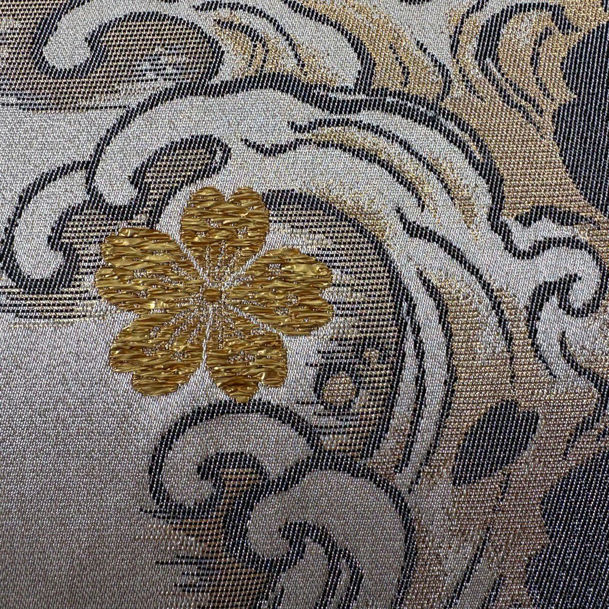 【美品】 袋帯 秀品 桜 有職文様 金糸 箔 金色 六通 正絹
