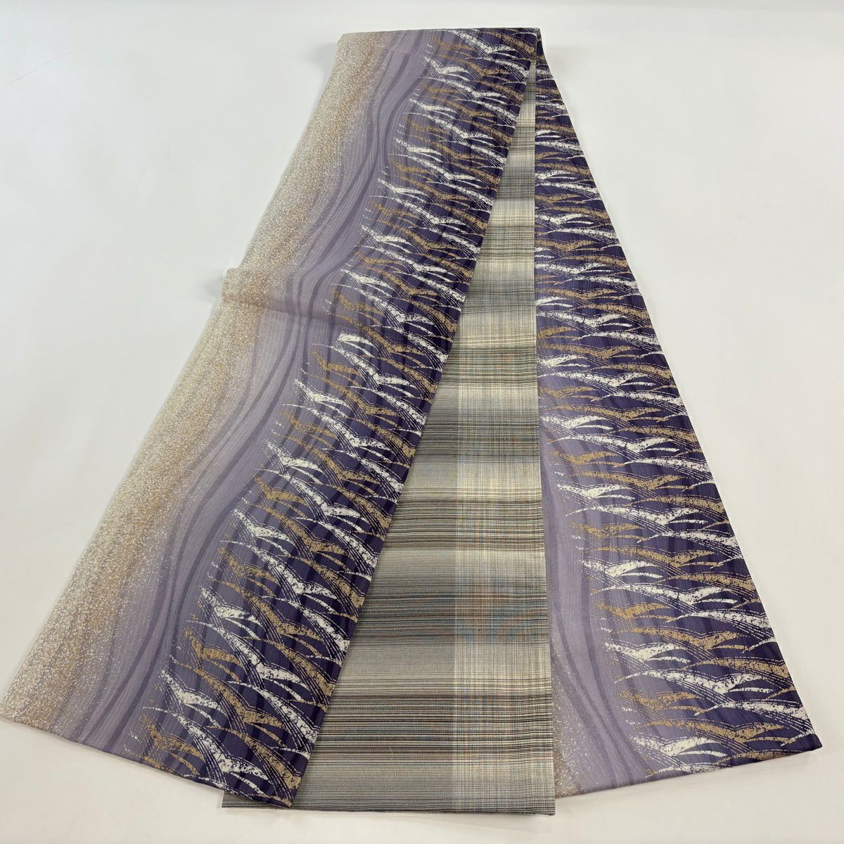 【美品】 袋帯 秀品 ペイズリー 金糸 灰紫 全通 正絹