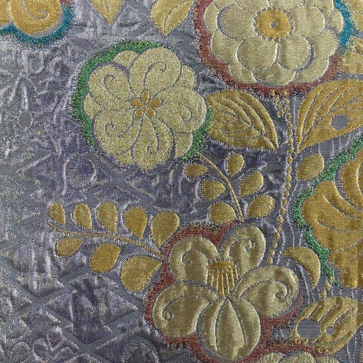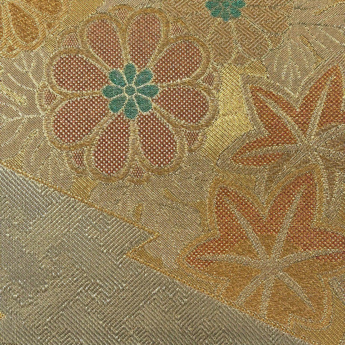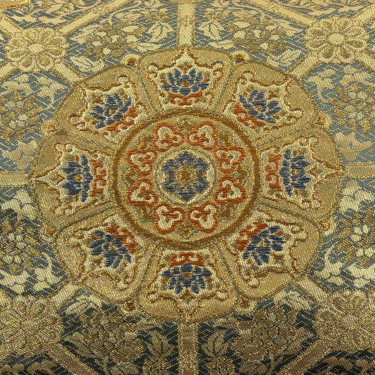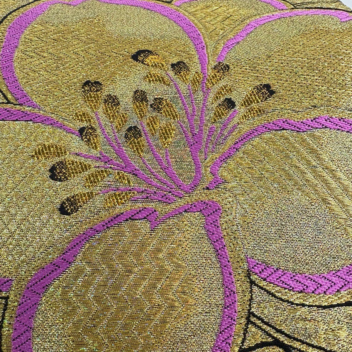 【美品】 袋帯 秀品 蜀江文 花 箔 金銀糸 金色 六通 正絹