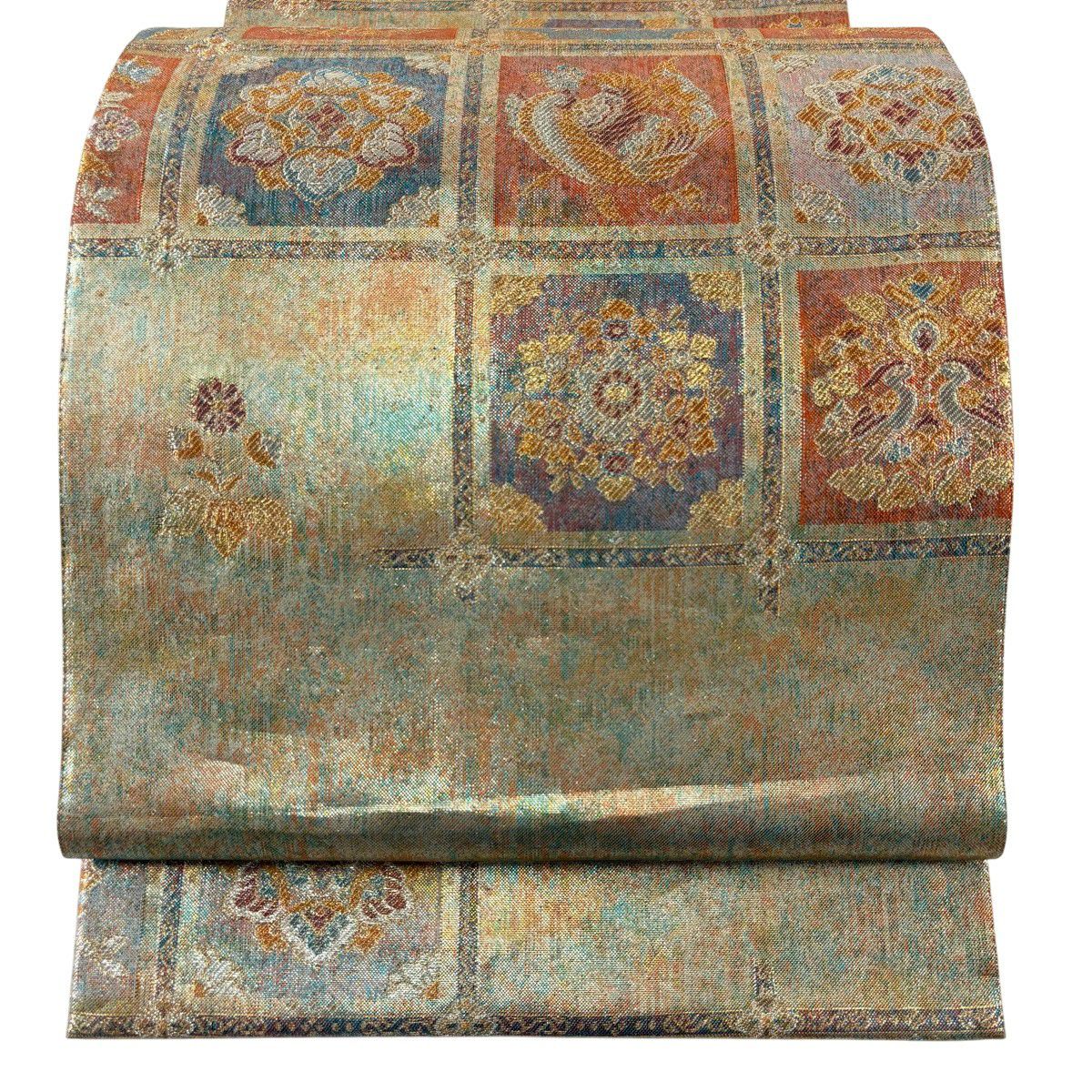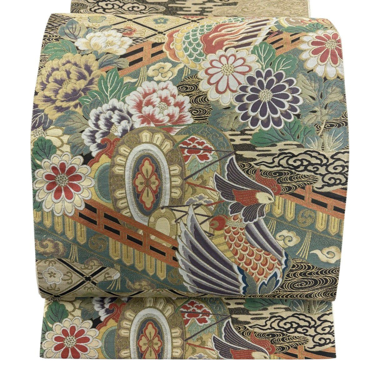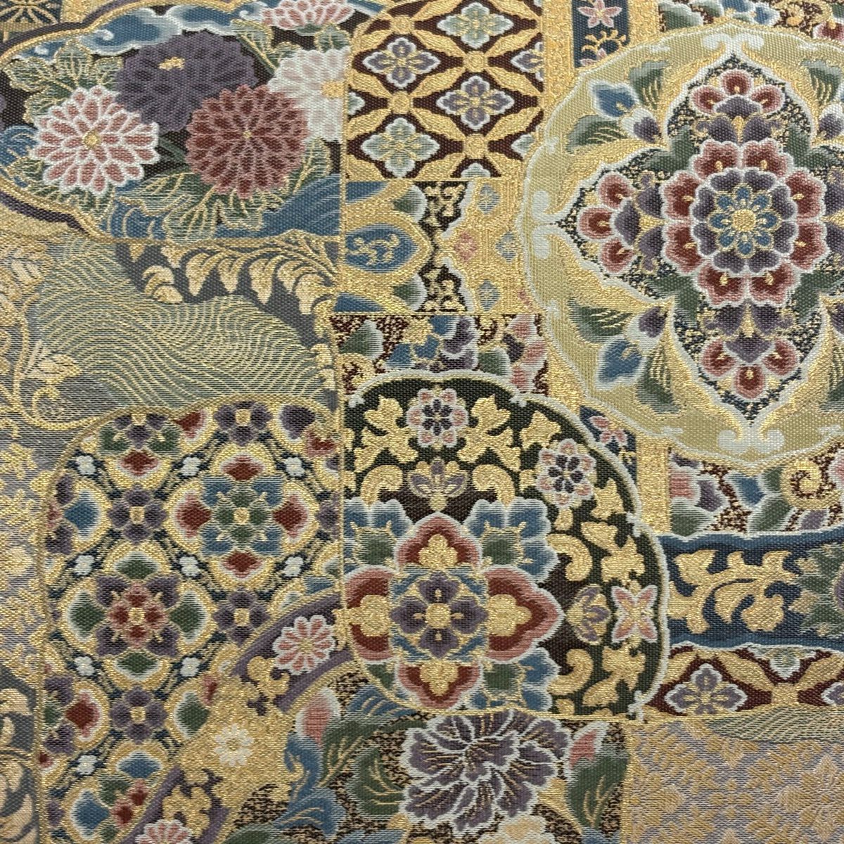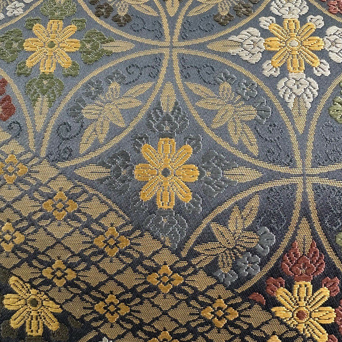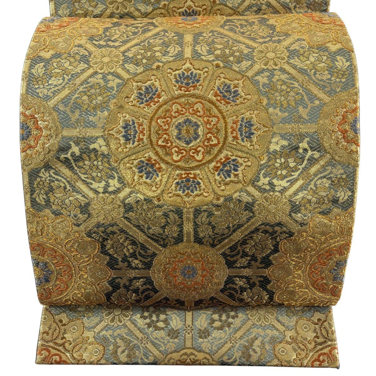【美品】 袋帯 秀品 蜀江文 花 箔 金銀糸 金色 六通 正絹