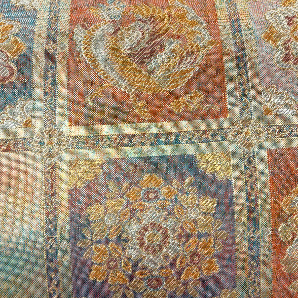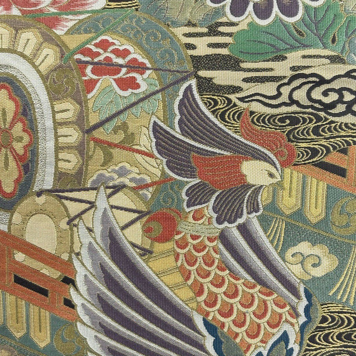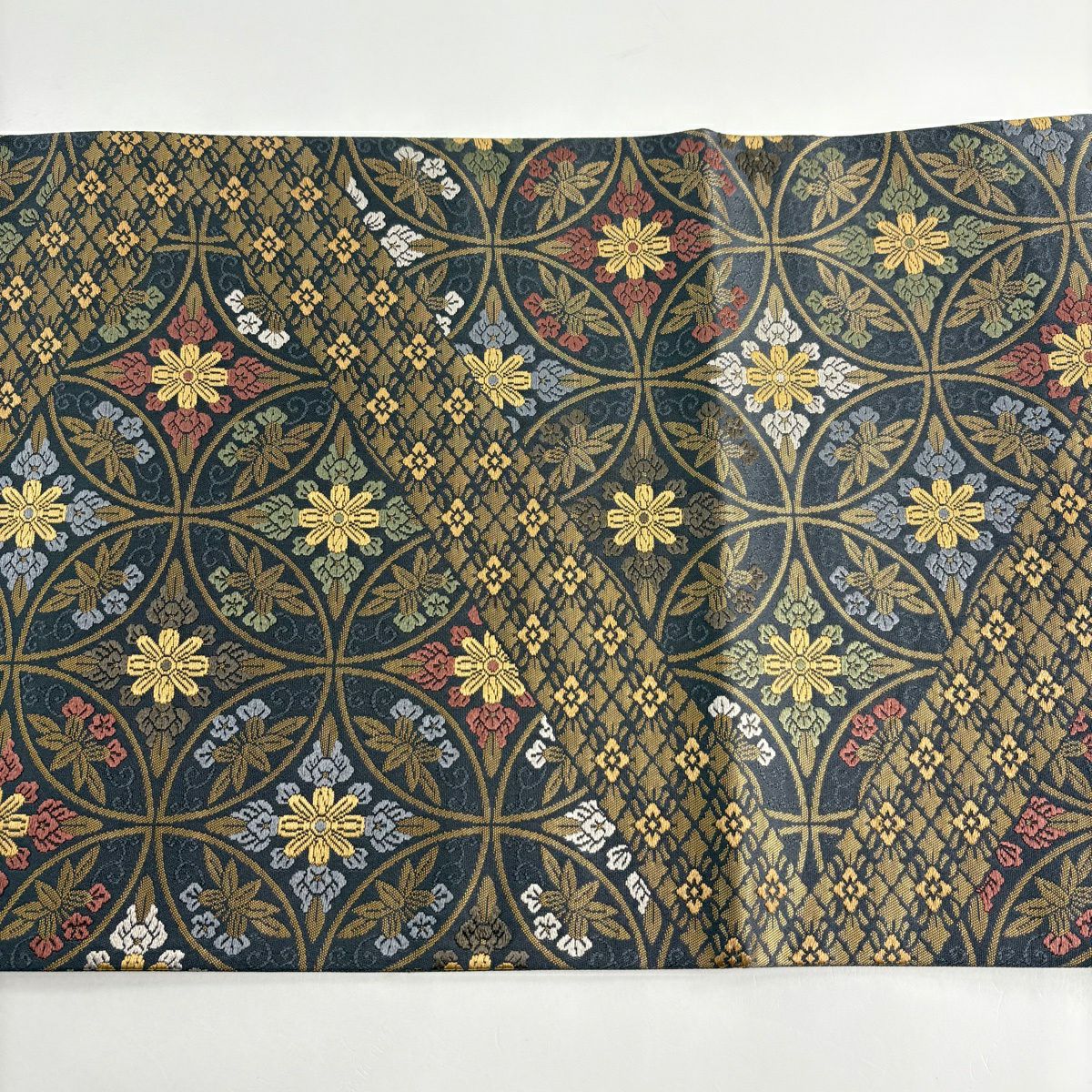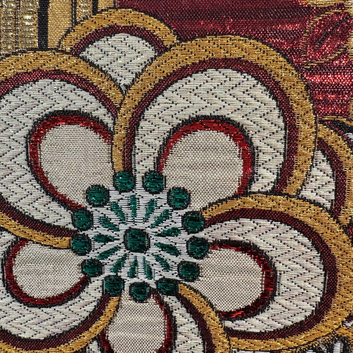 【美品】 袋帯 秀品 蜀江文 花 箔 金銀糸 金色 六通 正絹
