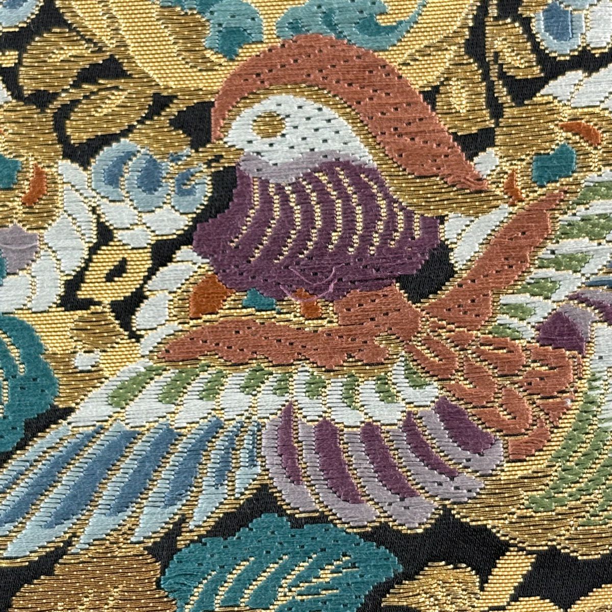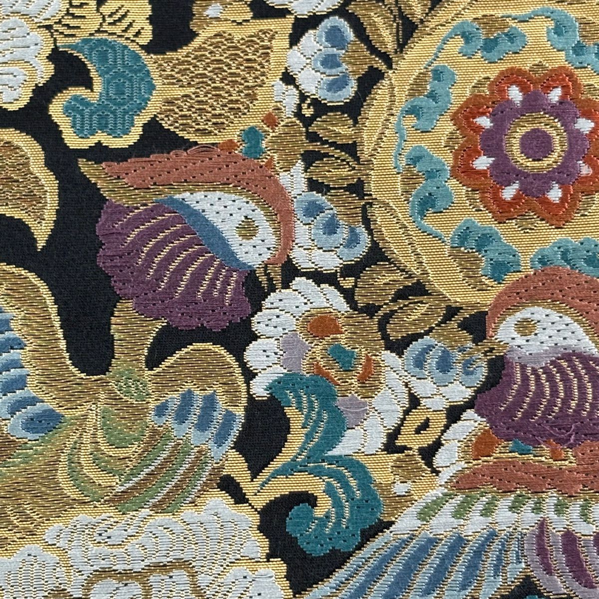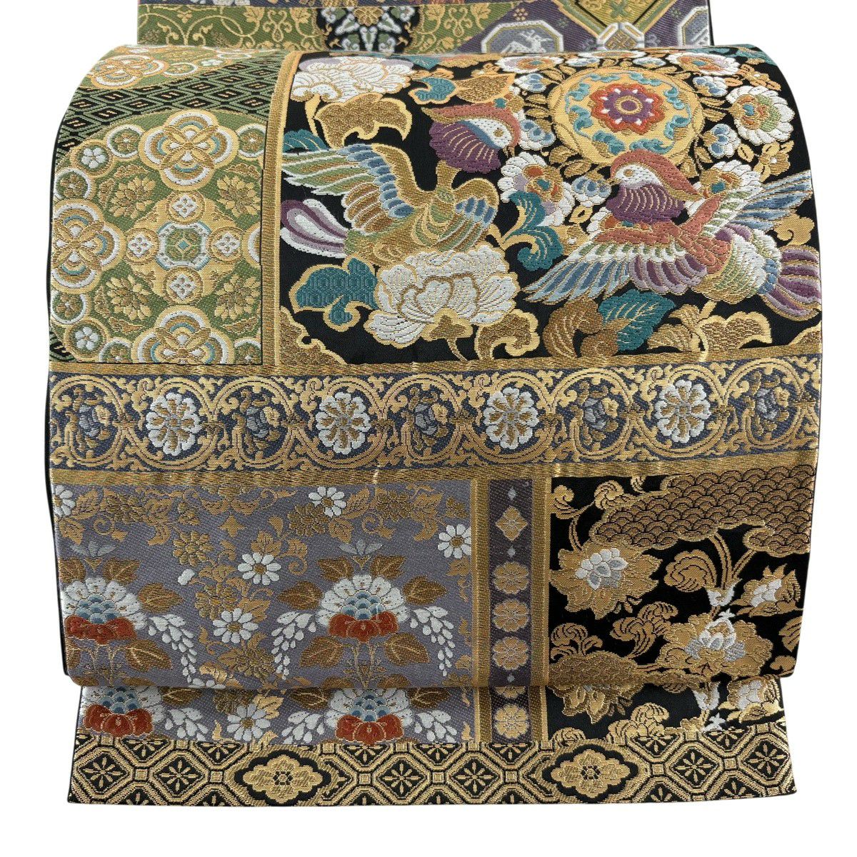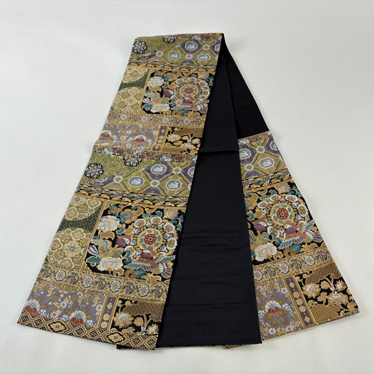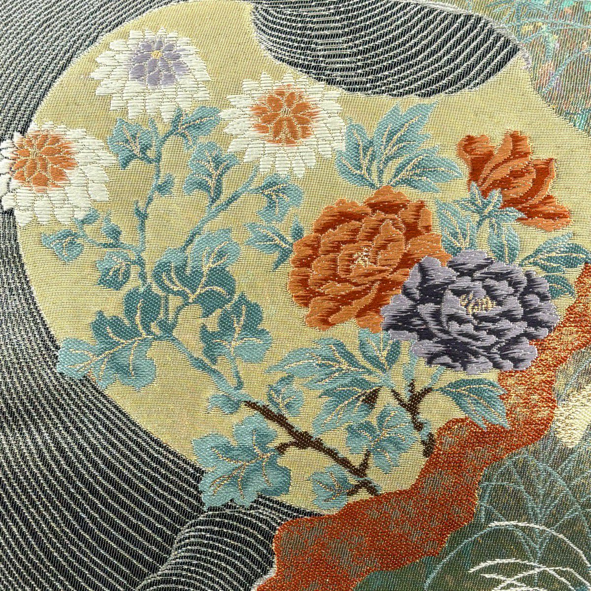 【美品】 袋帯 秀品 華文 花鳥 刺繍 金糸 黒 六通 正絹