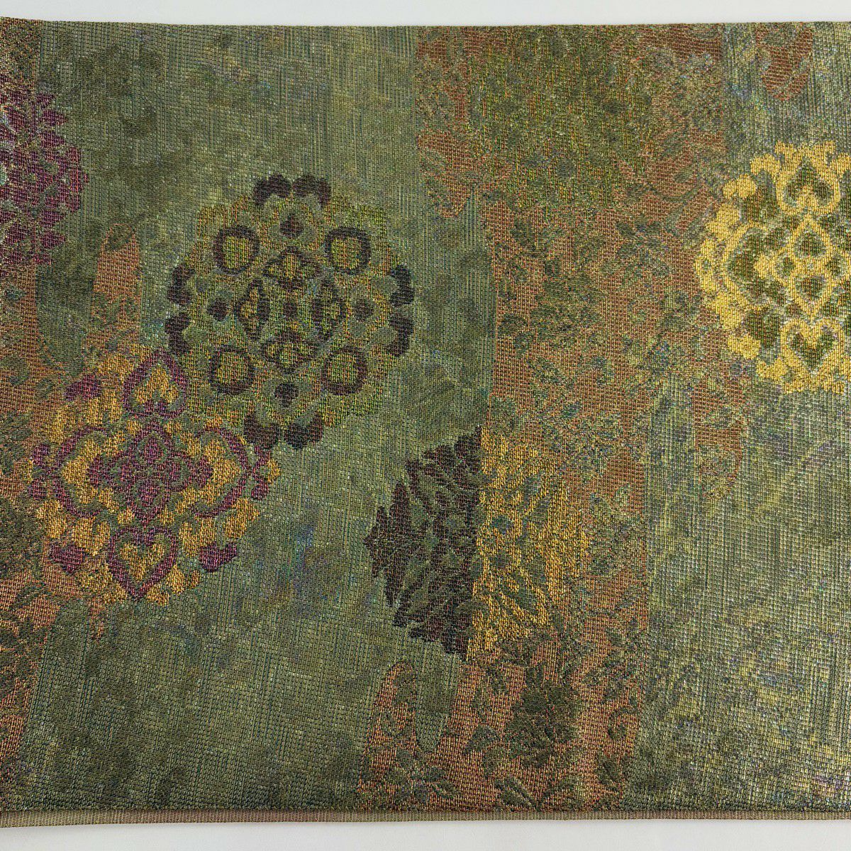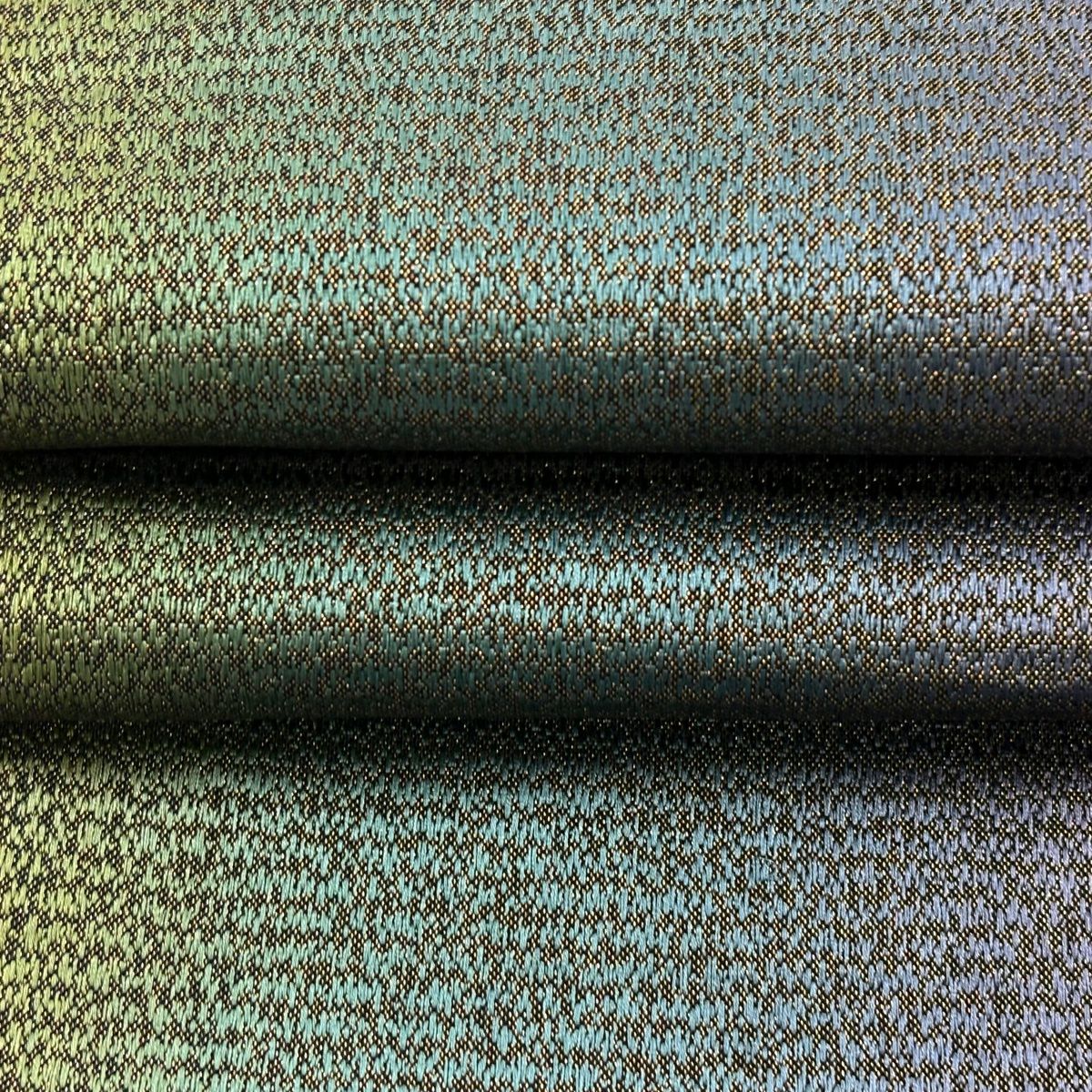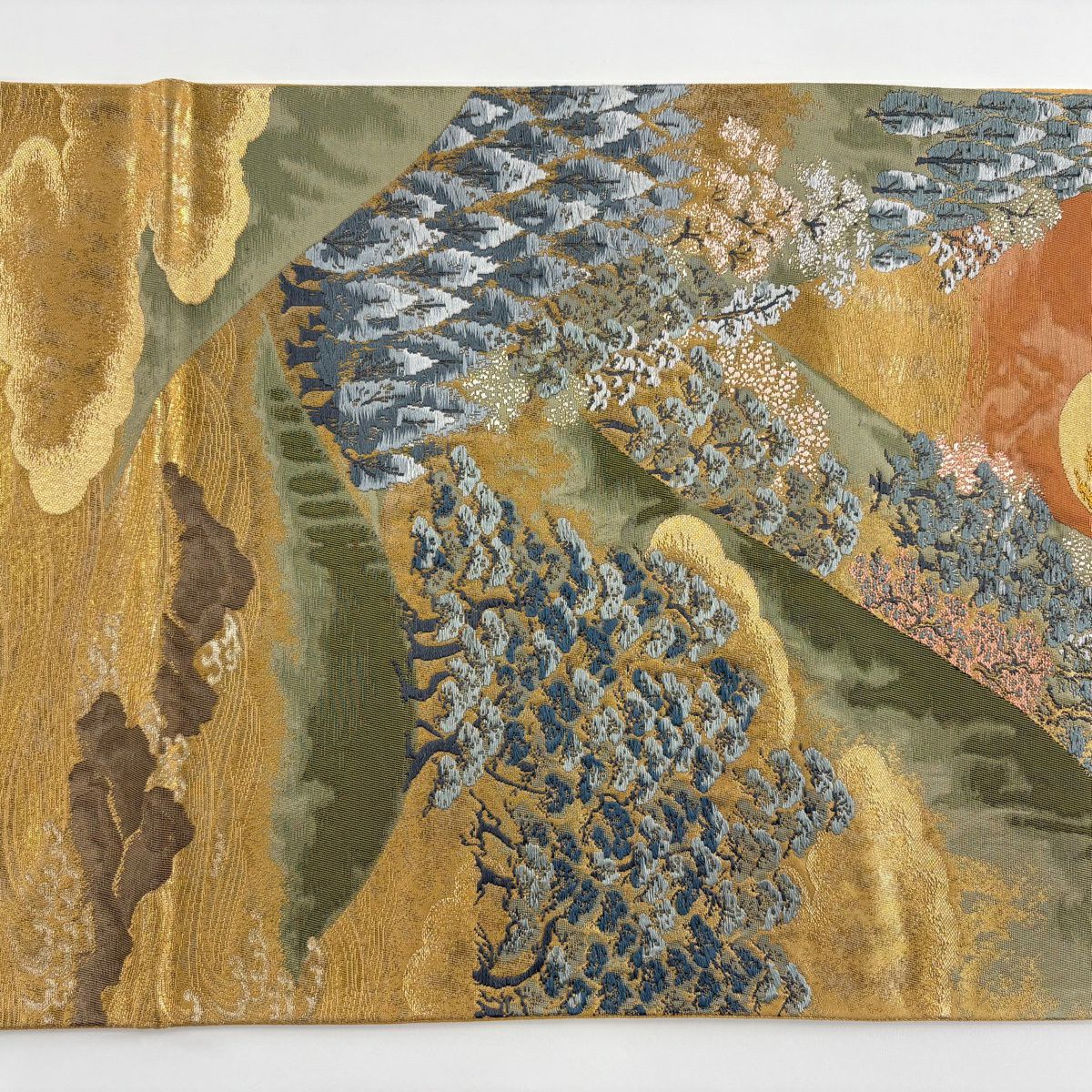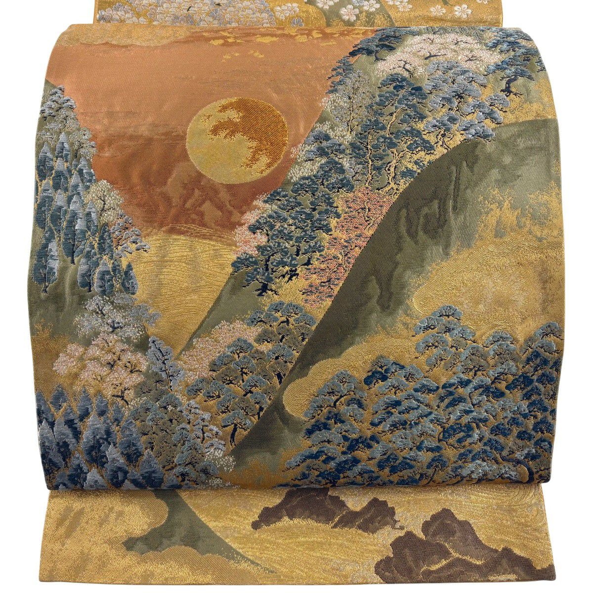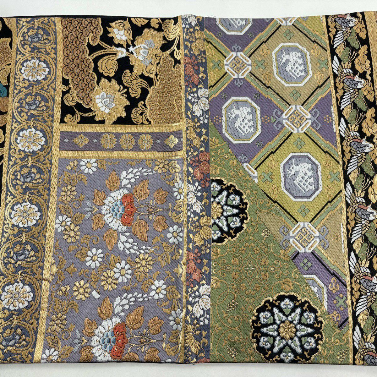 【美品】 袋帯 秀品 華文 霞 箔 金糸 茶緑色 六通 正絹