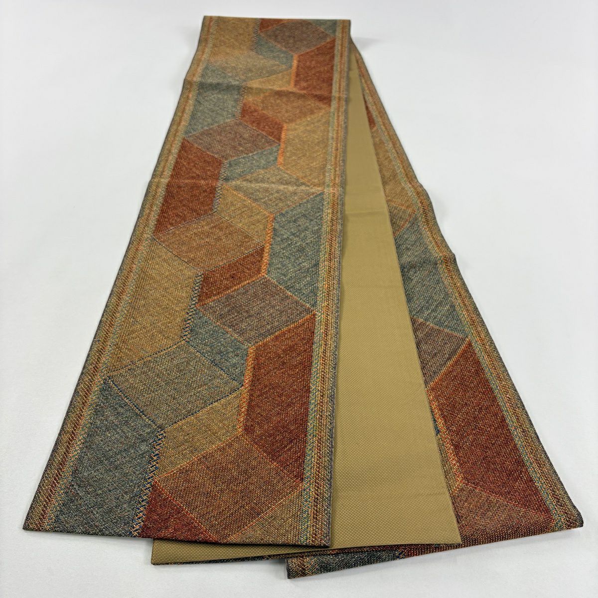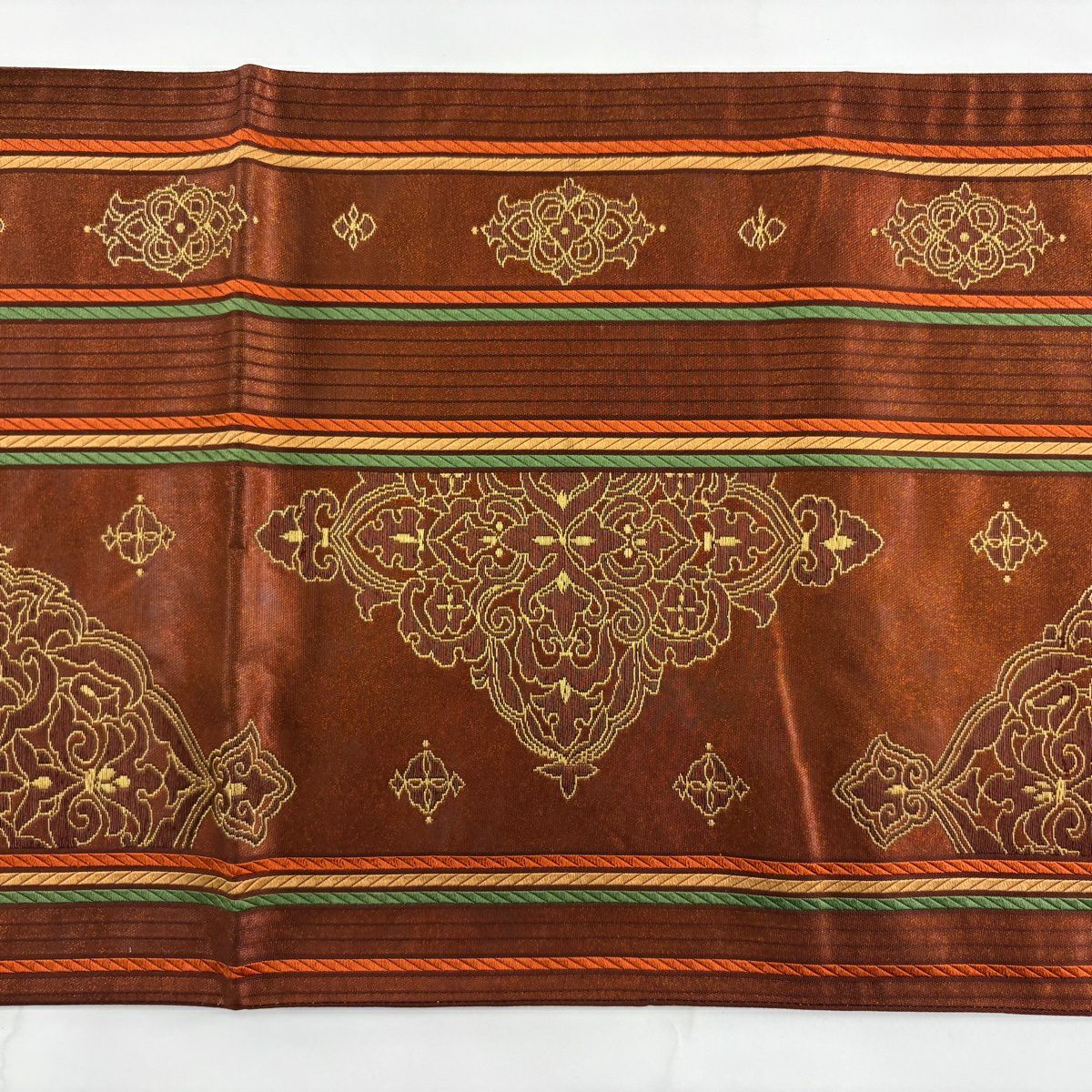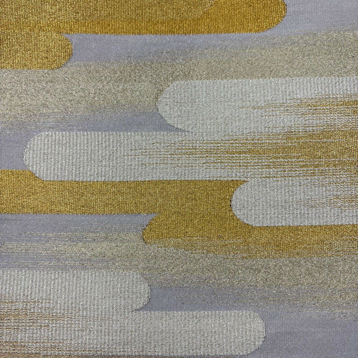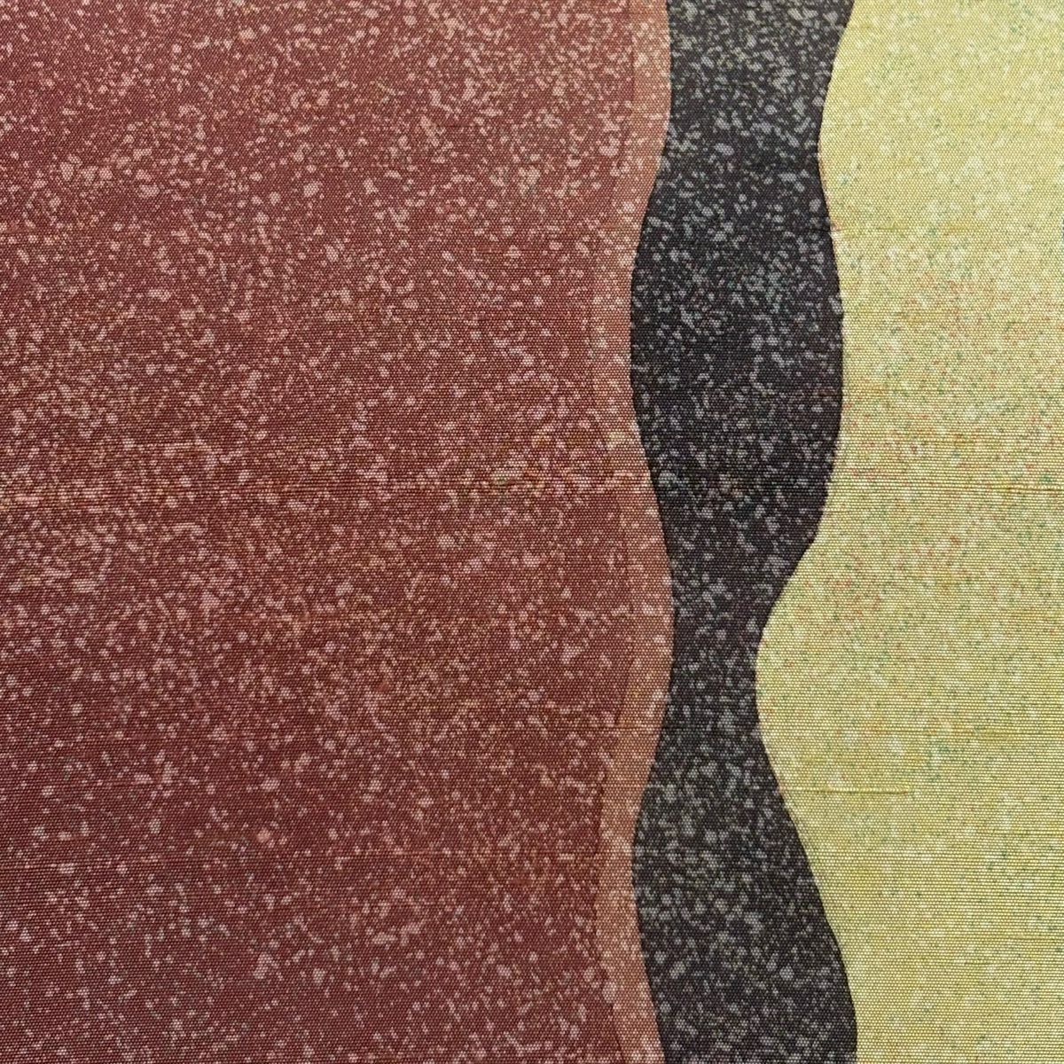 【美品】 袋帯 秀品 幾何学模様 金糸 山吹茶色 全通 正絹