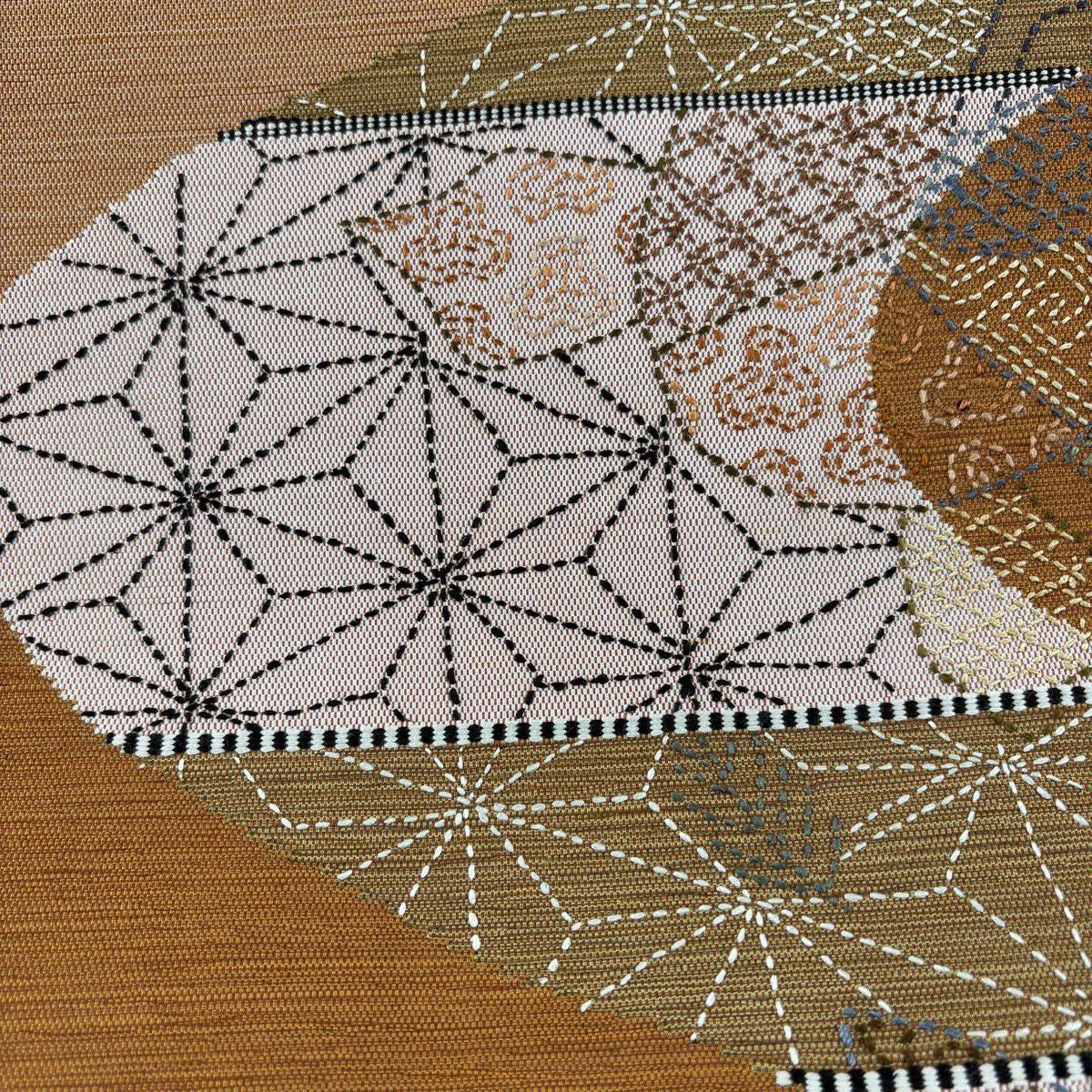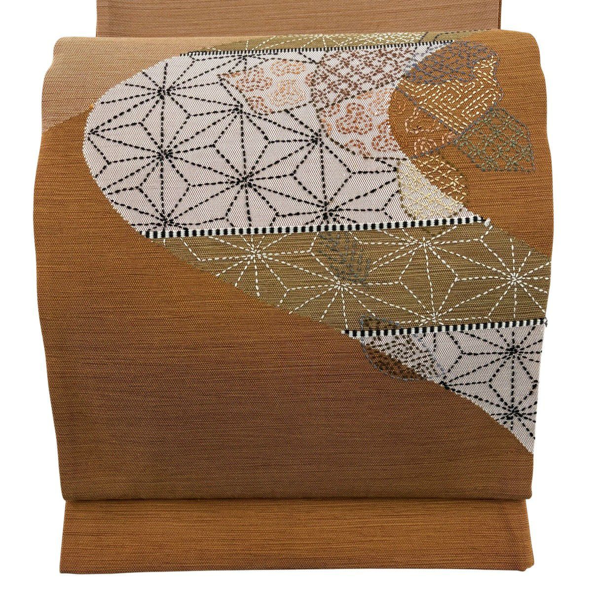 【美品】 袋帯 秀品 麻の葉 有職文様 茶色 お太鼓柄 正絹