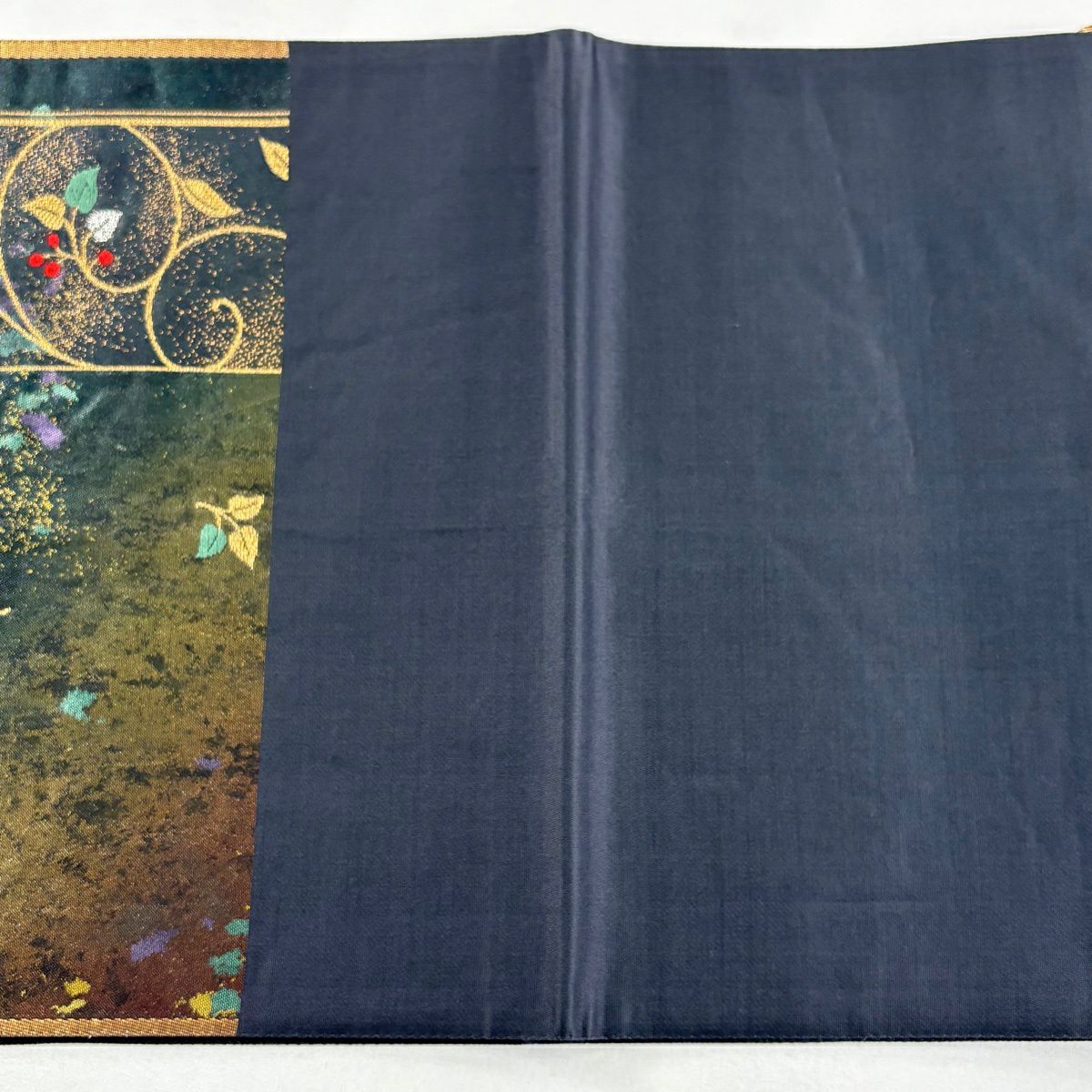 【美品】 袋帯 秀品 唐草 花鳥 金糸 箔 深緑 六通 正絹