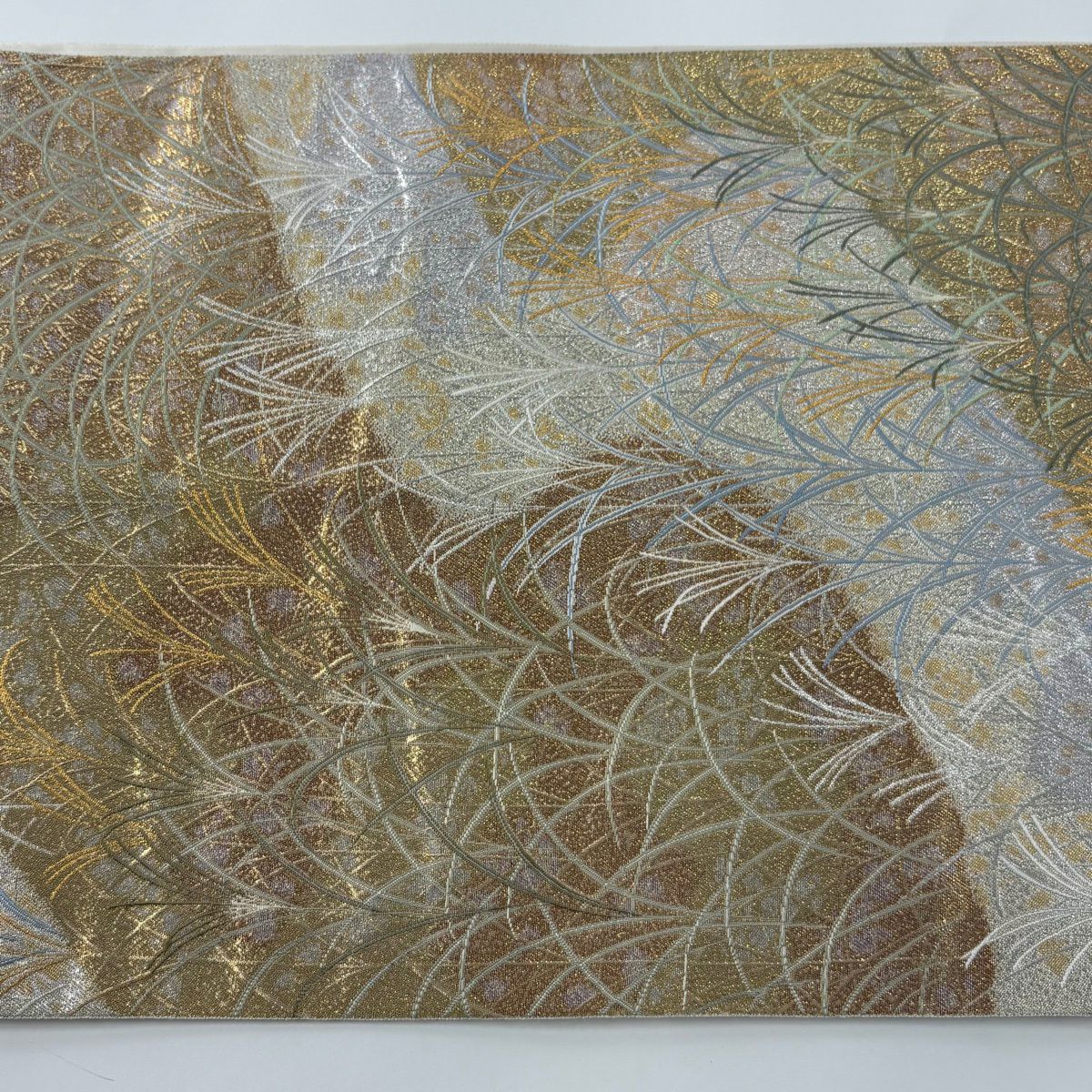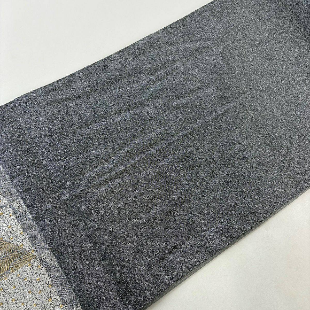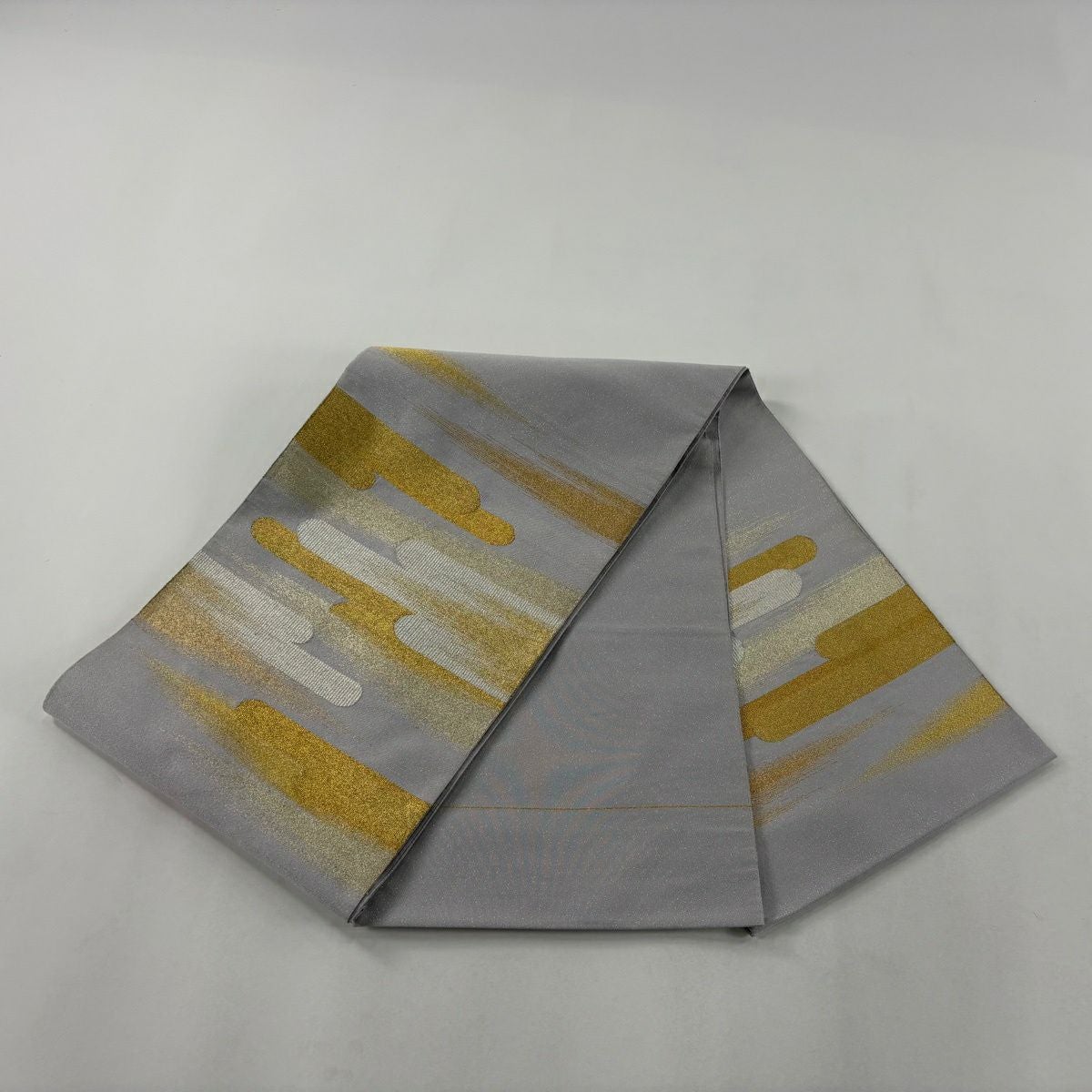 名古屋帯 秀品 八寸名古屋帯 松葉仕立て 幾何学 金糸 灰白 正絹