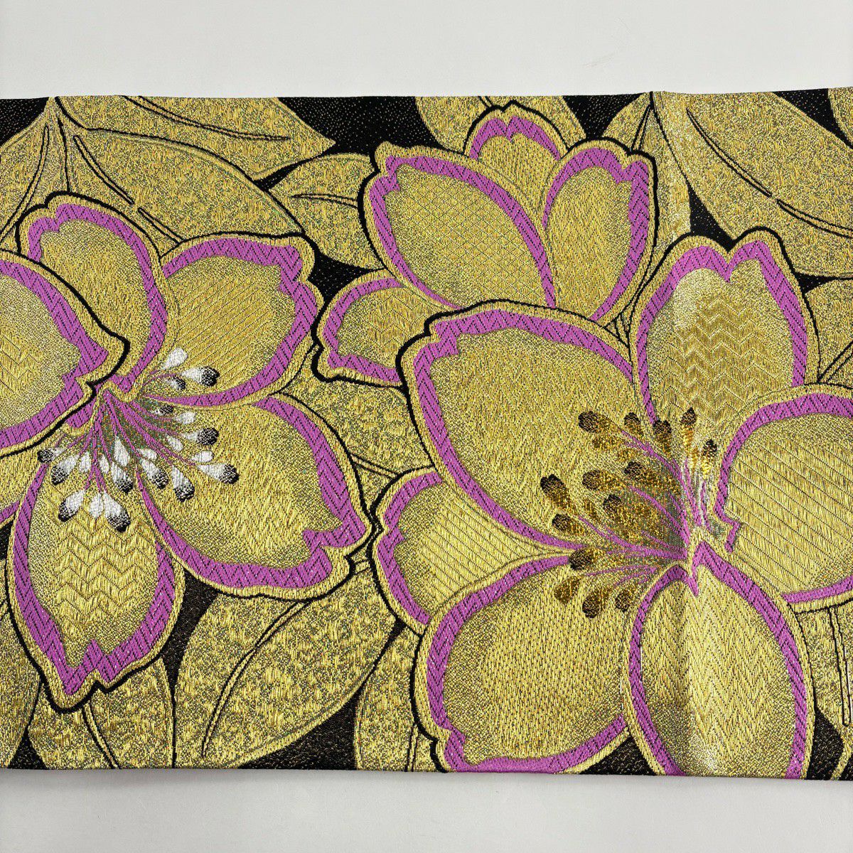【美品】 袋帯 秀品 振袖向き 桜 金糸 箔 金色 六通 正絹