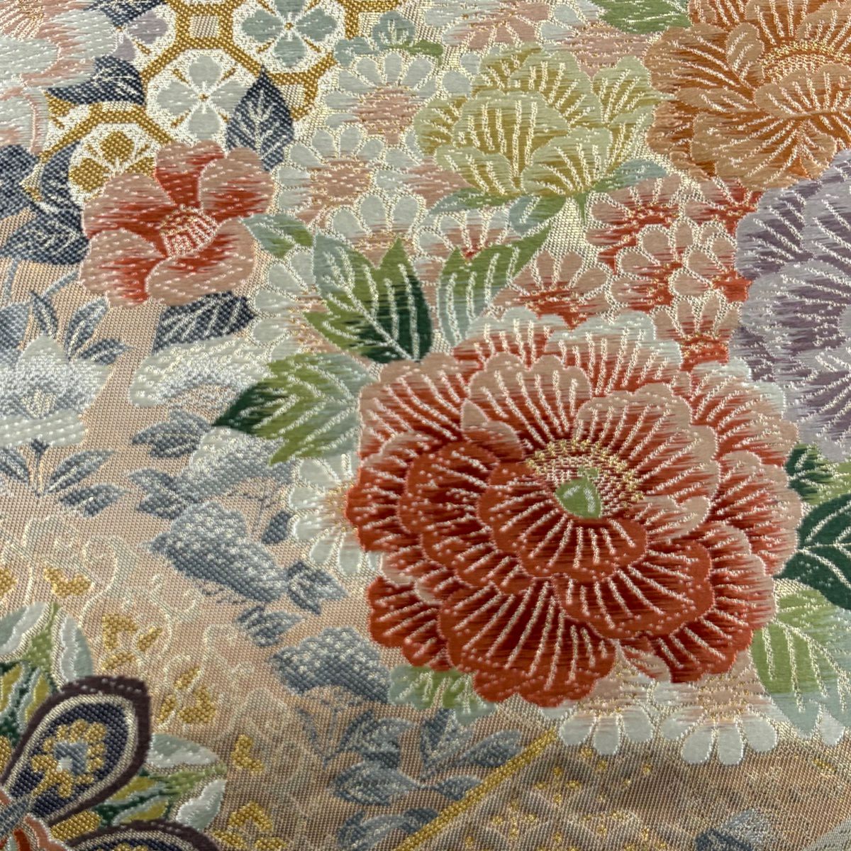 【美品】 袋帯 秀品 松梅 菊 金糸 オレンジ 六通 正絹