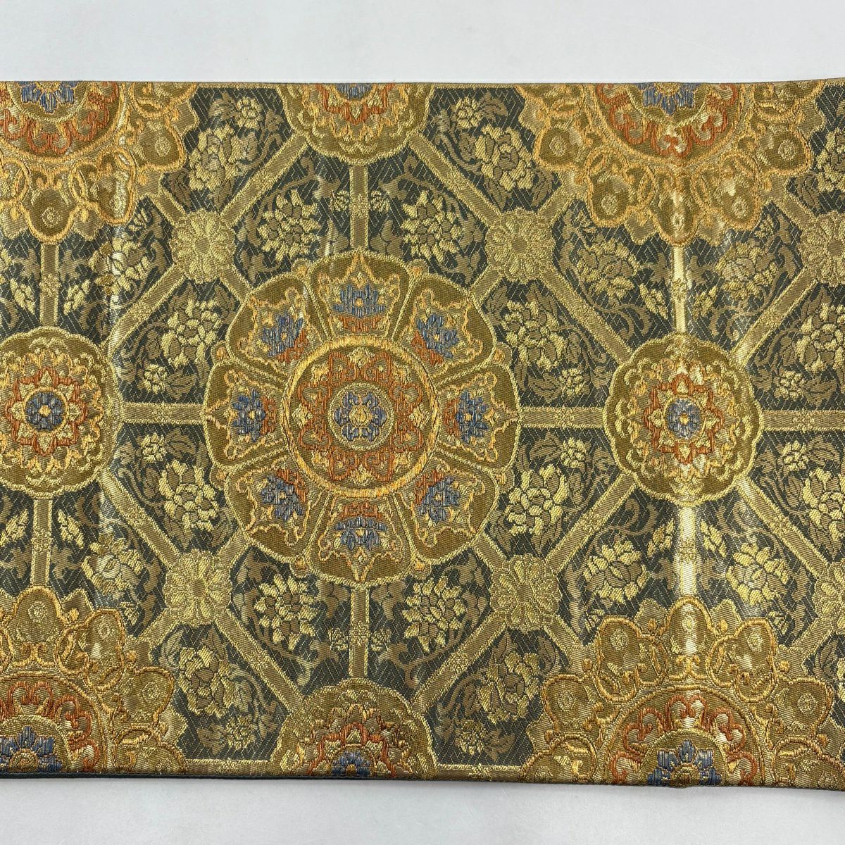 【美品】 袋帯 秀品 格天井 華文 金糸 箔 金色 六通 正絹
