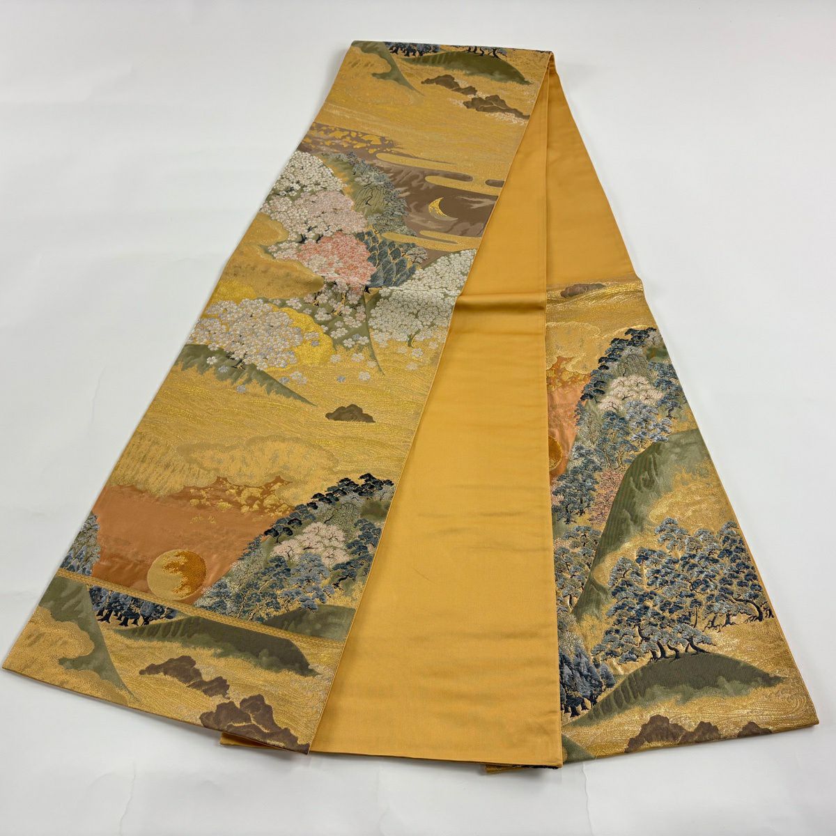 【美品】 袋帯 秀品 笠松 桜 箔 金糸 金茶 お太鼓柄 正絹
