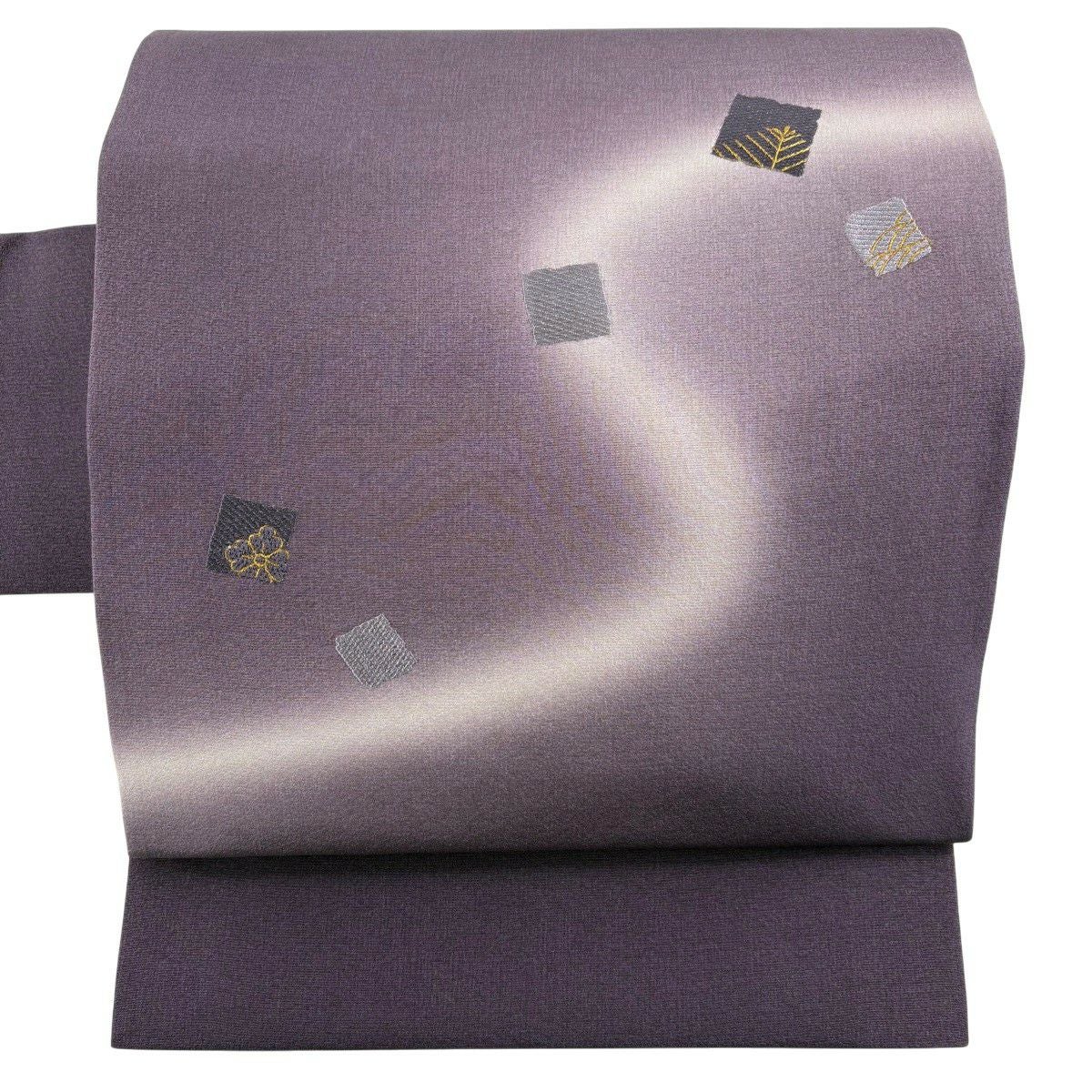 【美品】 名古屋帯 秀品 幾何学模様 銀糸 金銀彩 紫 正絹
