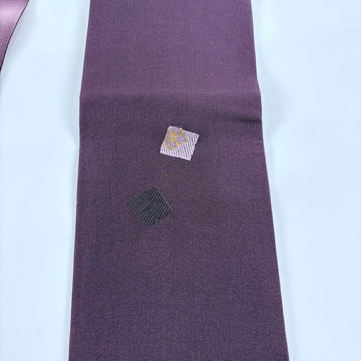 【美品】 袋帯 秀品 草花 松梅 刺繍 金糸 紫 六通 正絹