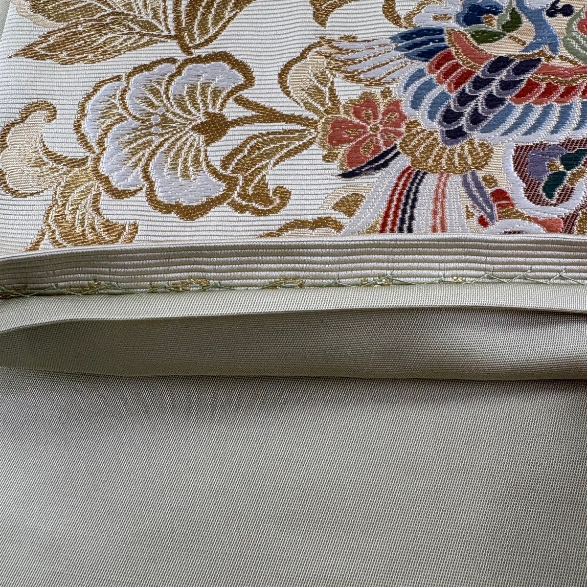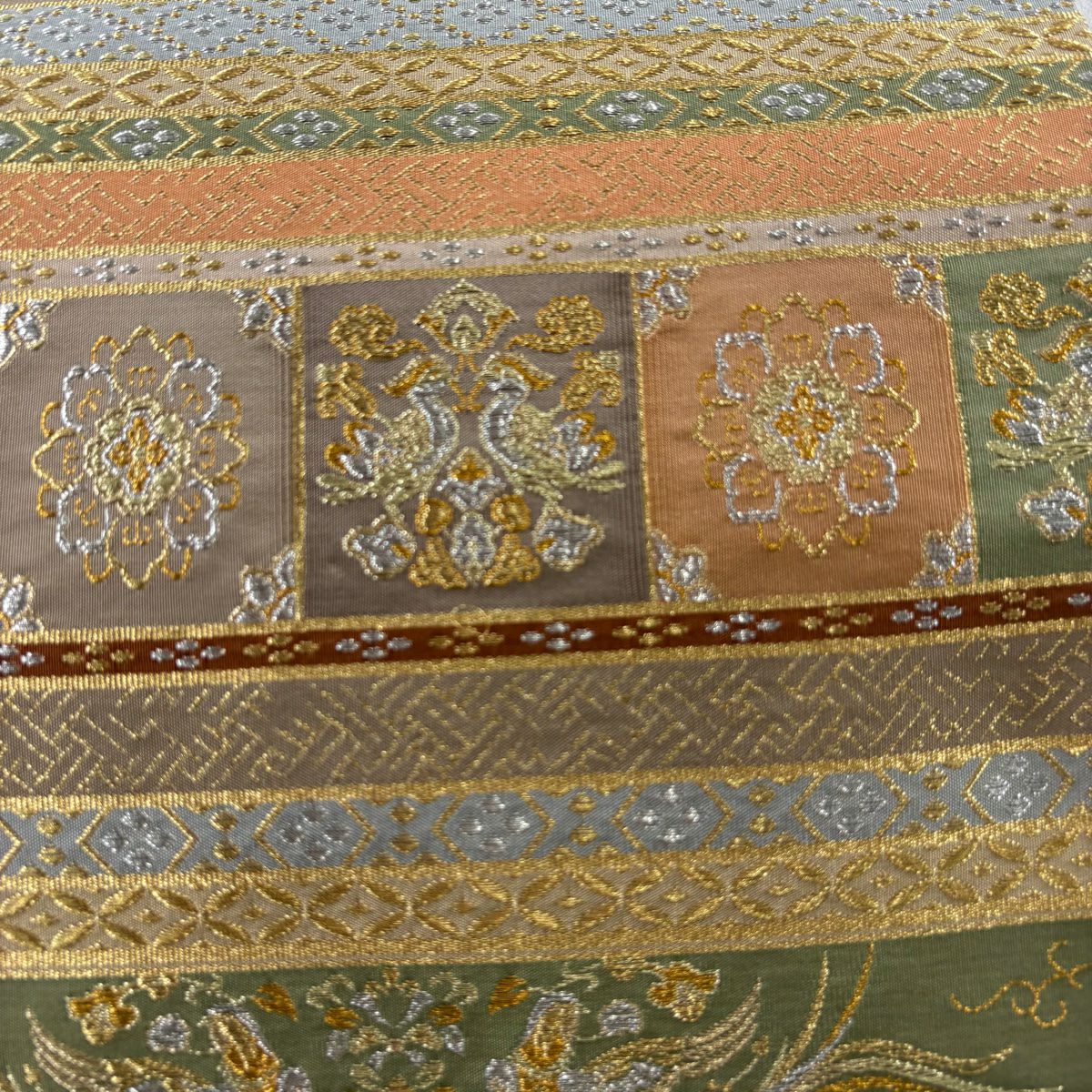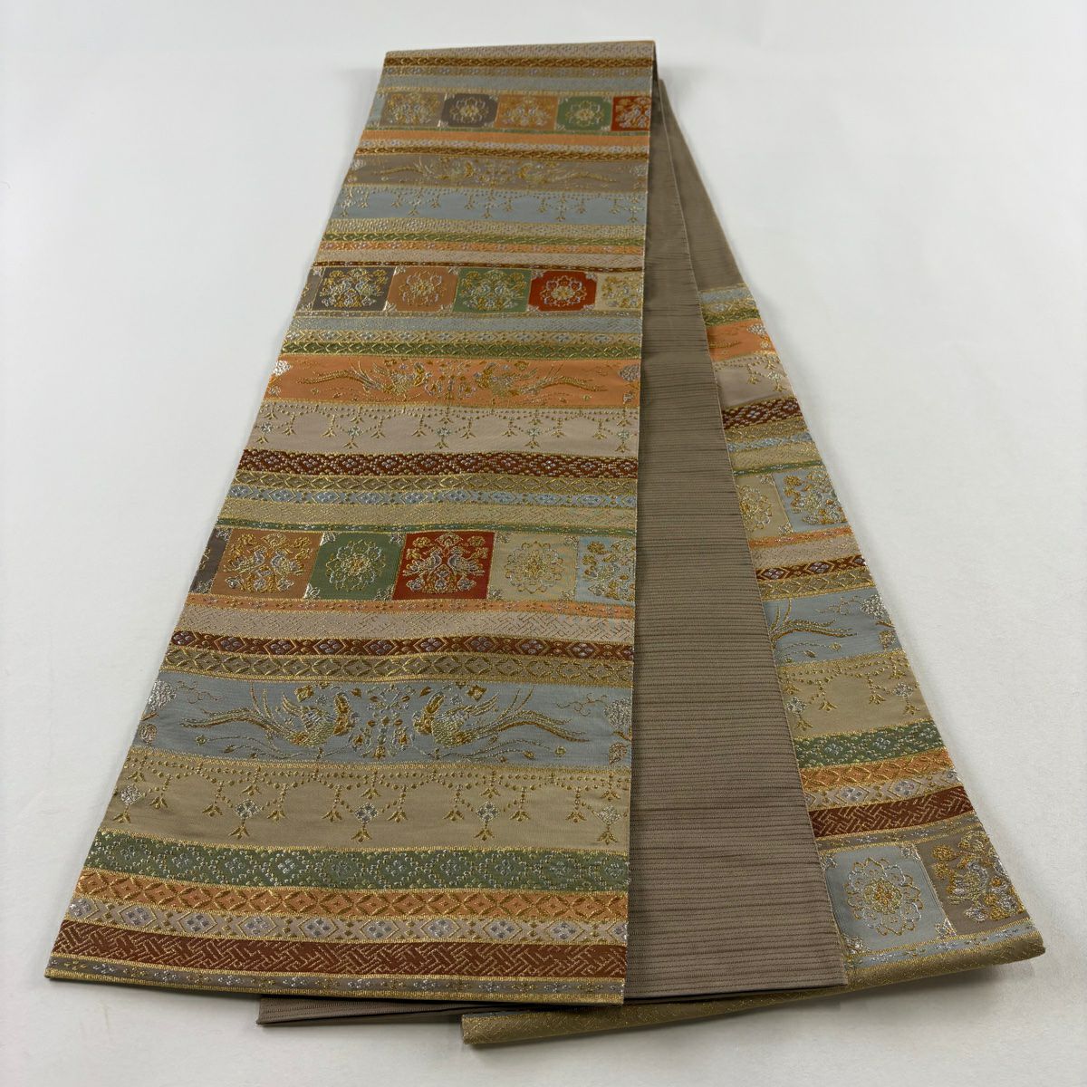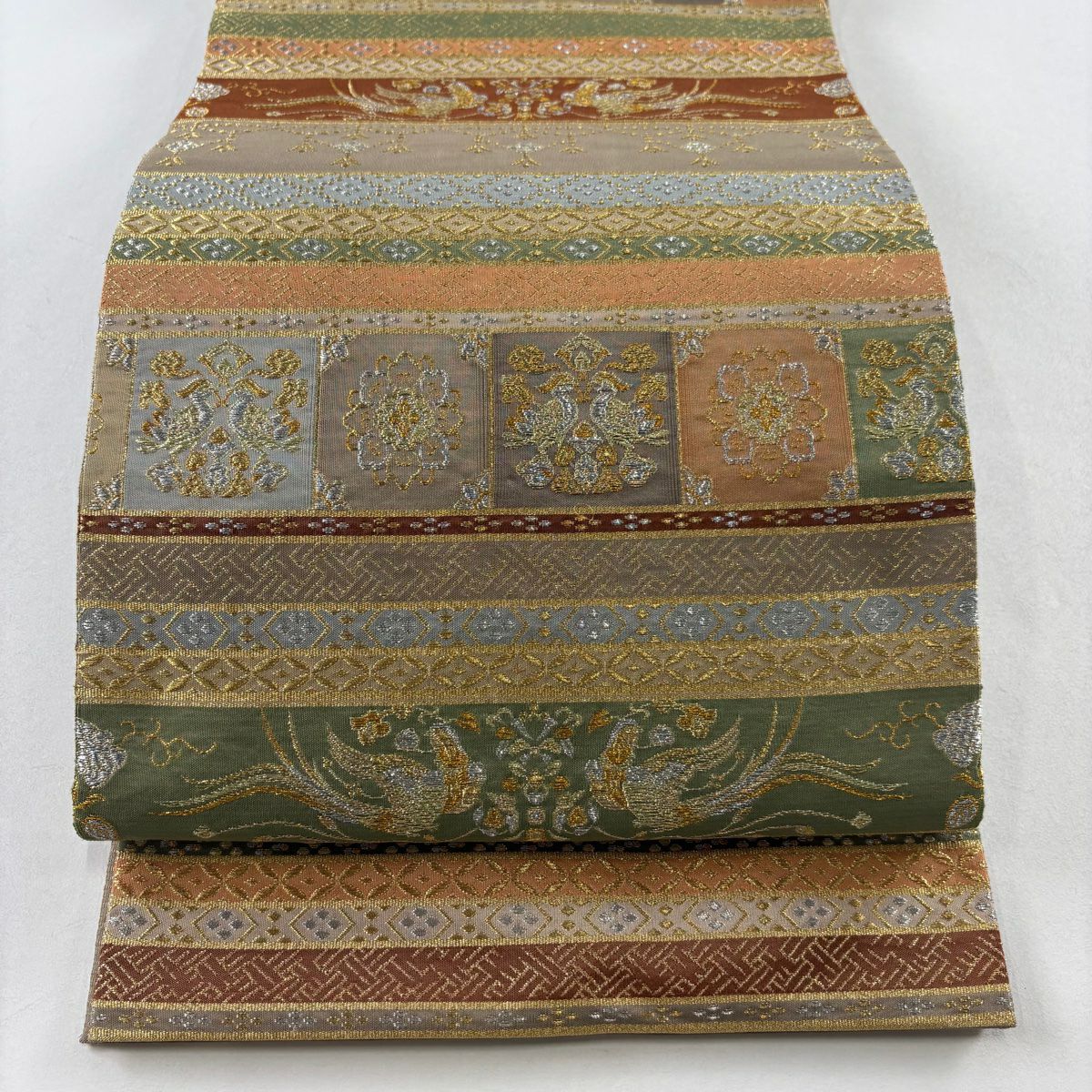 【美品】 袋帯 秀品 華文 鳳凰 金糸 箔 抹茶色 六通 正絹