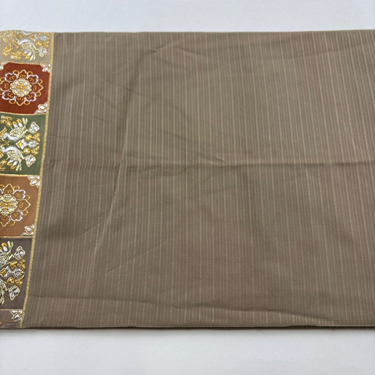 【在庫一掃】 【美品】 袋帯 秀品 縞 箔 茶緑色 全通 正絹