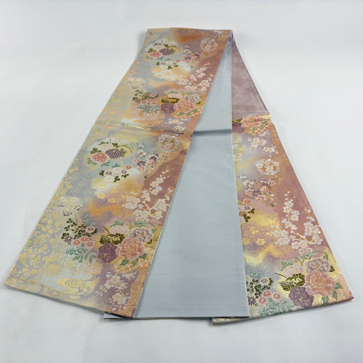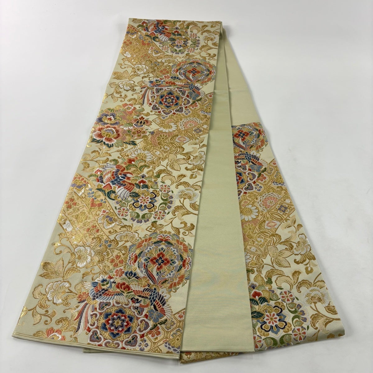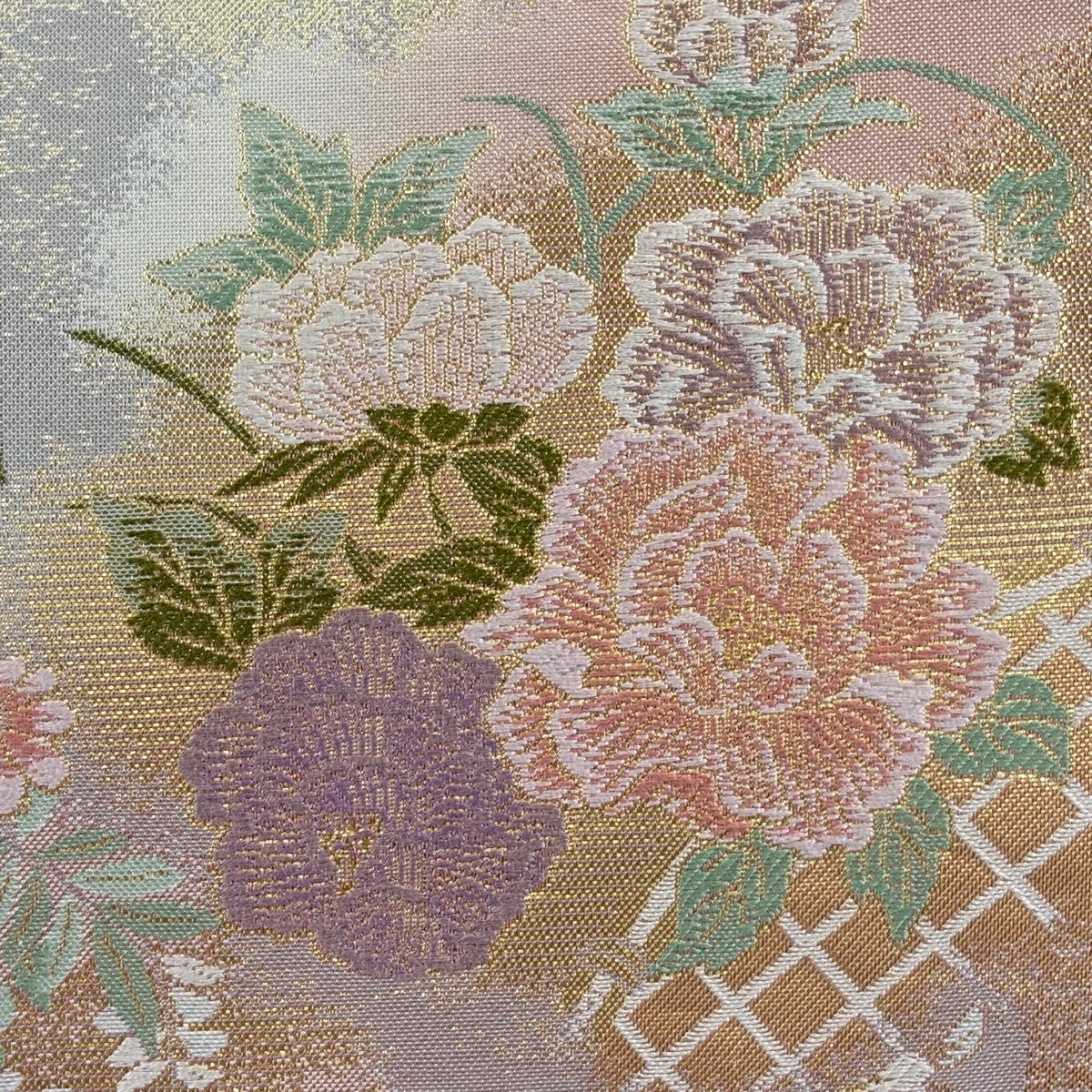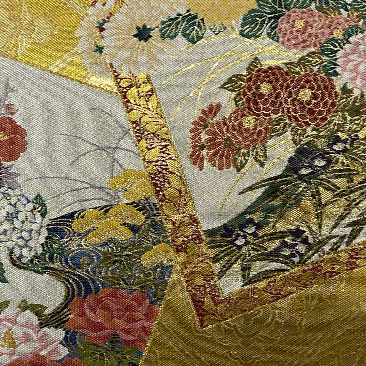 袋帯 美品 秀品 色紙 草花 金銀糸 箔 金色 お太鼓柄 正絹