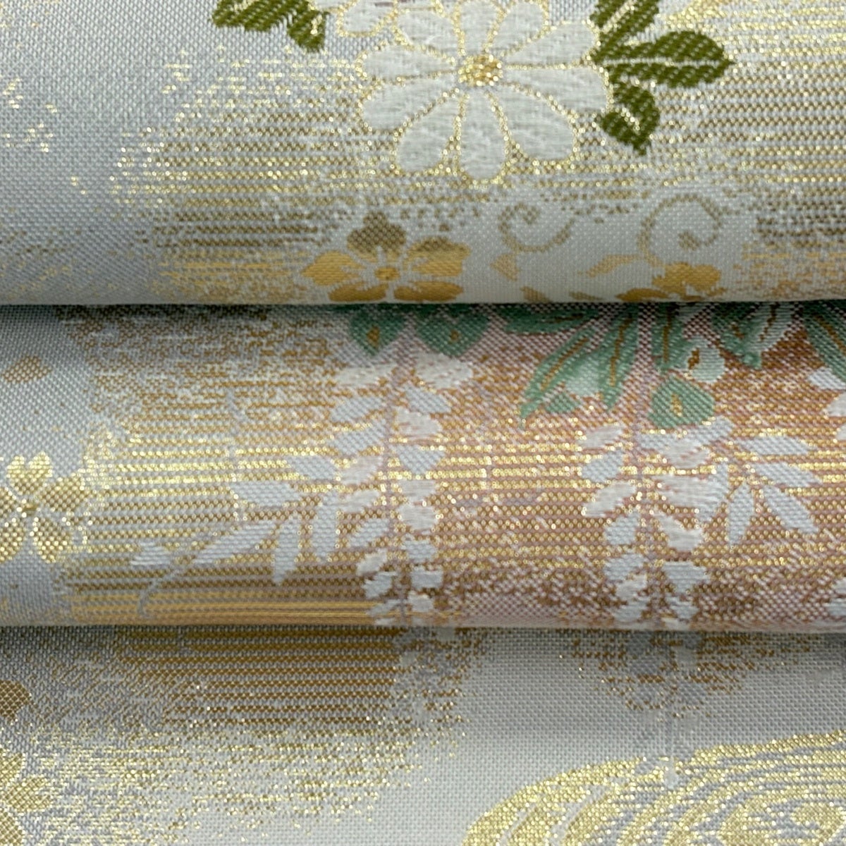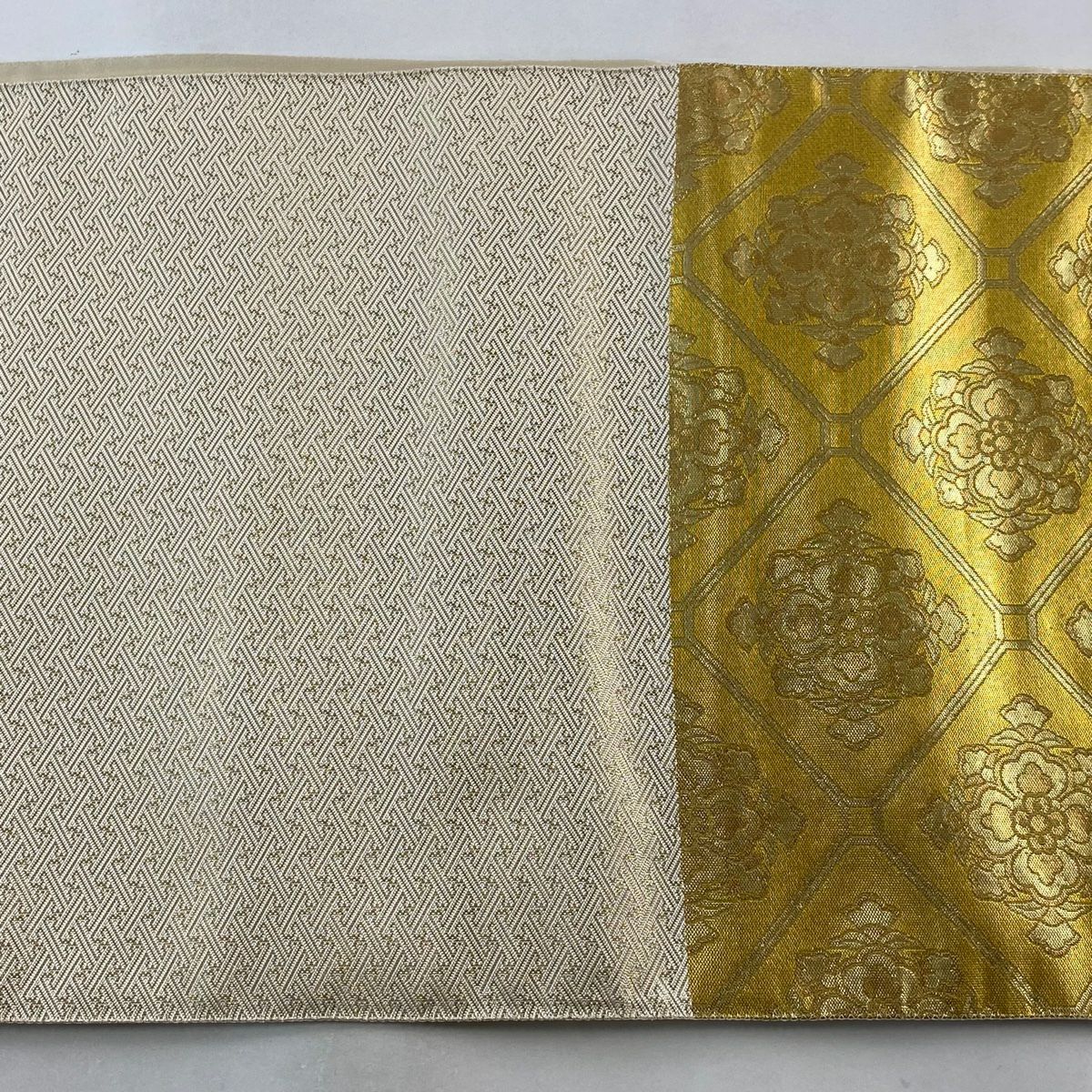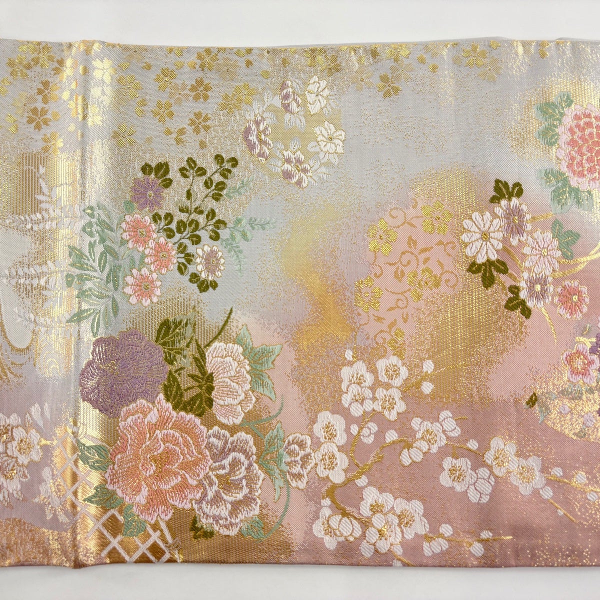【在庫一掃】 袋帯 秀品 桜 かのこ柄 箔 金色 六通 正絹