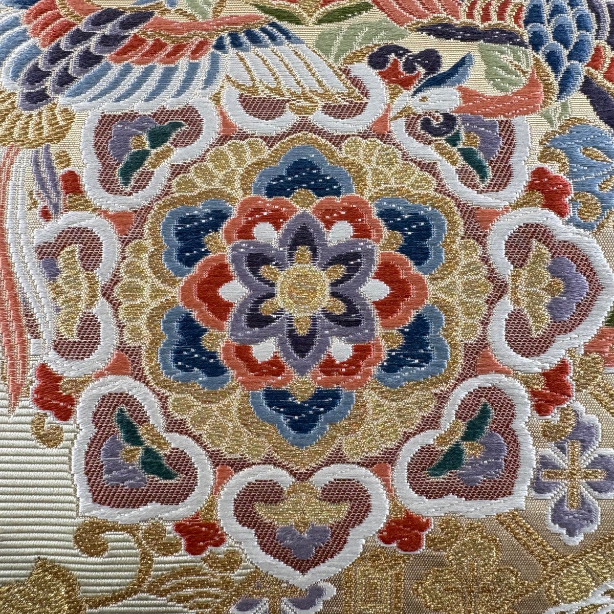 【在庫一掃】 袋帯 秀品 鶴 桐 金糸 刺繍 金色 六通 正絹