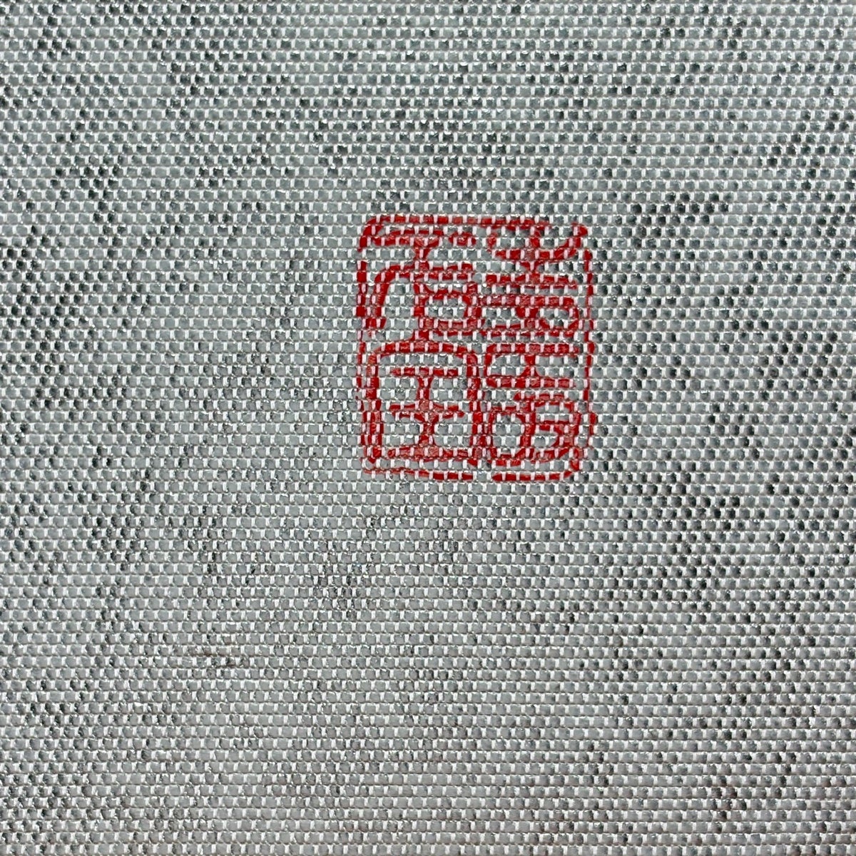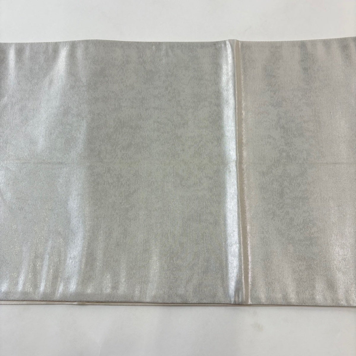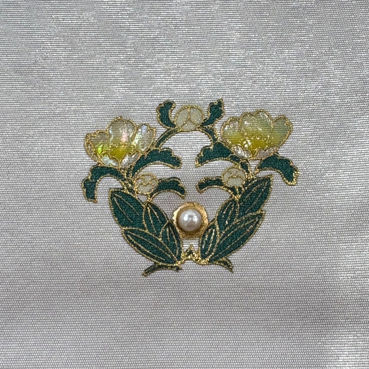 袋帯 秀品 ワンポイント柄 草花 螺鈿 箔 灰色 六通 正絹