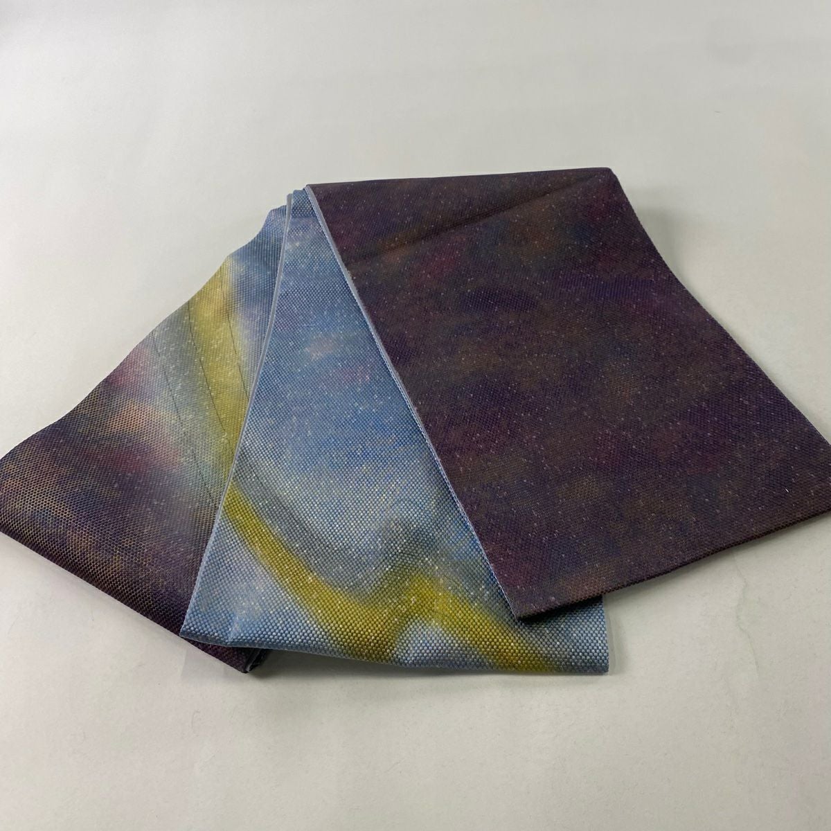 袋帯 美品 秀品 幾何学 ぼかし柄 箔 水色 お太鼓柄 正絹