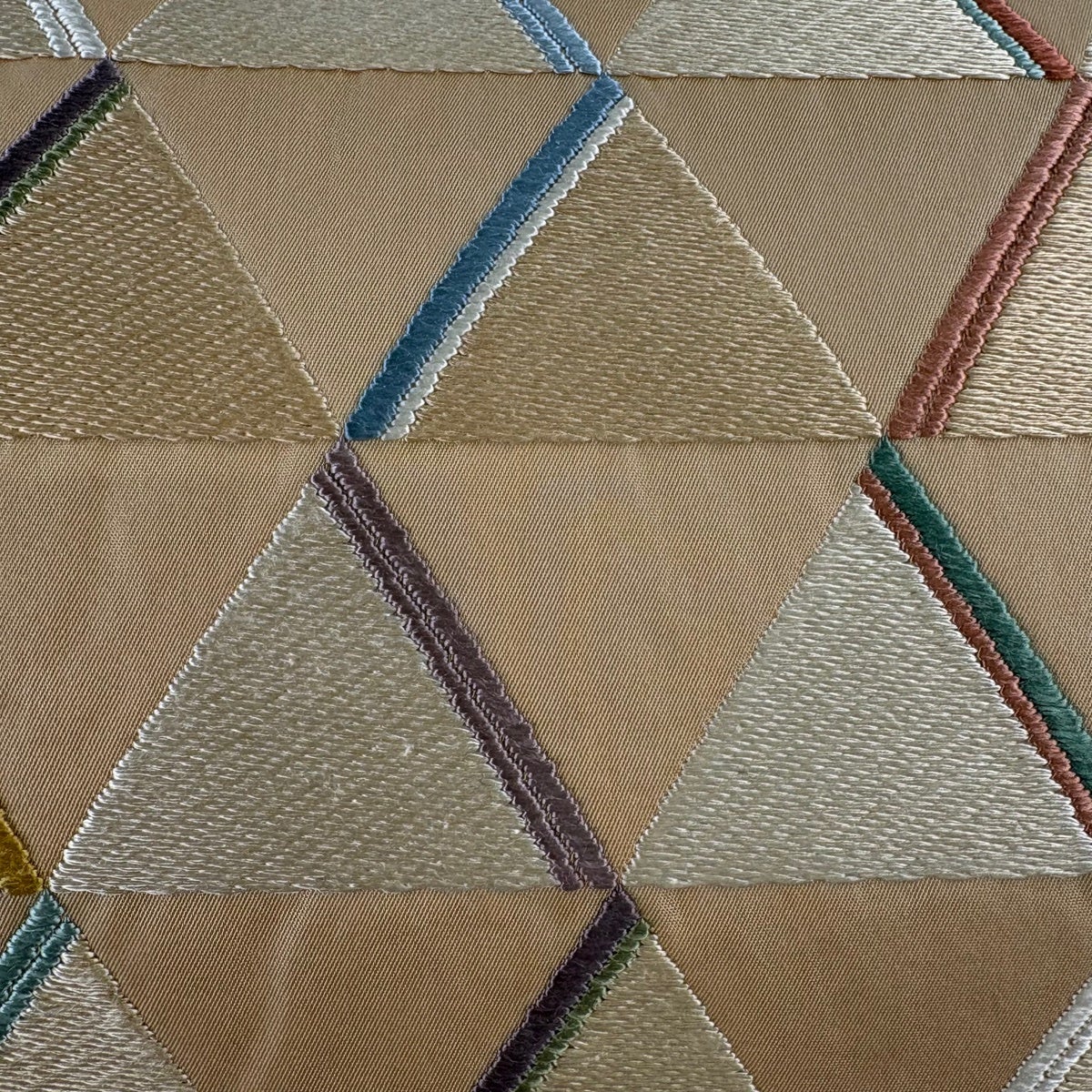 袋帯 秀品 縞 幾何学模様 金糸 ベージュ お太鼓柄 正絹