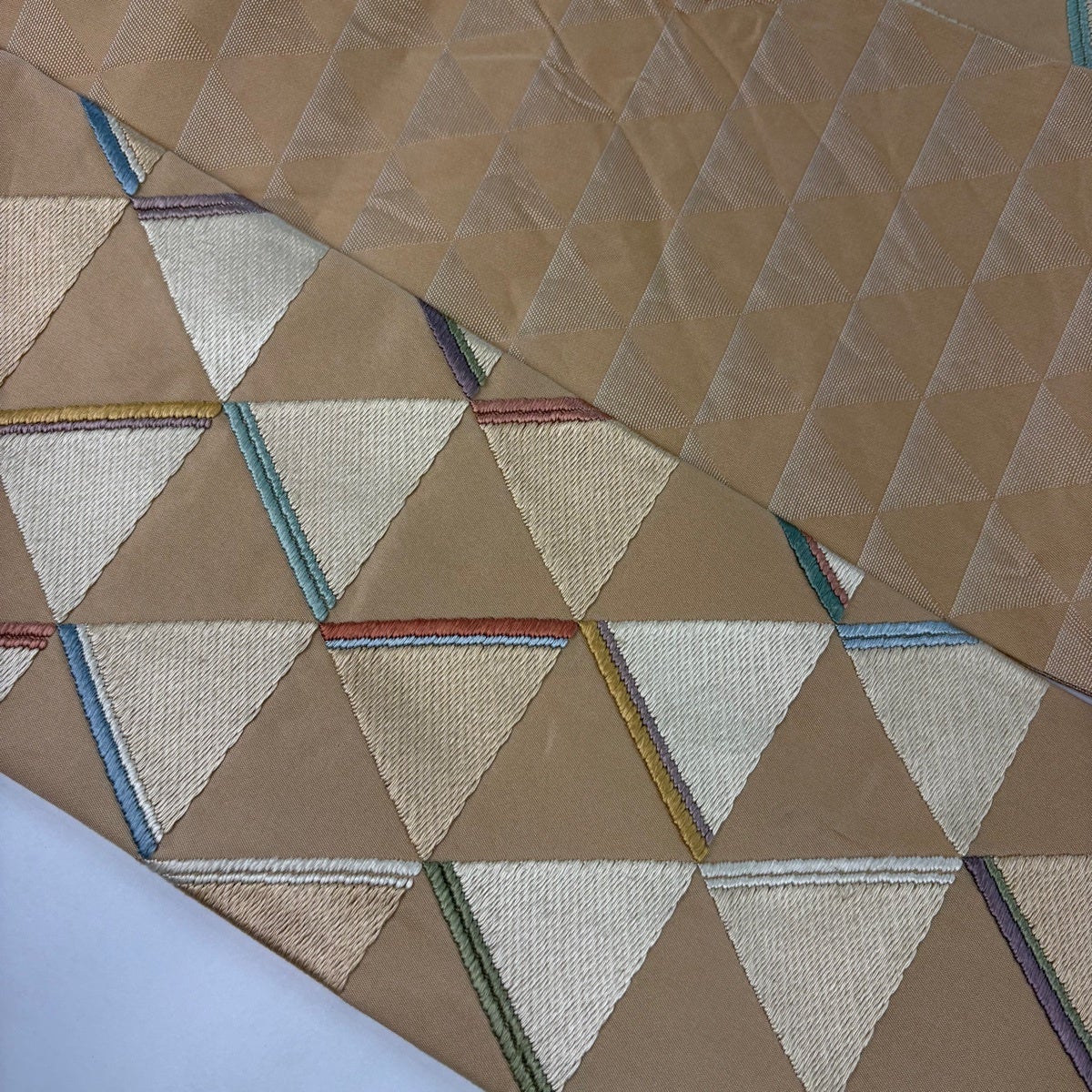 袋帯 秀品 木屋太 落款あり 市松 幾何学 黄土色 六通 正絹