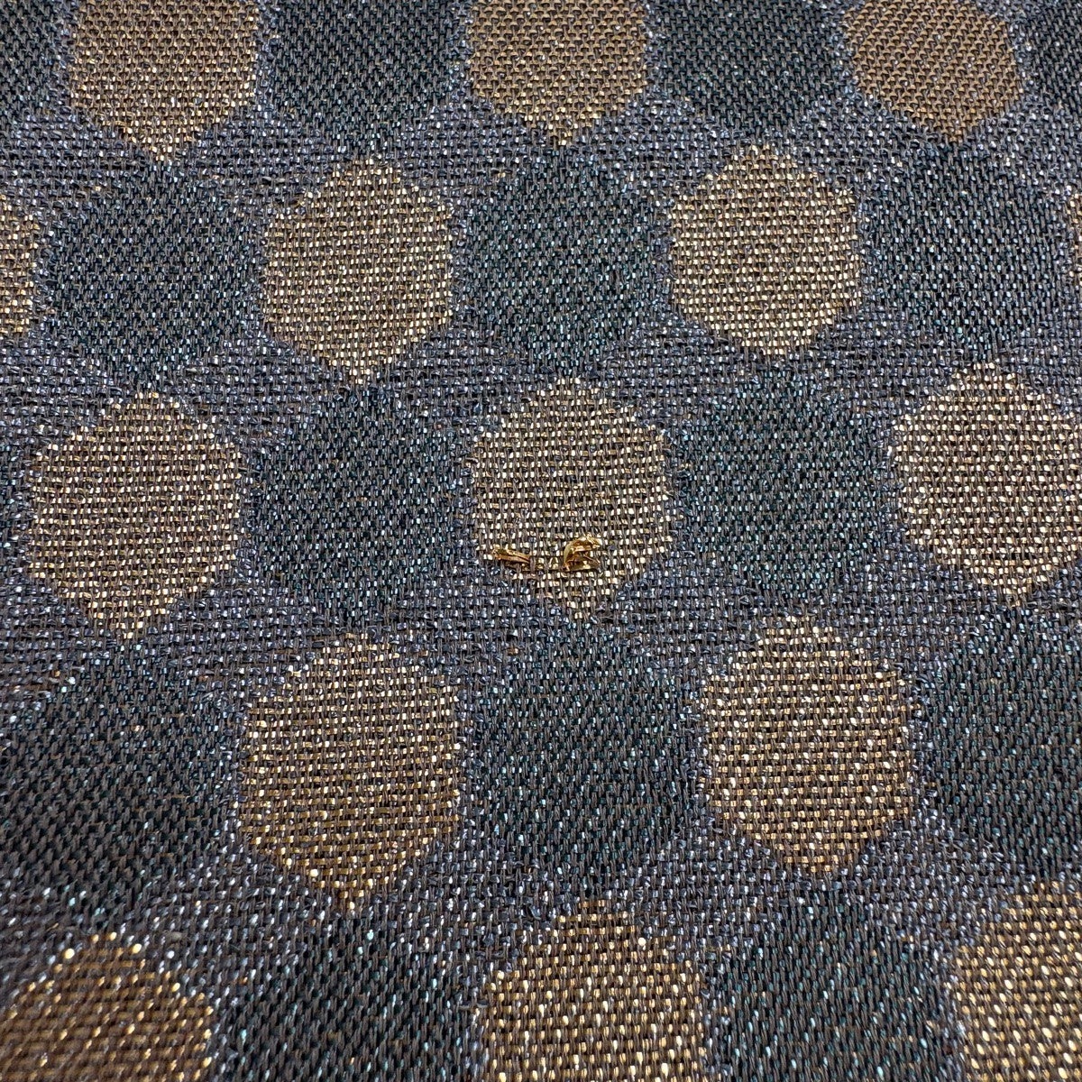 【美品】 袋帯 秀品 幾何学模様 金糸 茶緑色 お太鼓柄 正絹
