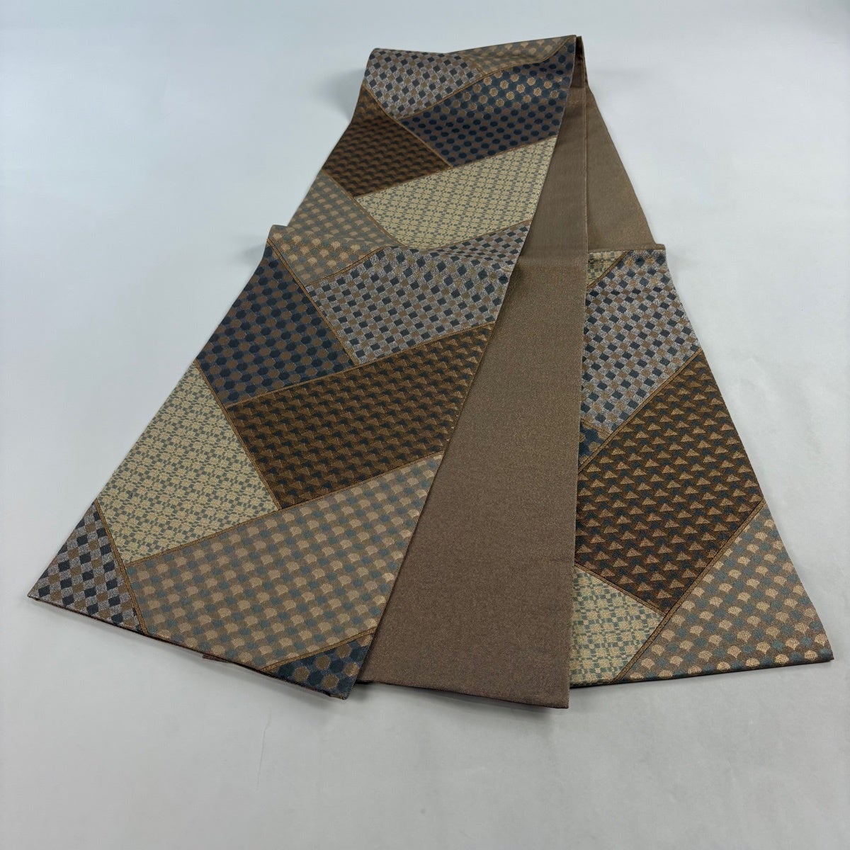 袋帯 秀品 古志乃 変わり市松 幾何学模様 薄小豆 全通 正絹